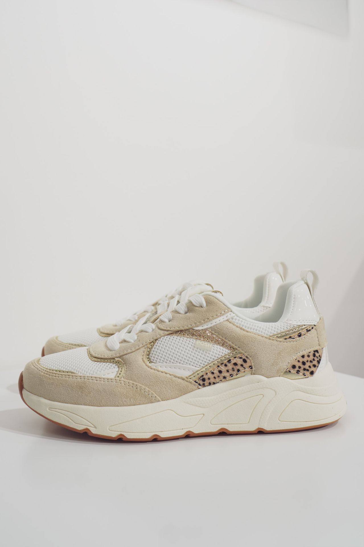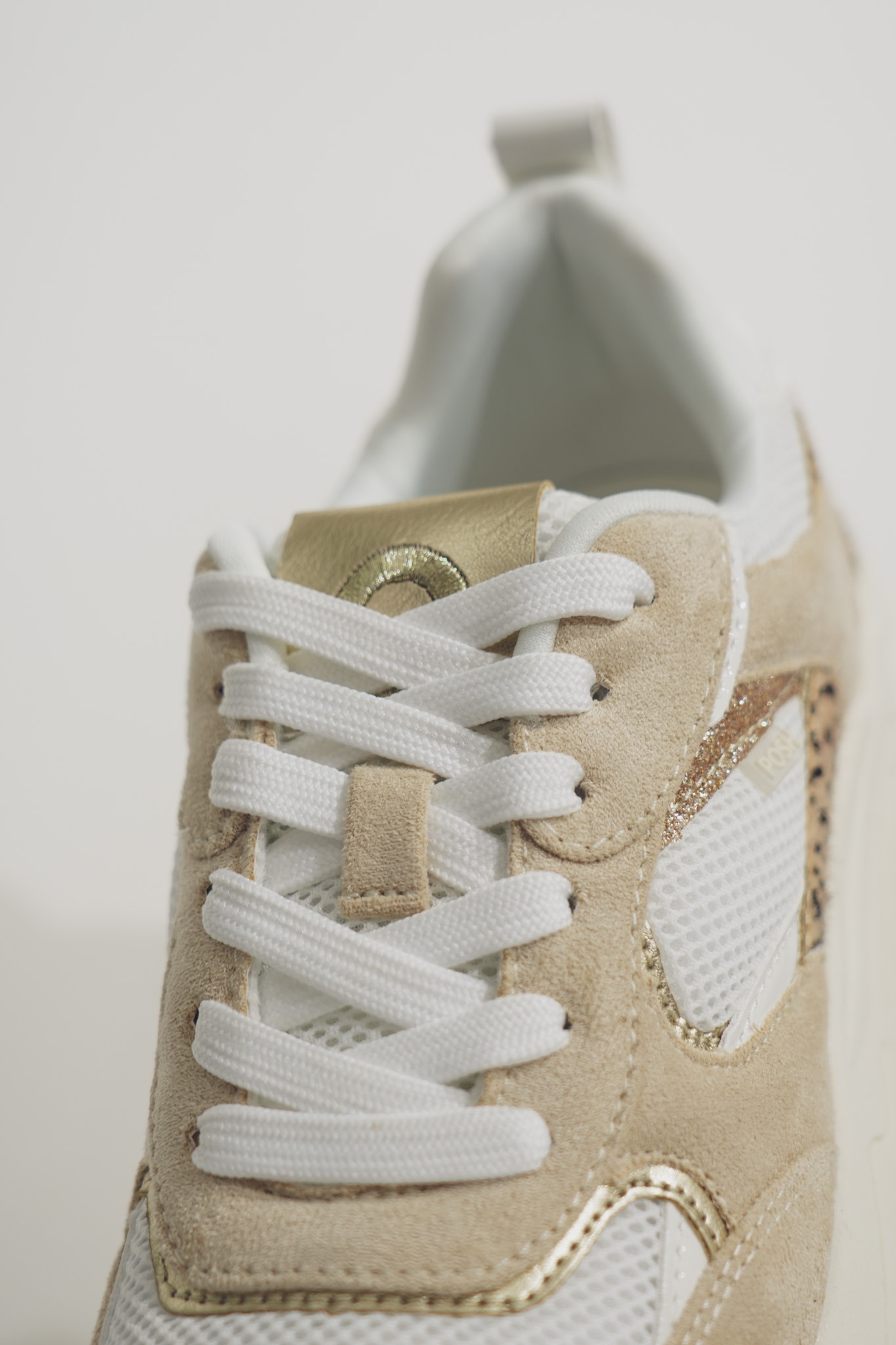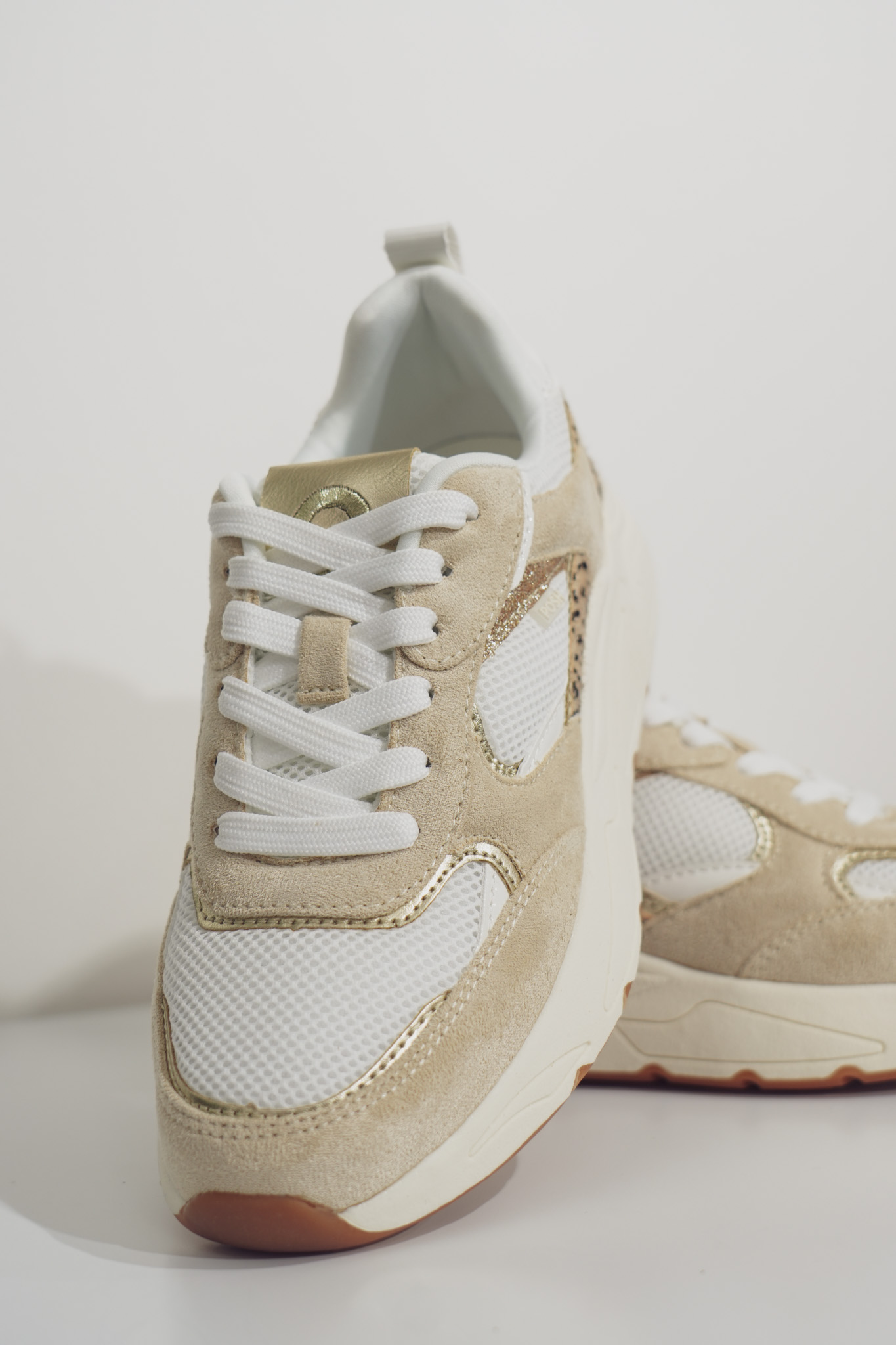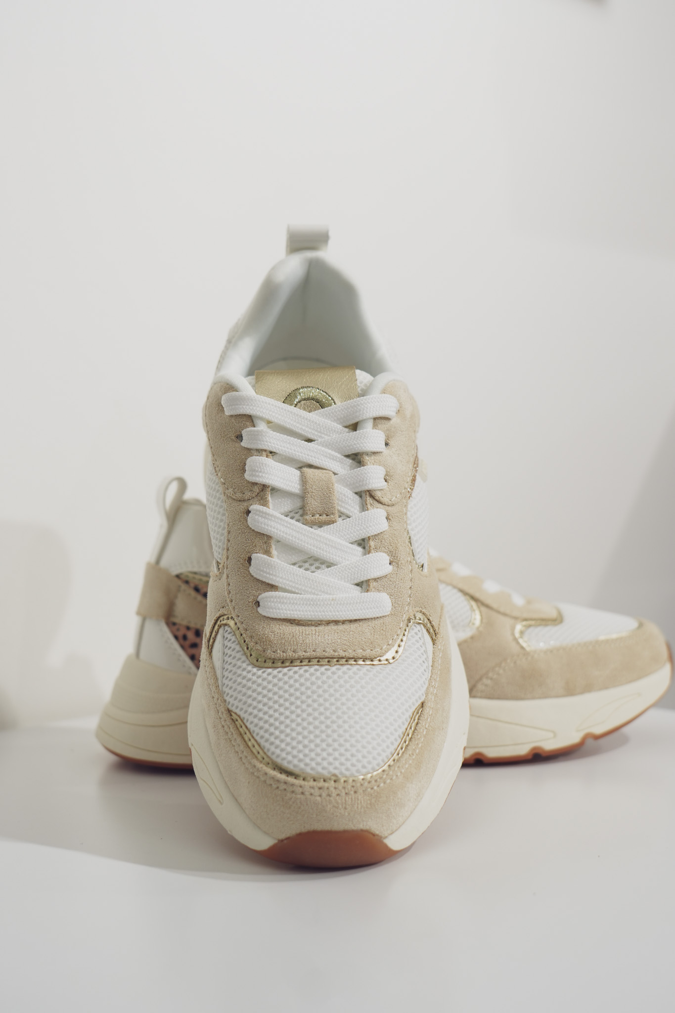 Basket basse pour femmes POELMAN – Caro – Beige, soft gold, blanc avec semelle structurée