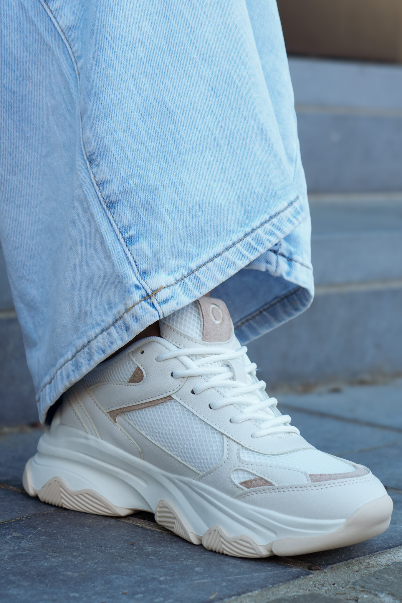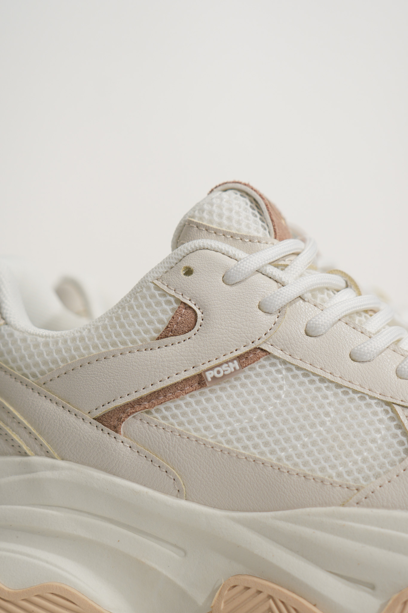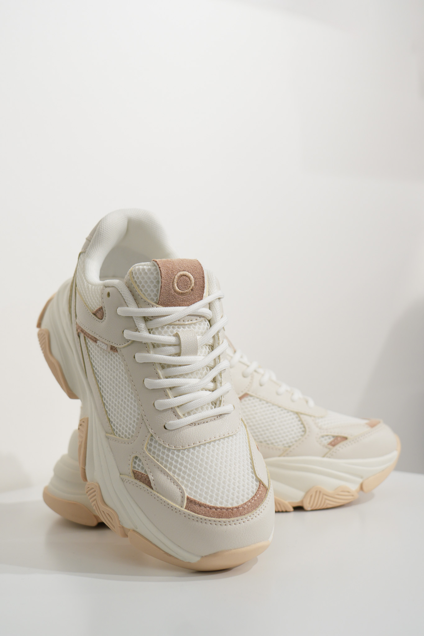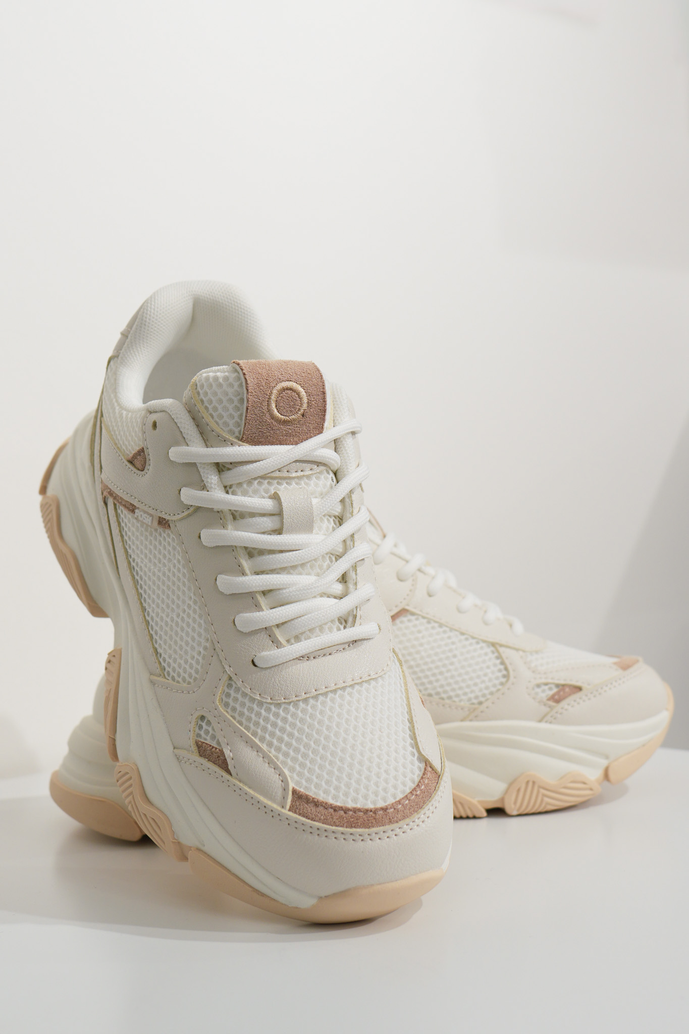 Les baskets basses femme POELMAN Gigi beige foncé et blanc allient style moderne et confort au quotidien. Leur semelle structurée offre une bonne stabilité tandis que le mesh respirant apporte légèreté et aisance à chaque pas. Faciles à associer, elles complètent parfaitement un look casual chic avec un jean, un pantalon fluide ou une robe.