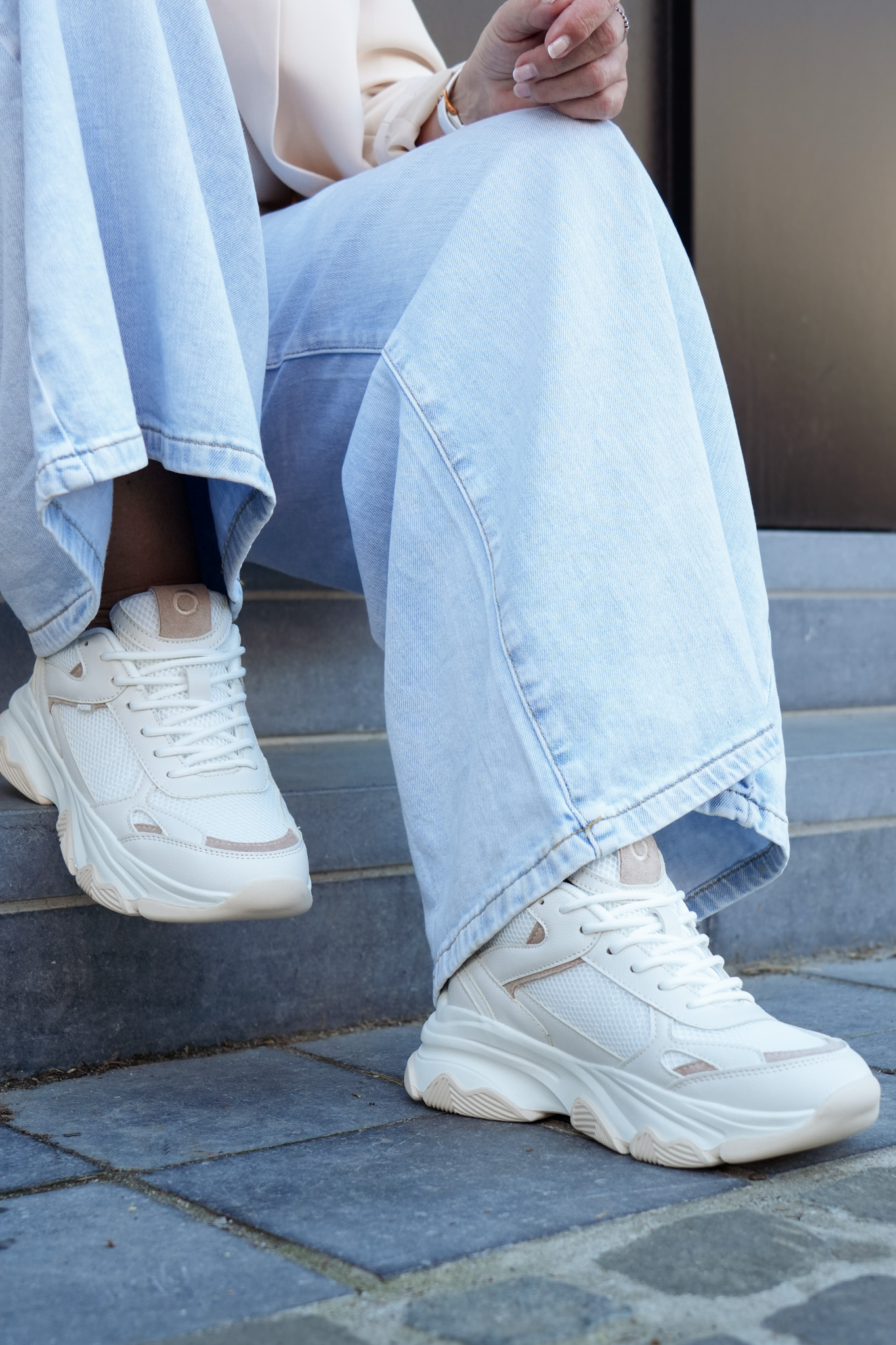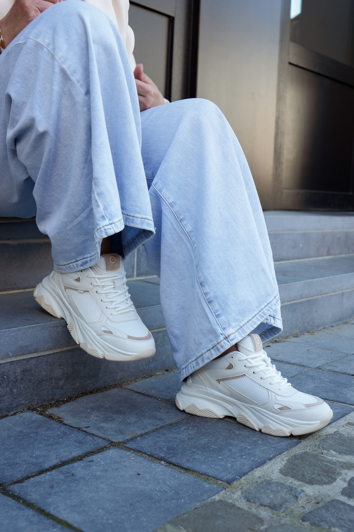 Basket basse pour femmes POELMAN – Gigi – Beige foncé, blanc avec semelle structurée