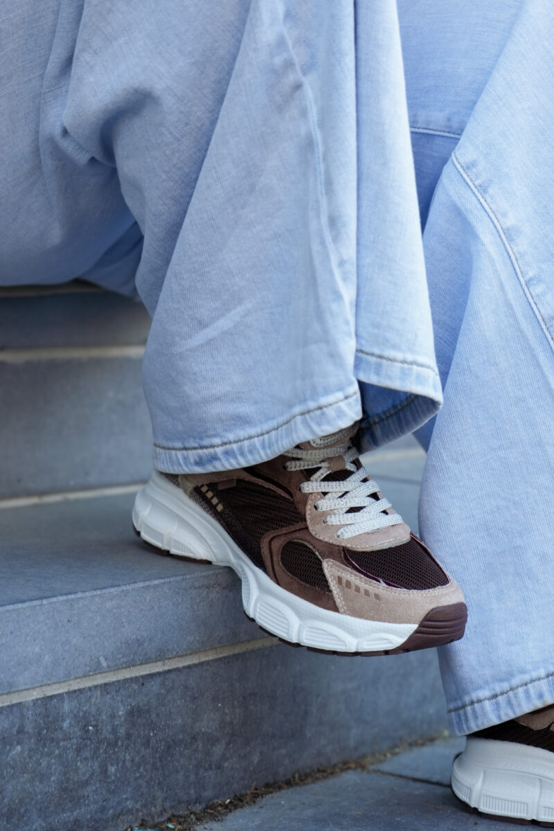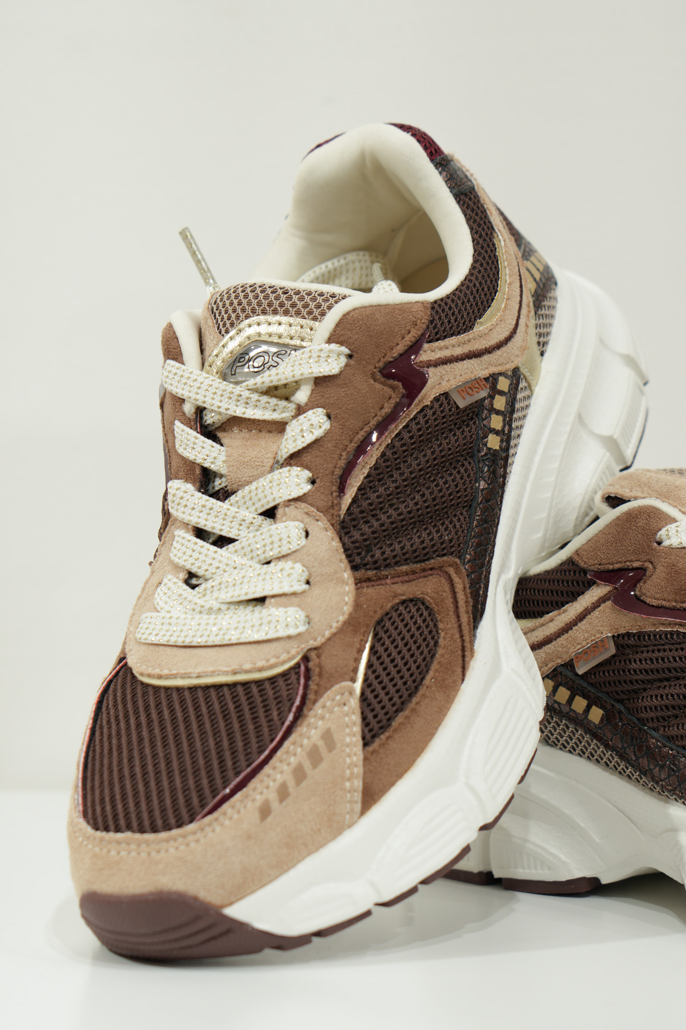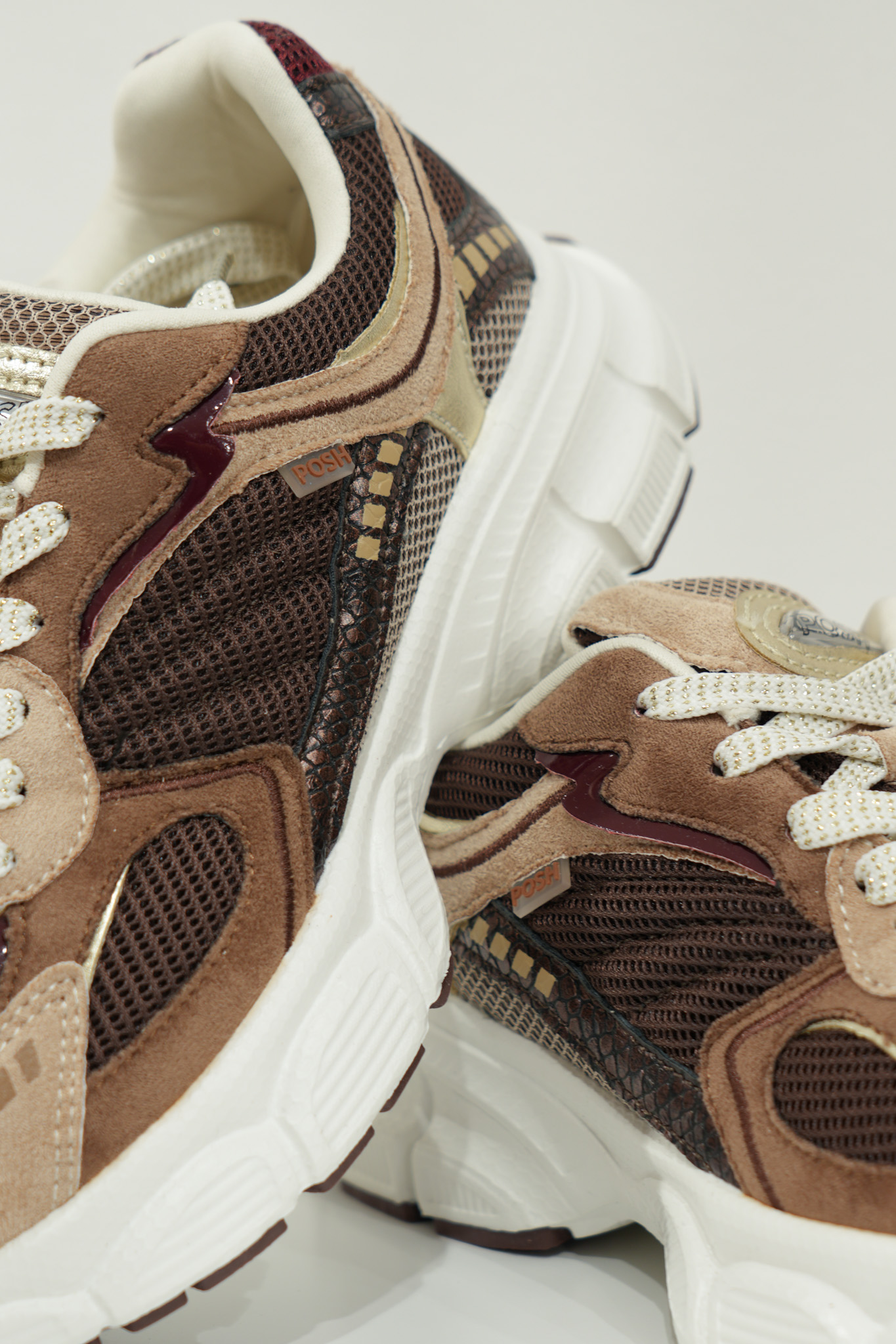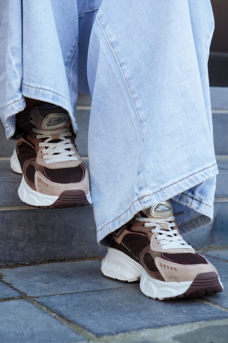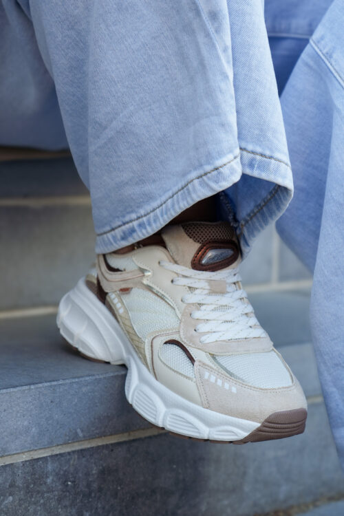 Basket basse pour femmes POELMAN – Lise – Beige clair, brun foncé et bordeaux avec semelle structurée