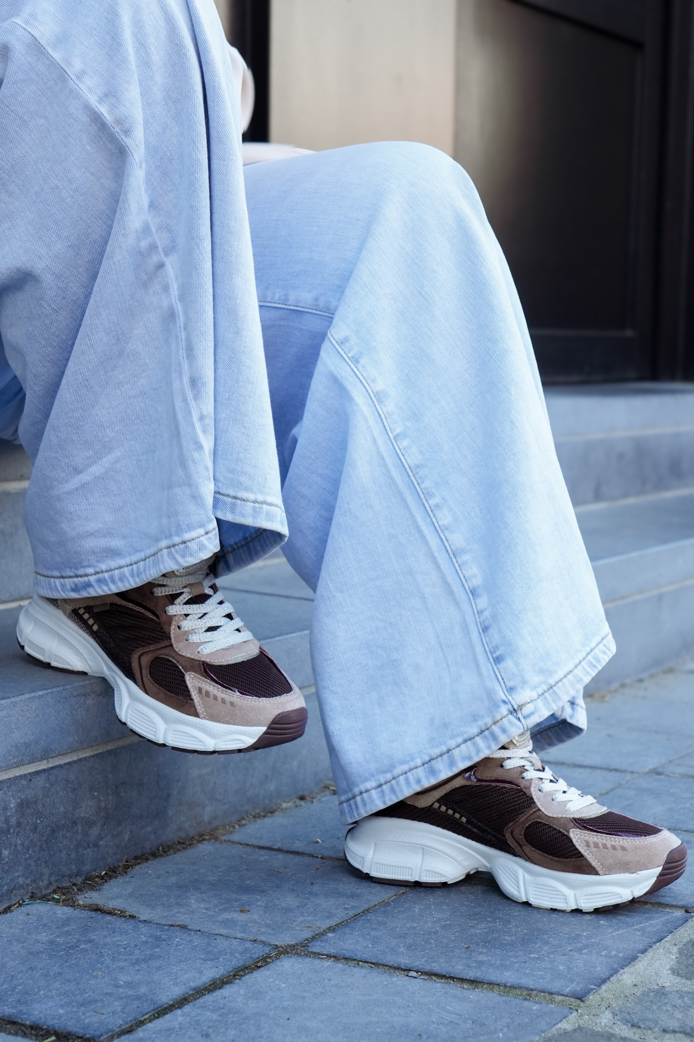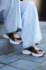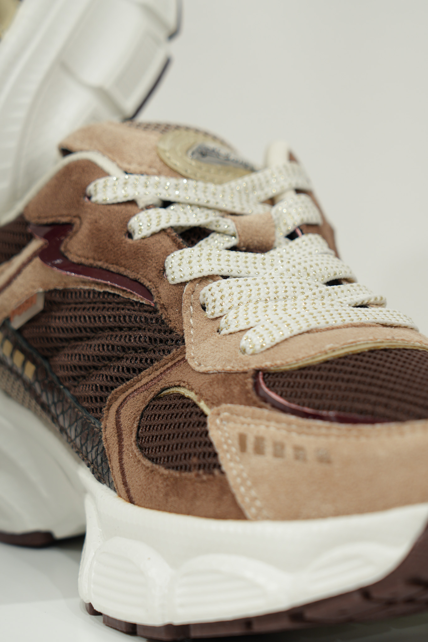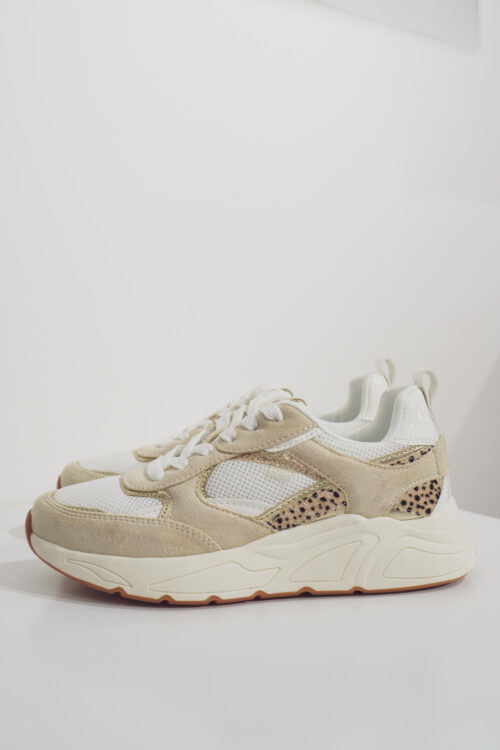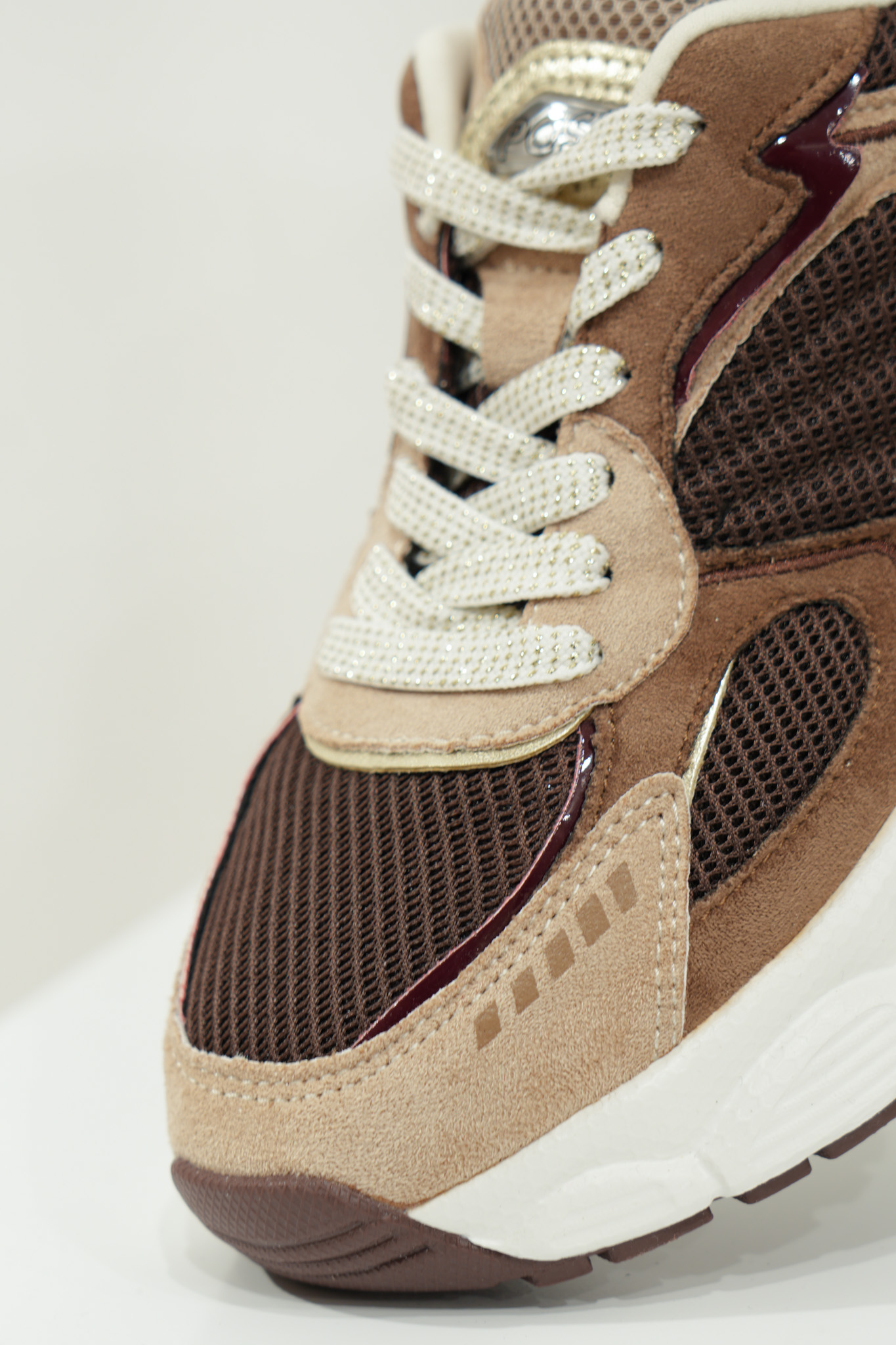 Basket basse pour femmes POELMAN – Lise – Beige clair, brun foncé et bordeaux avec semelle structurée