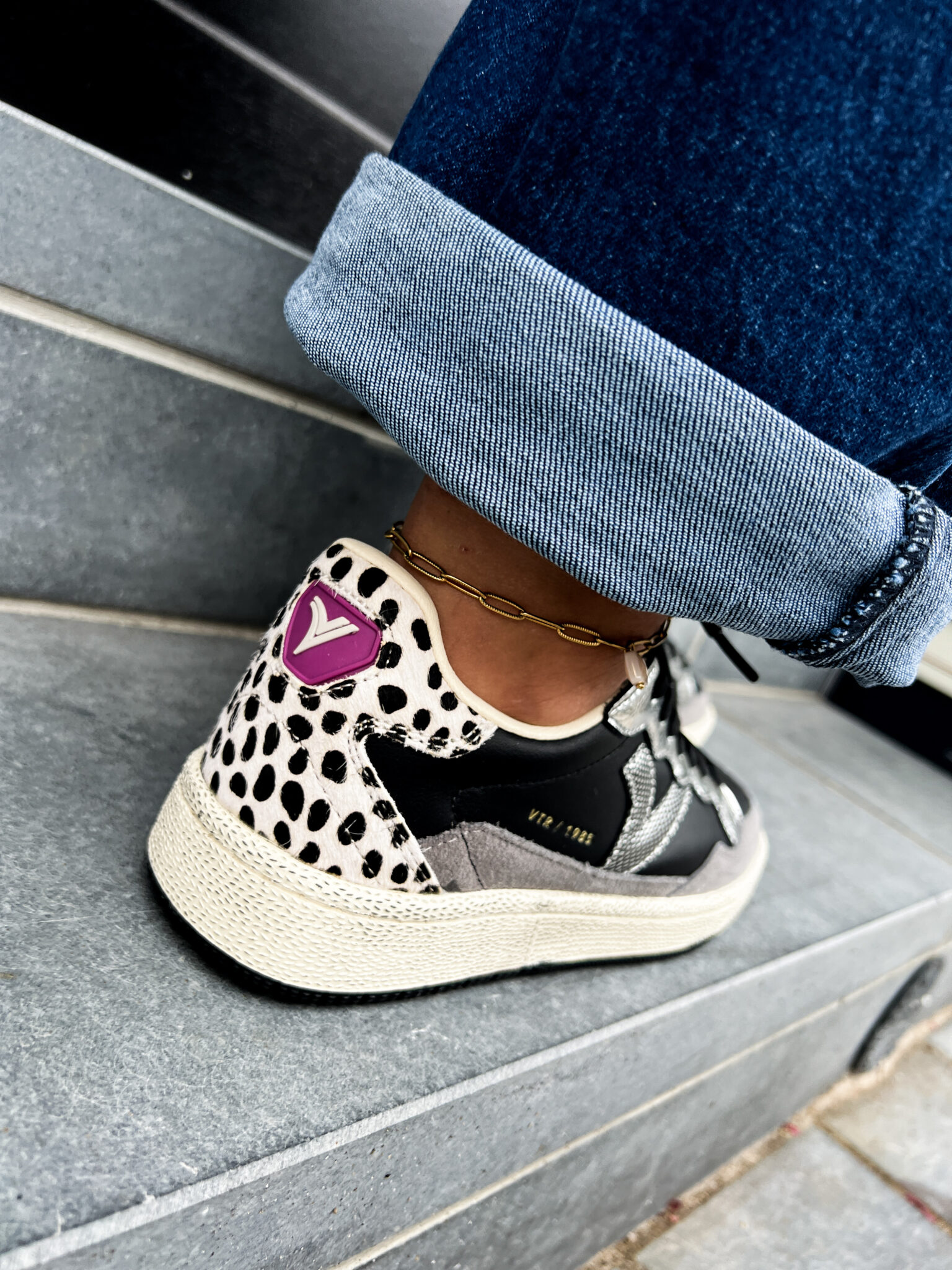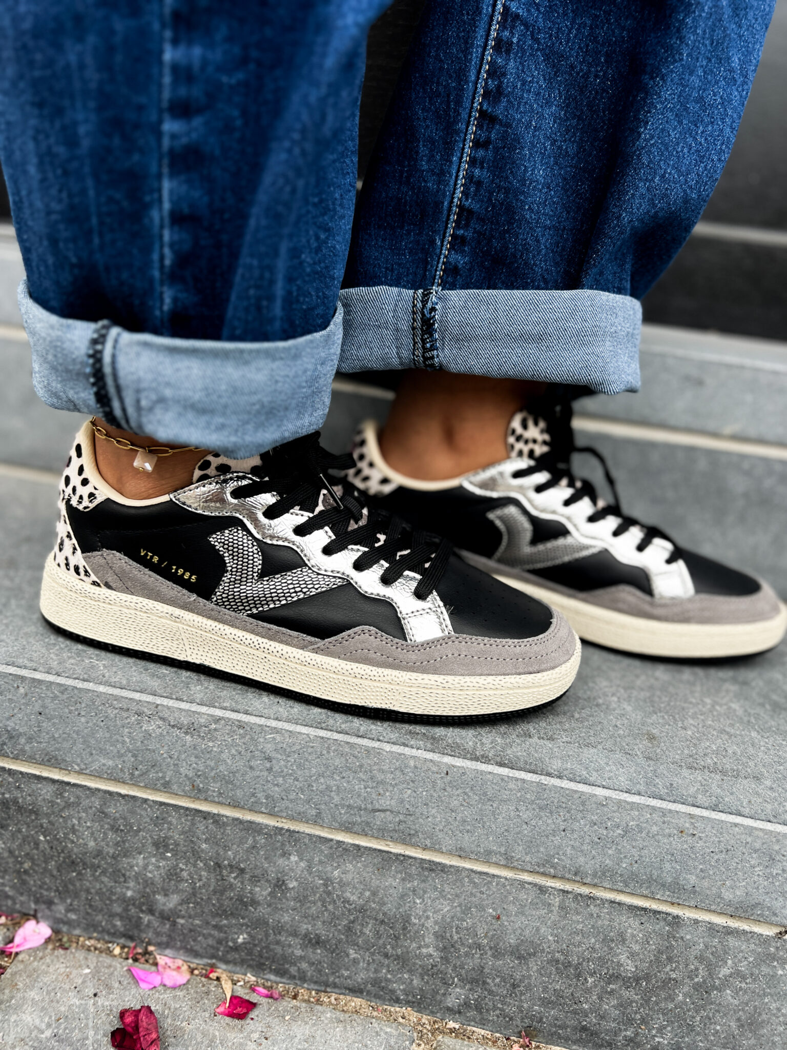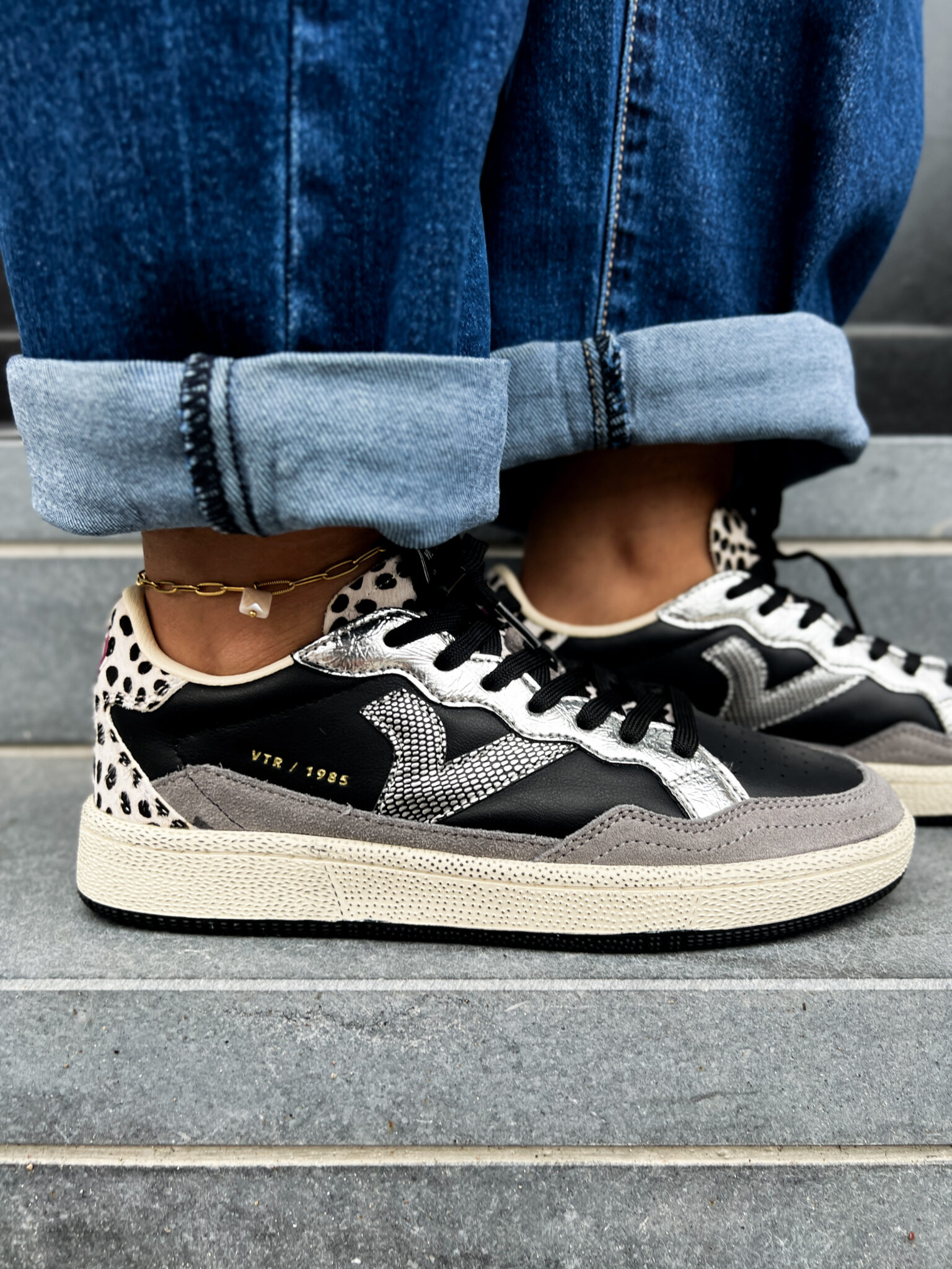 Au style vintage et très confortables, voici les baskets pour femme SMASH-ANIMAL de la collection 1985. Confectionnées en cuir bovin avec des empiècements en croûte de cuir, en cuir type PONY à imprimé animalier, et en cuir métallisé. Logo doré gravé de la collection sur le côté et étiquette arrière en caoutchouc en relief. Semelle en caoutchouc légèrement ambrée avec texture rugueuse. Dotées d’une semelle intérieure ergonomique qui s’adapte à la forme du pied pour un confort optimal.