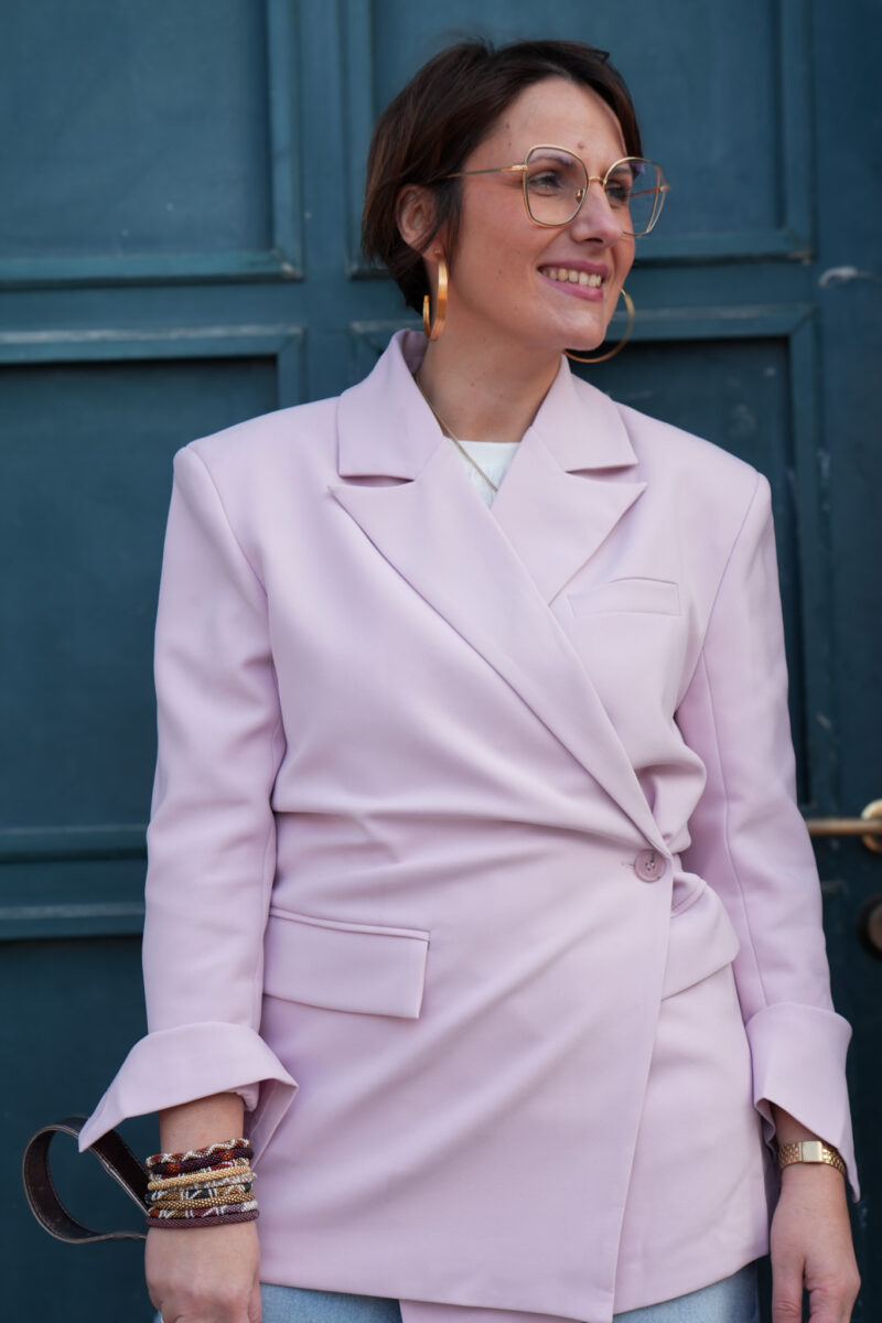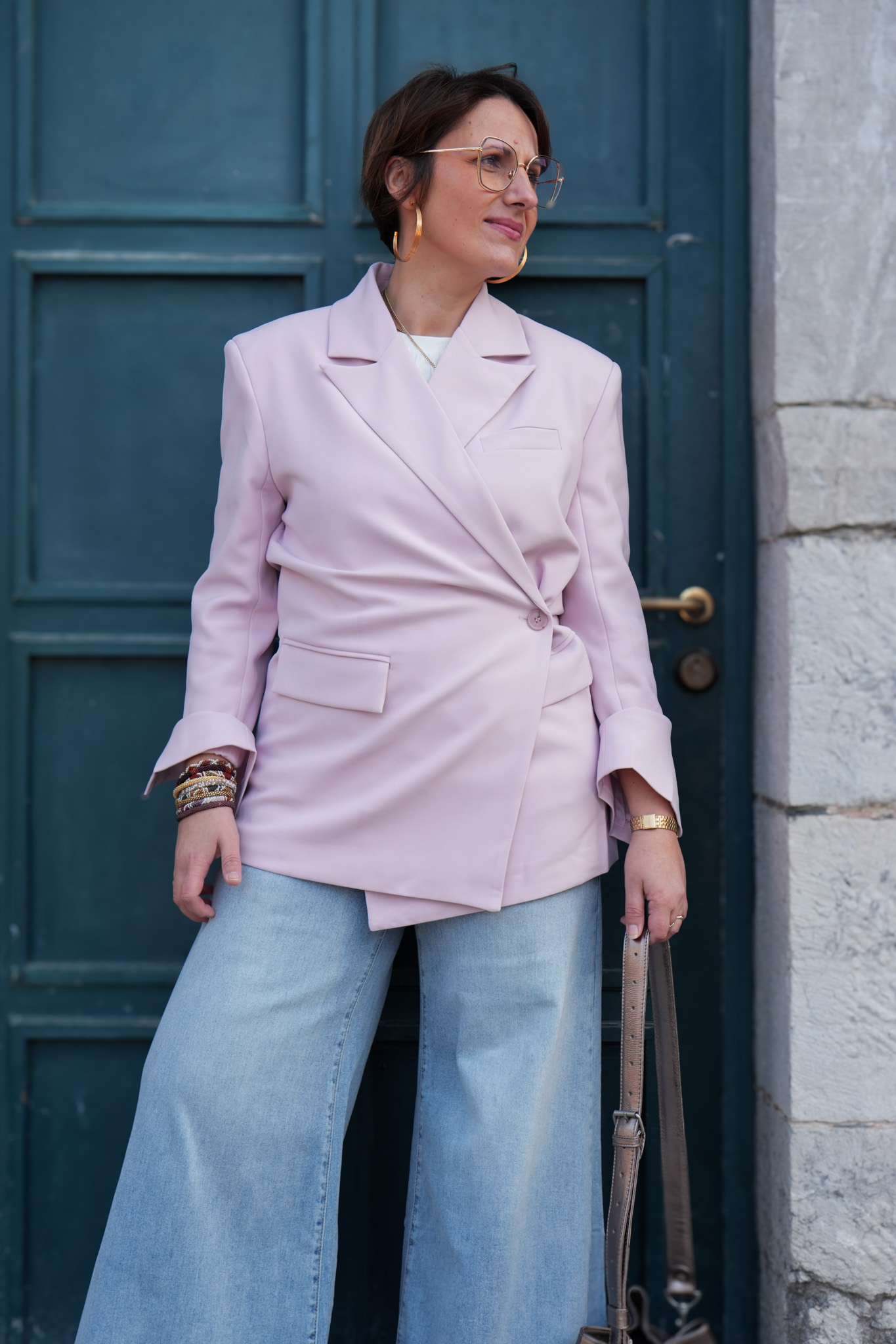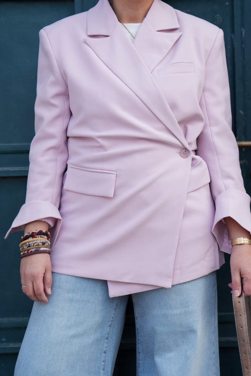 Blazer boutonnage asymétrique – Rose mauve poudré