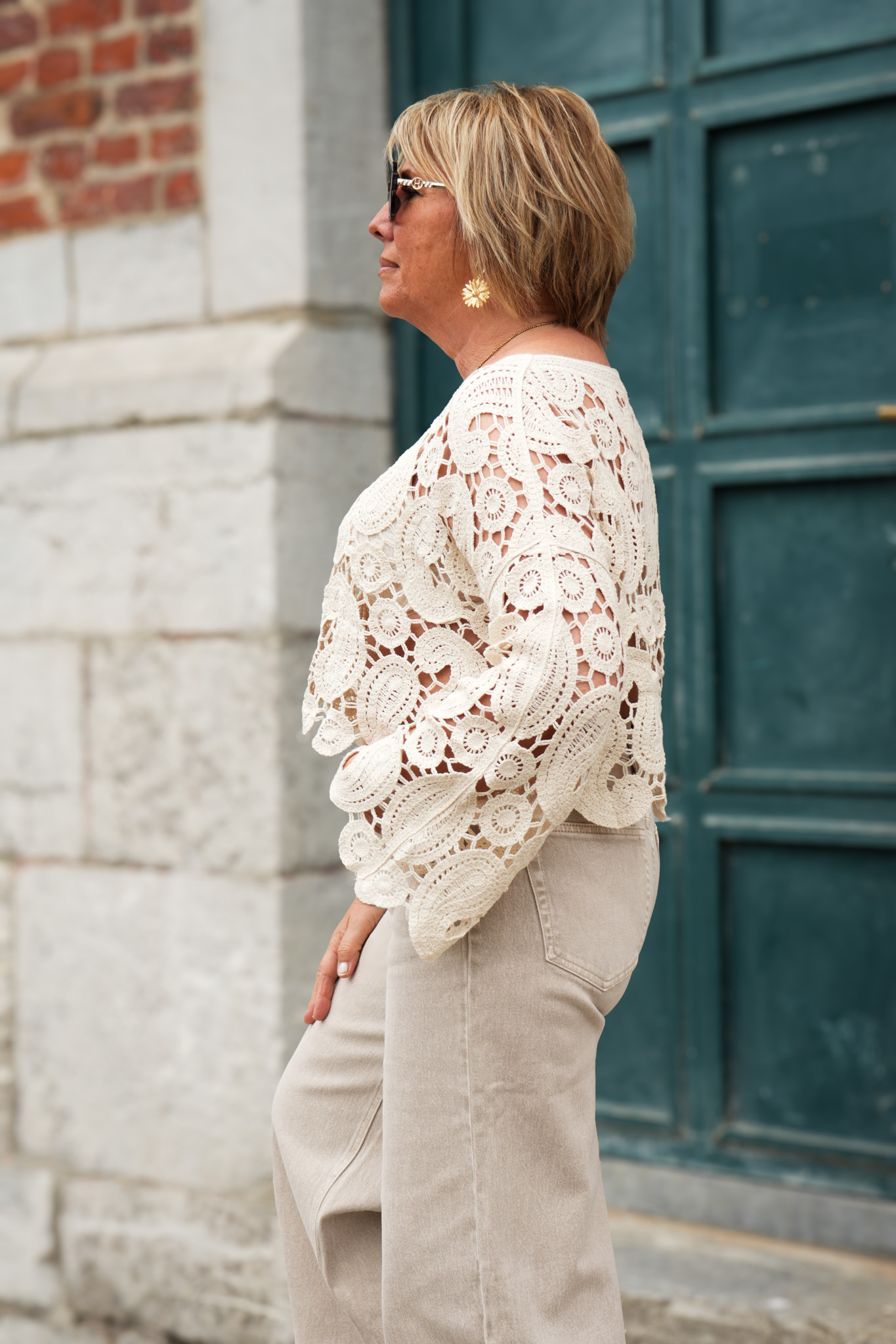 Blouse à crochet, manches longues – Beige
