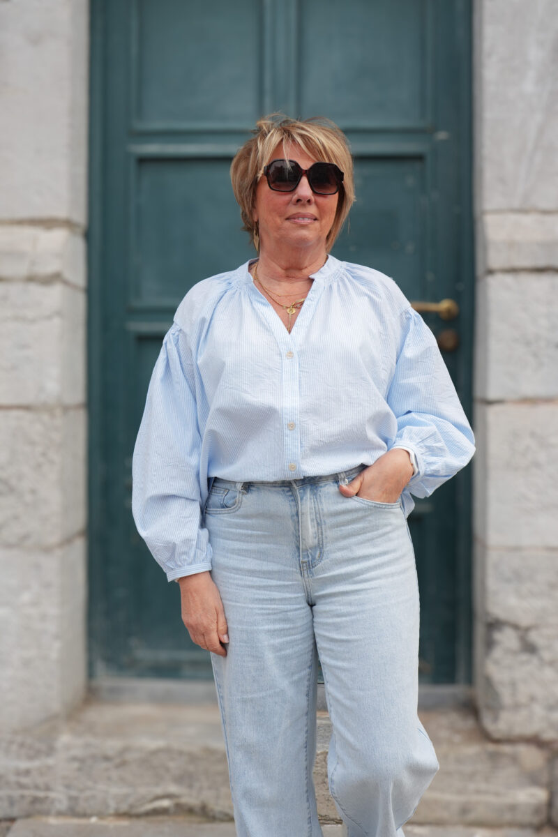 Blouse col rond à rayures – Agata – Bleu ciel