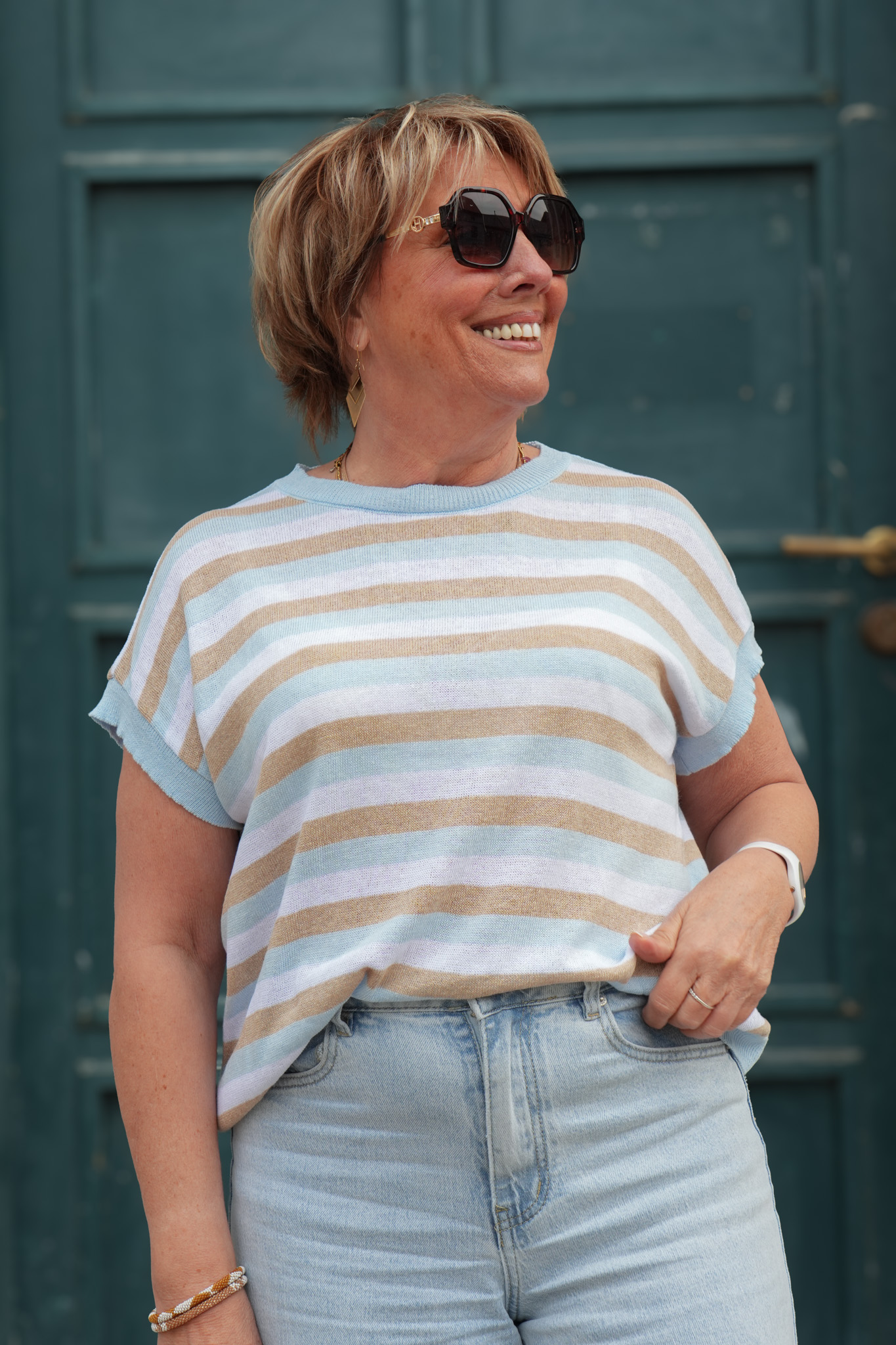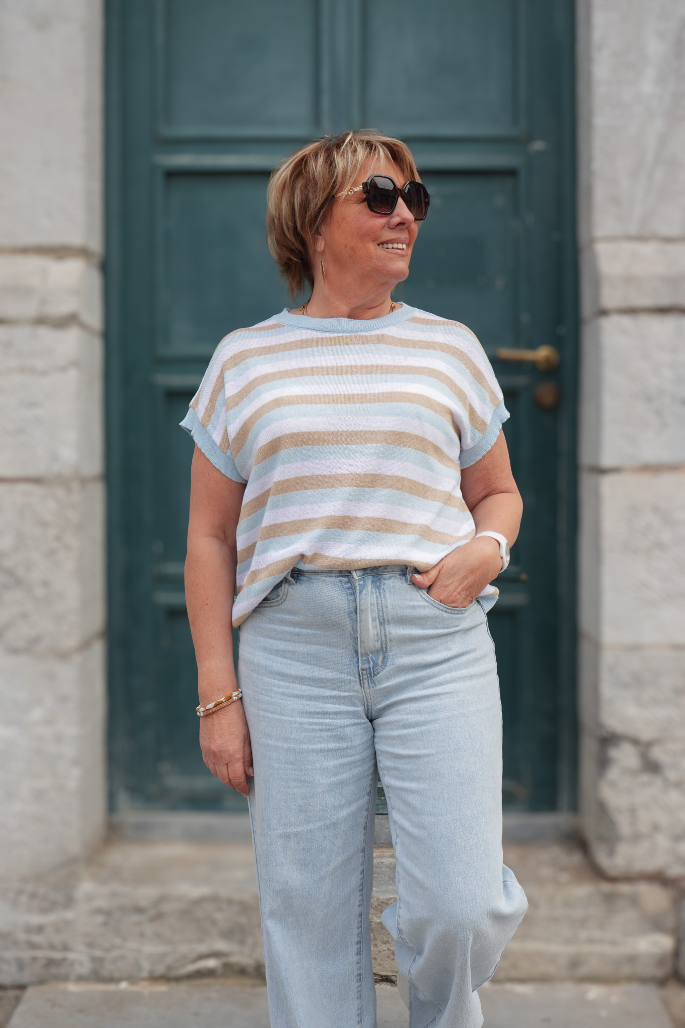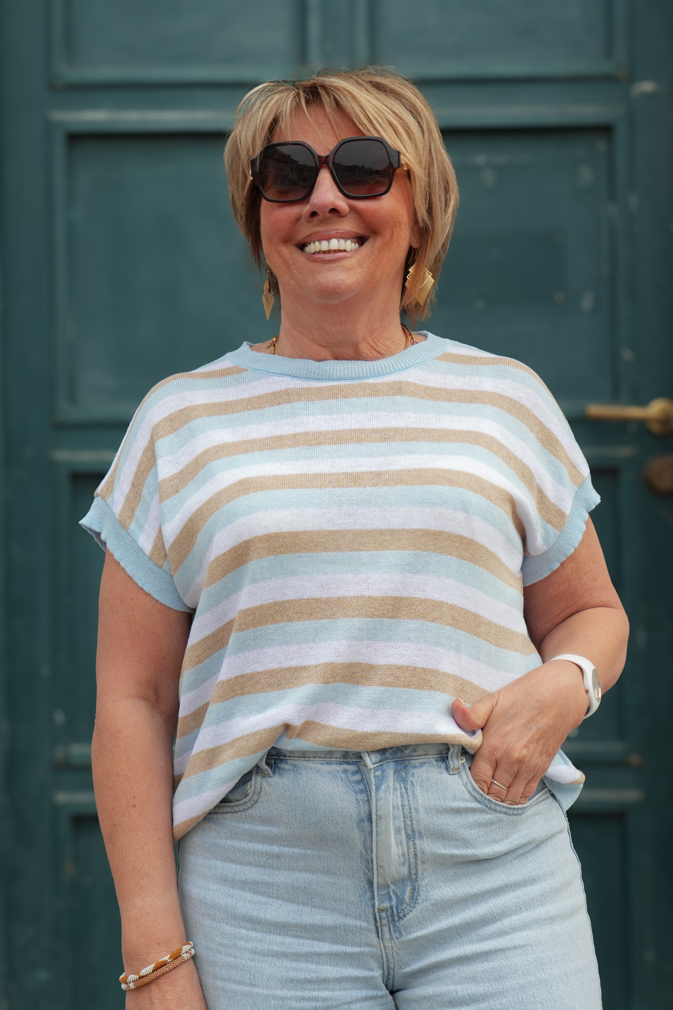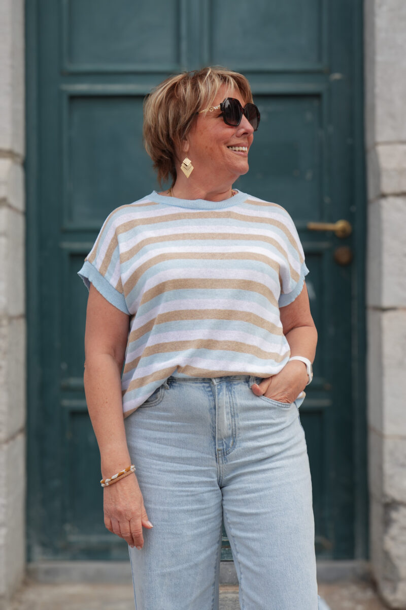 Blouse en mailles col rond avec petites manches – Valina – bleu ciel