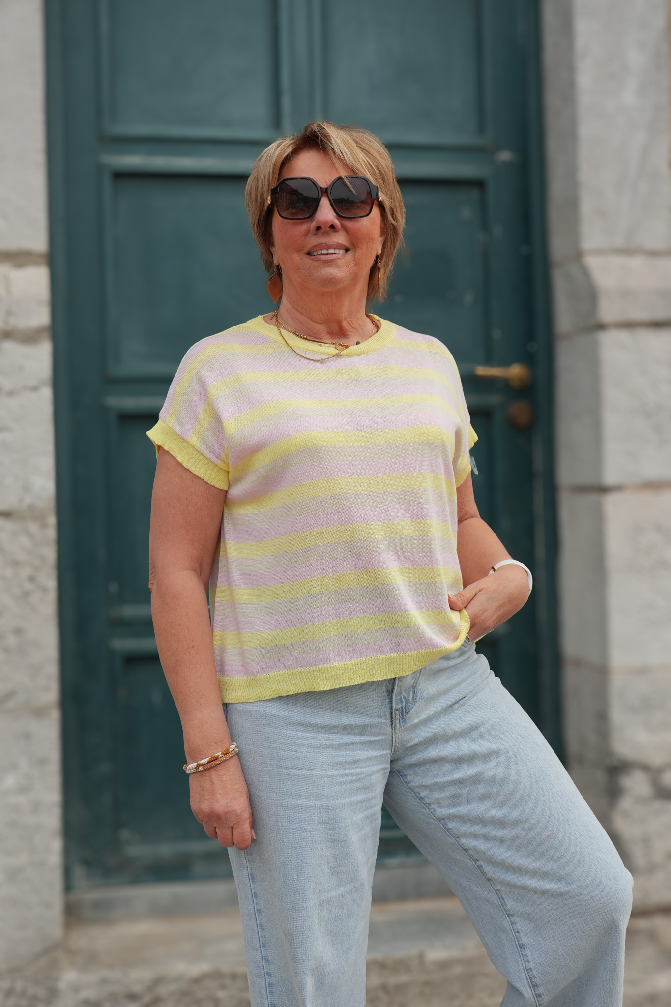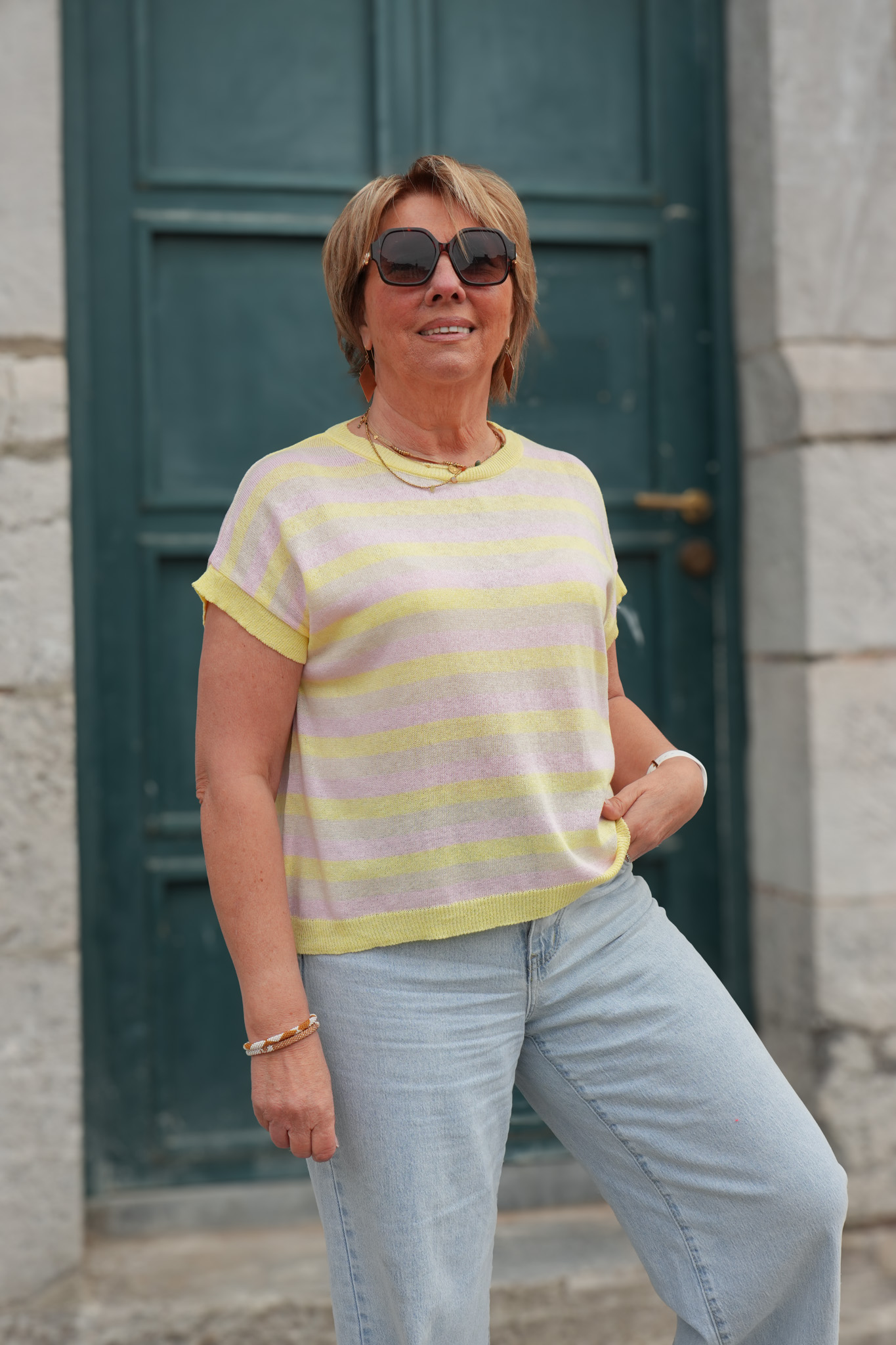 Blouse en mailles col rond avec petites manches – Valina – jaune