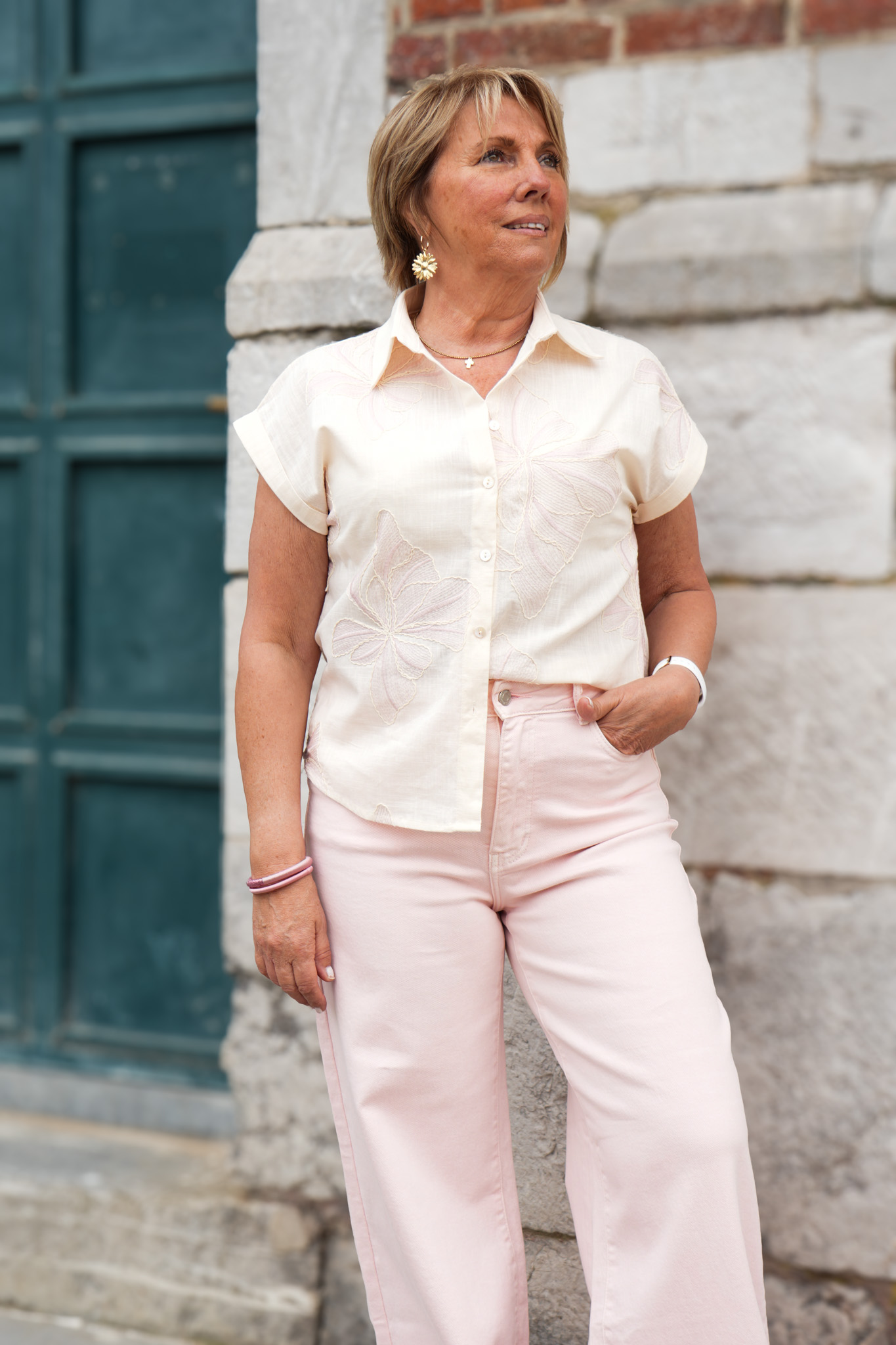 - Blouse à manches courtes et col chemise