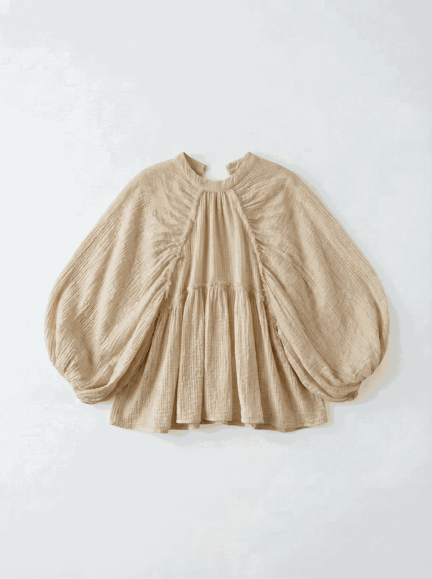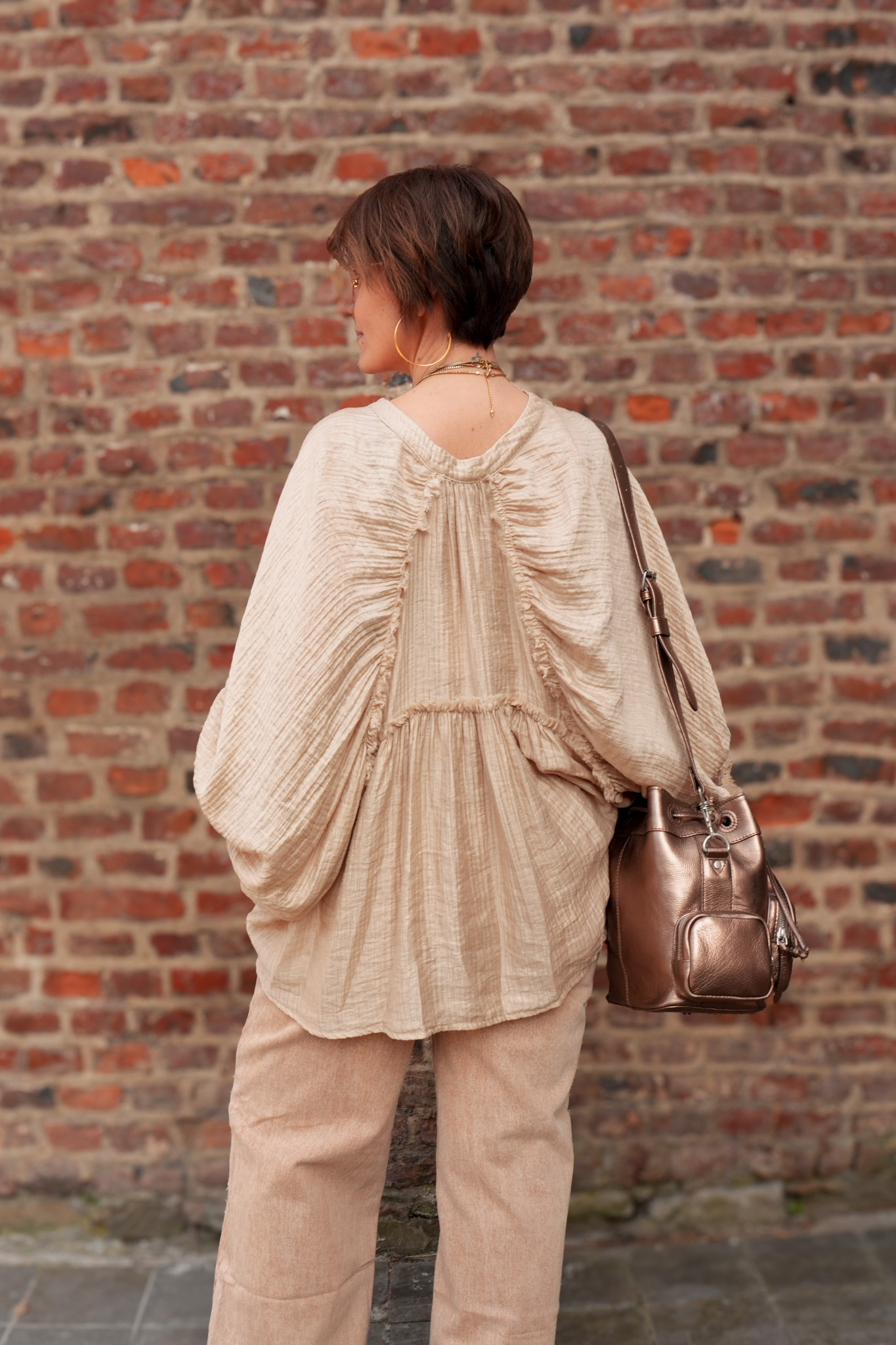 Blouse texturée avec dos drapé – Anna – Beige safari