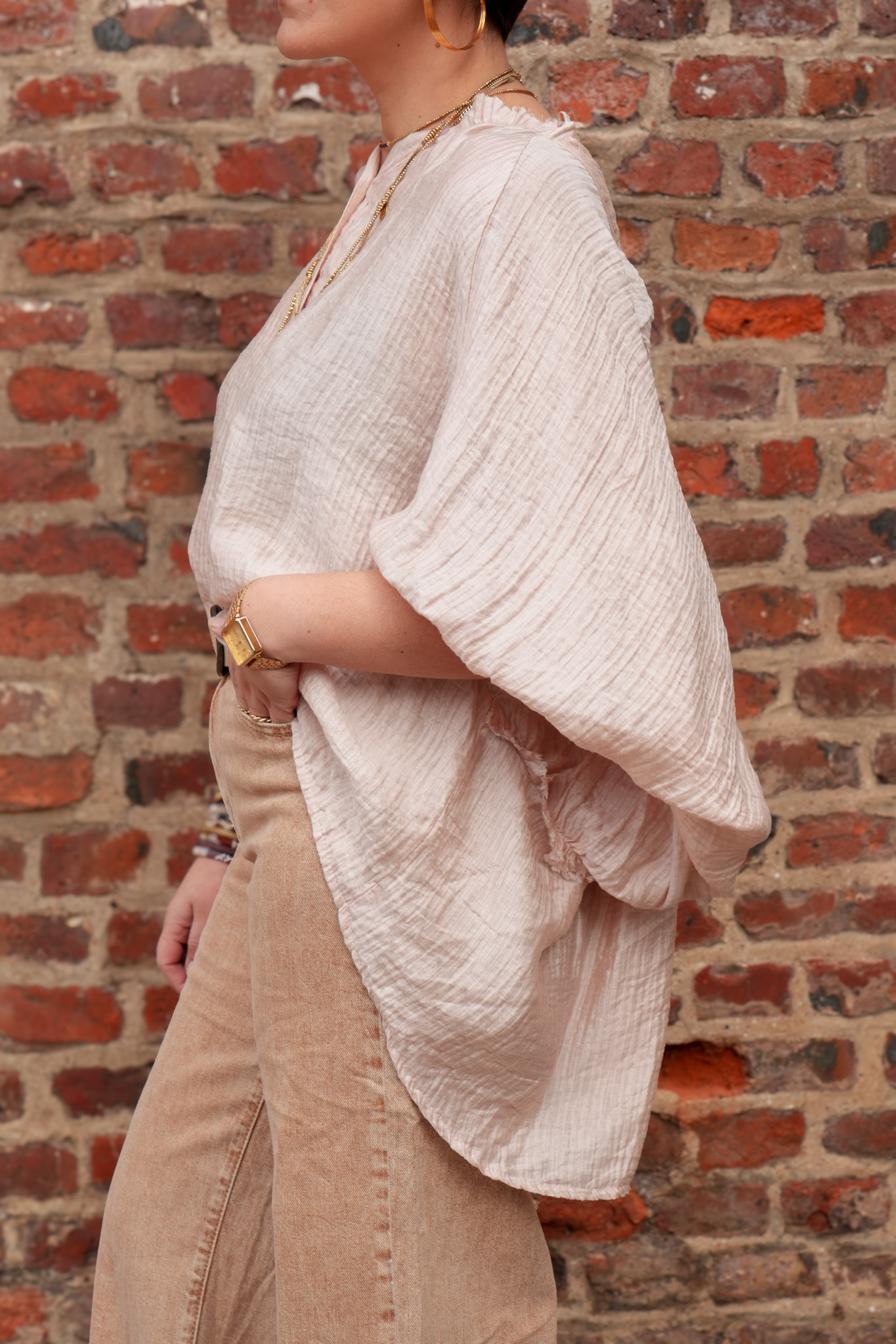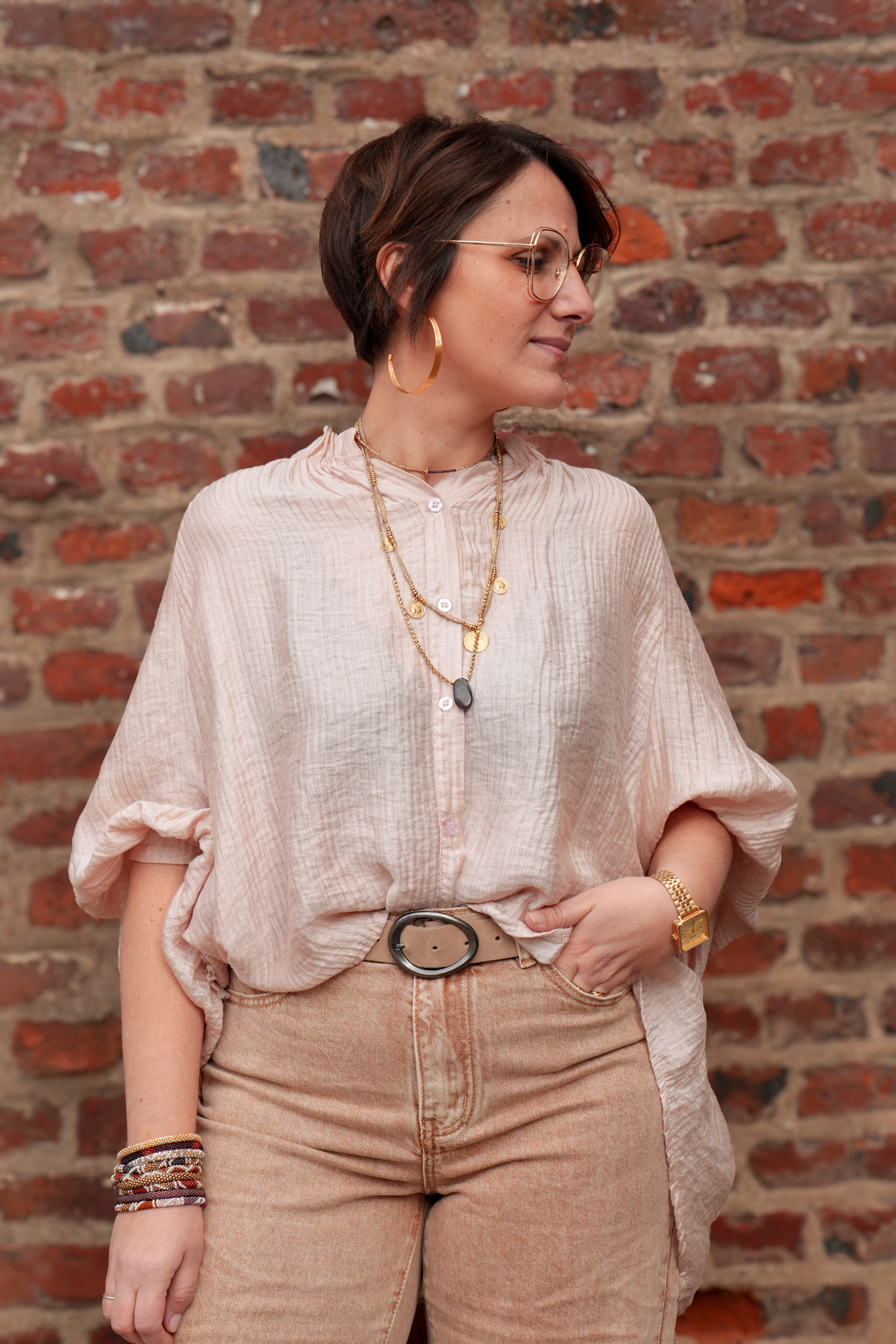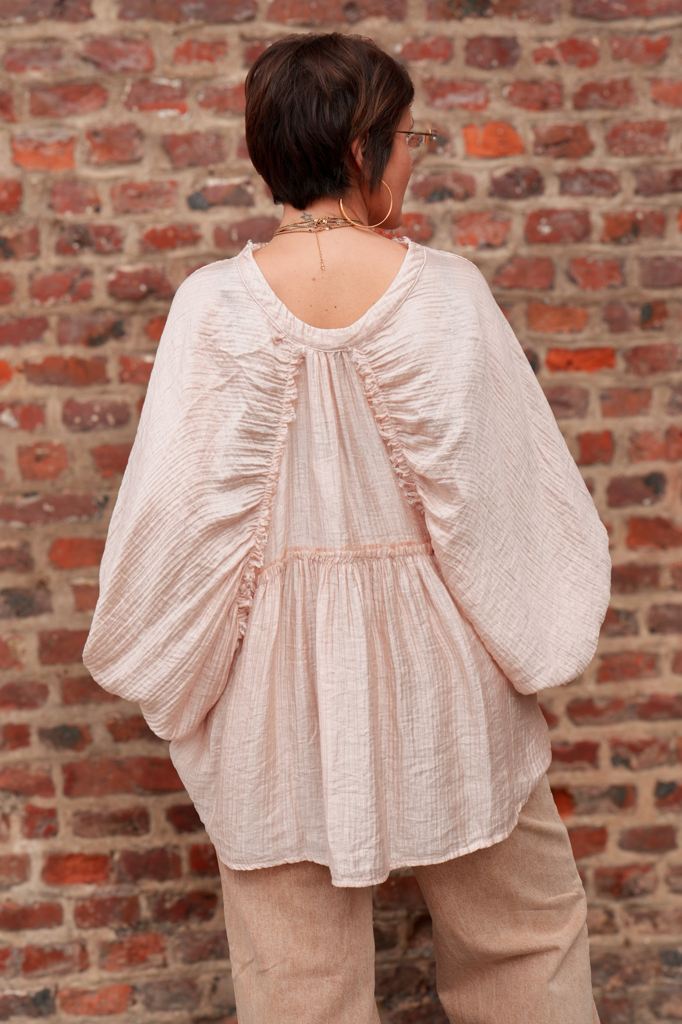 Blouse texturée avec dos drapé – Anna – Rose poudré