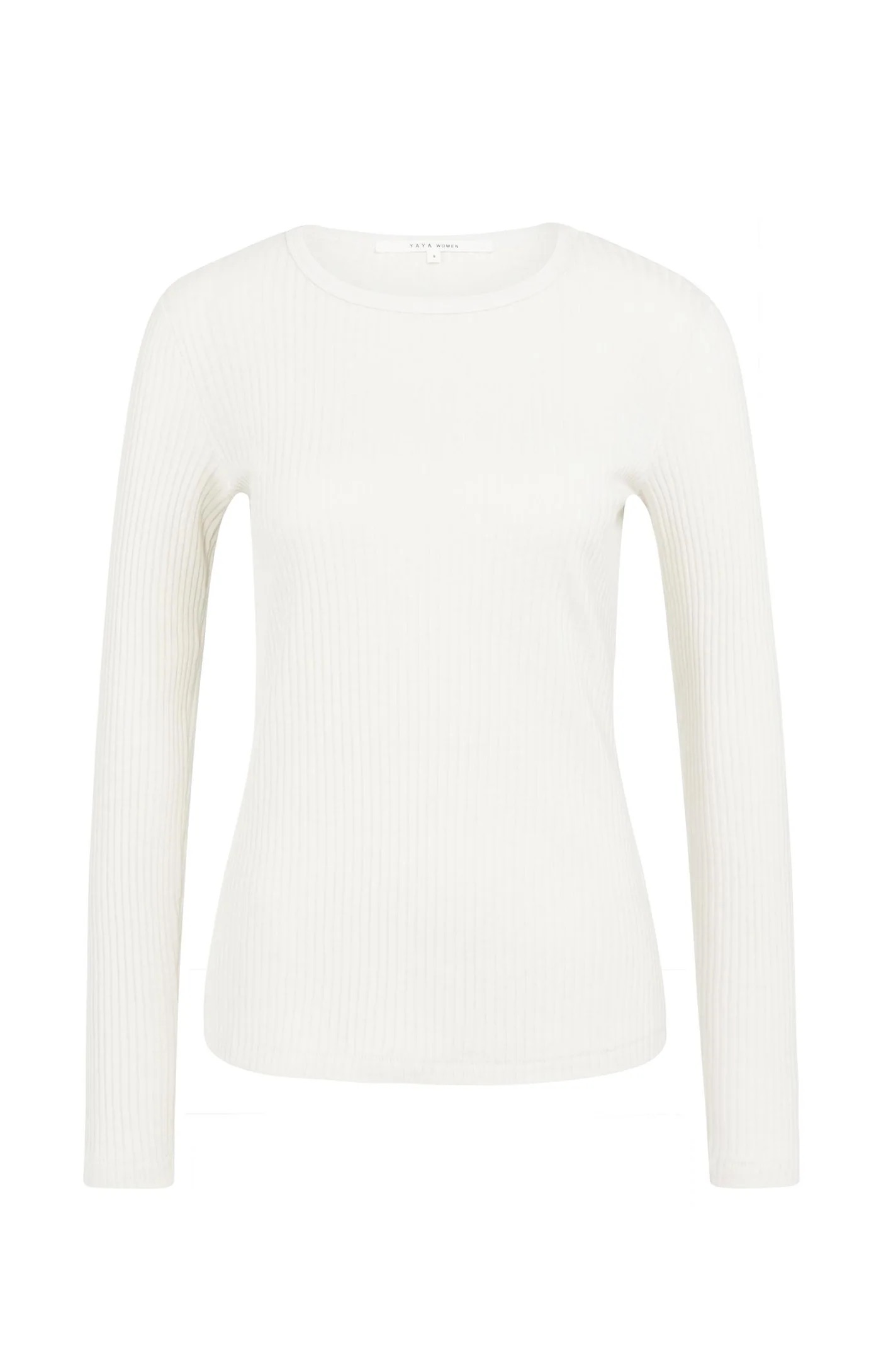 Chemise côtelée à manches longues avec encolure ronde – YAYA – Blanc cassé