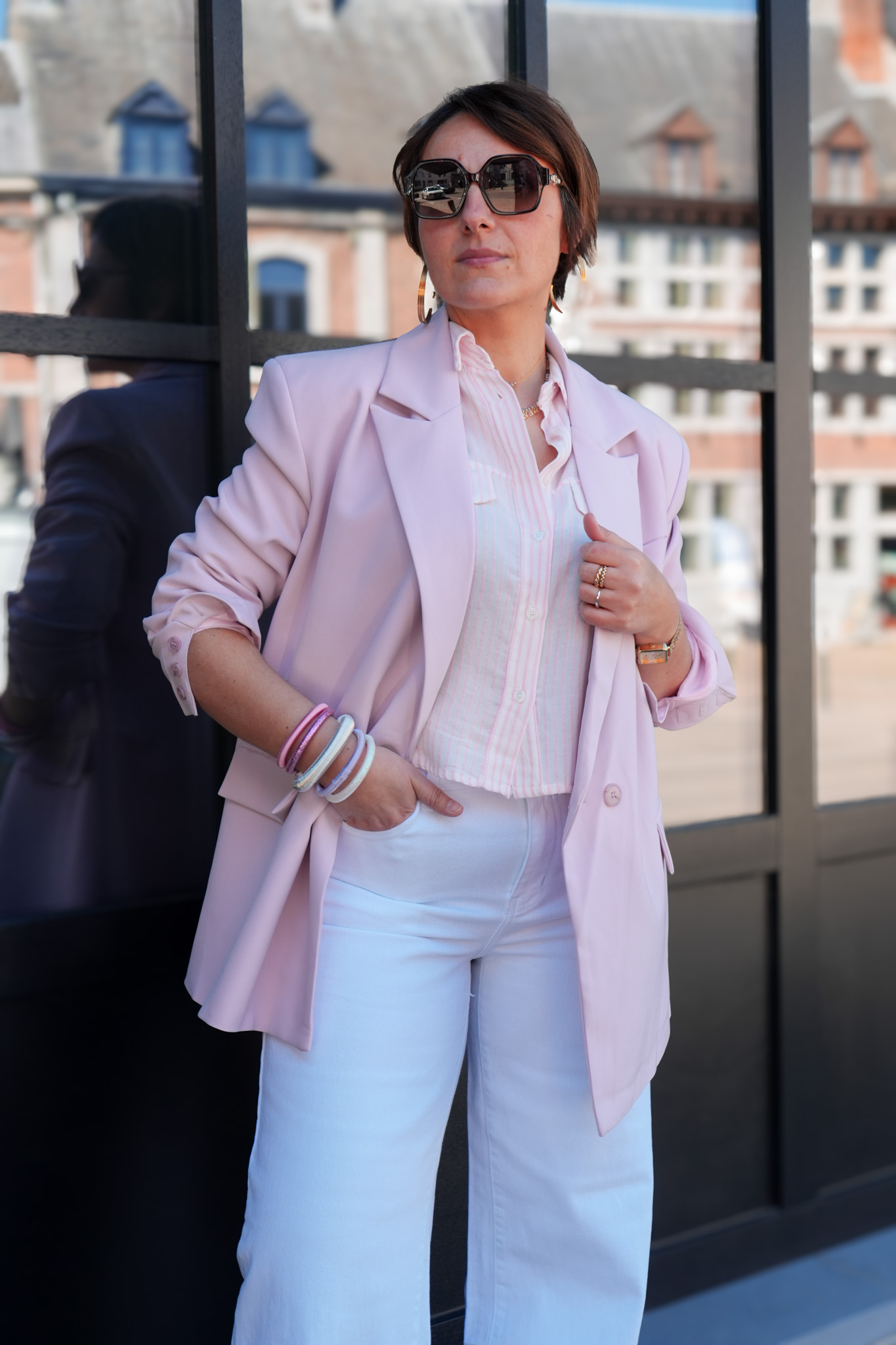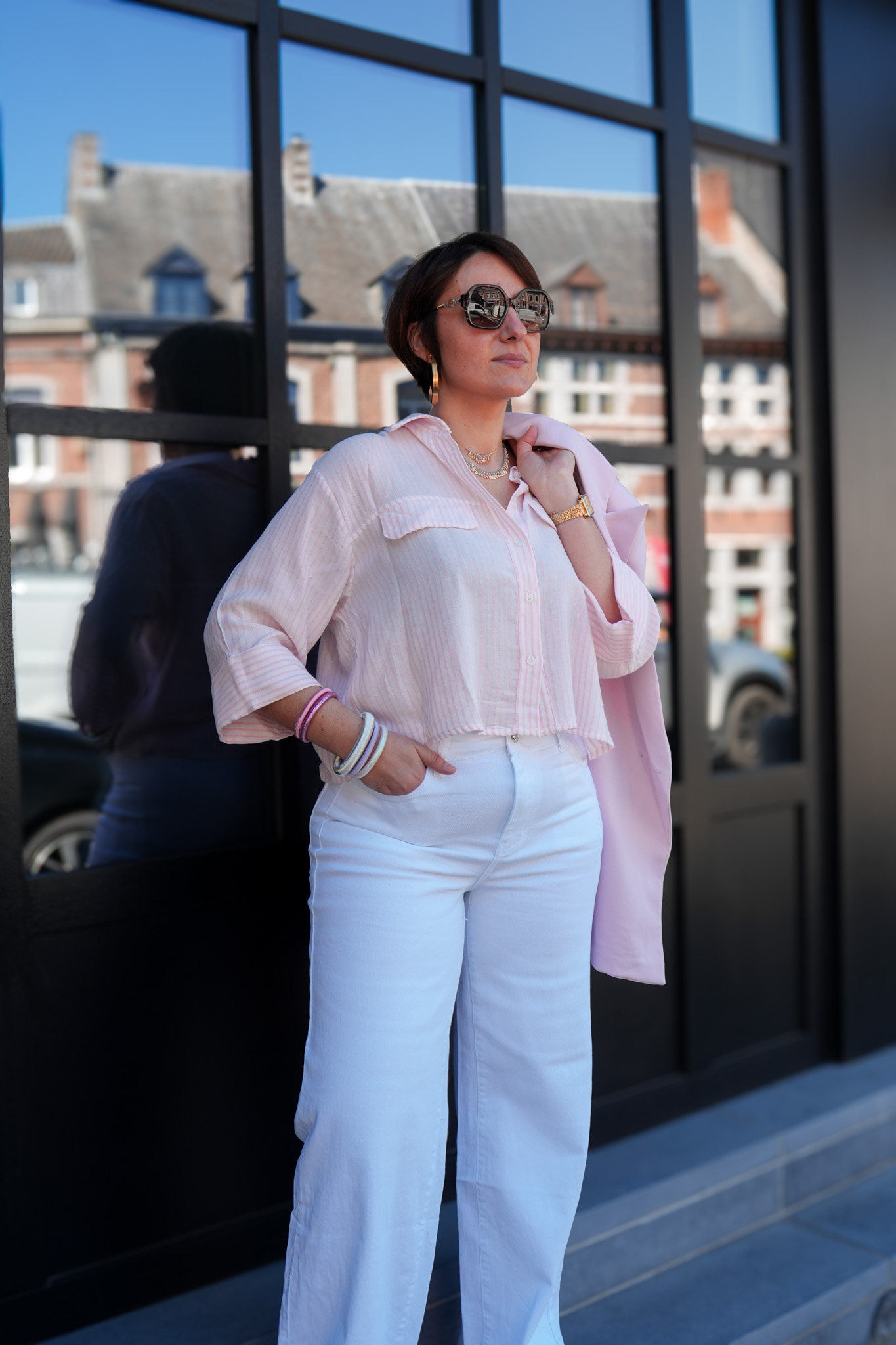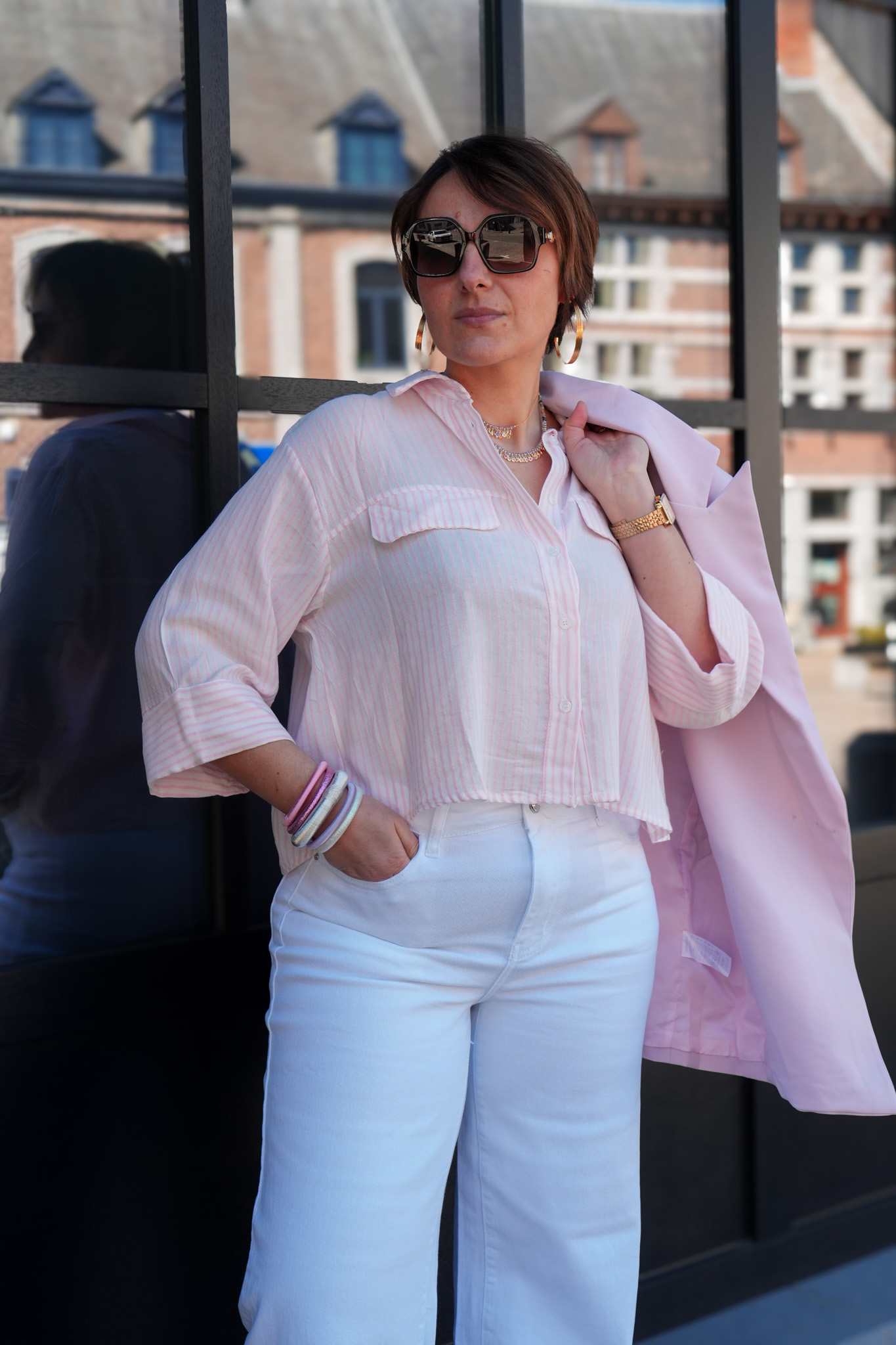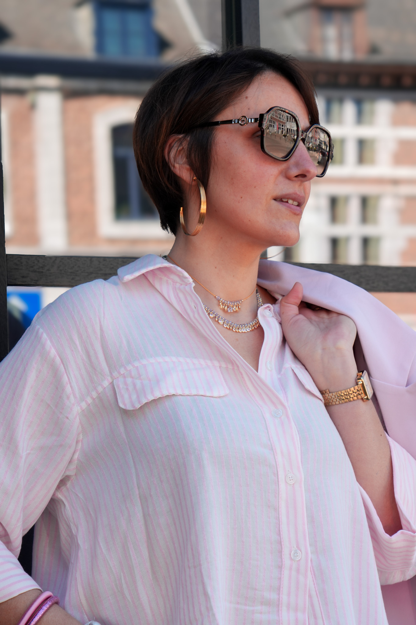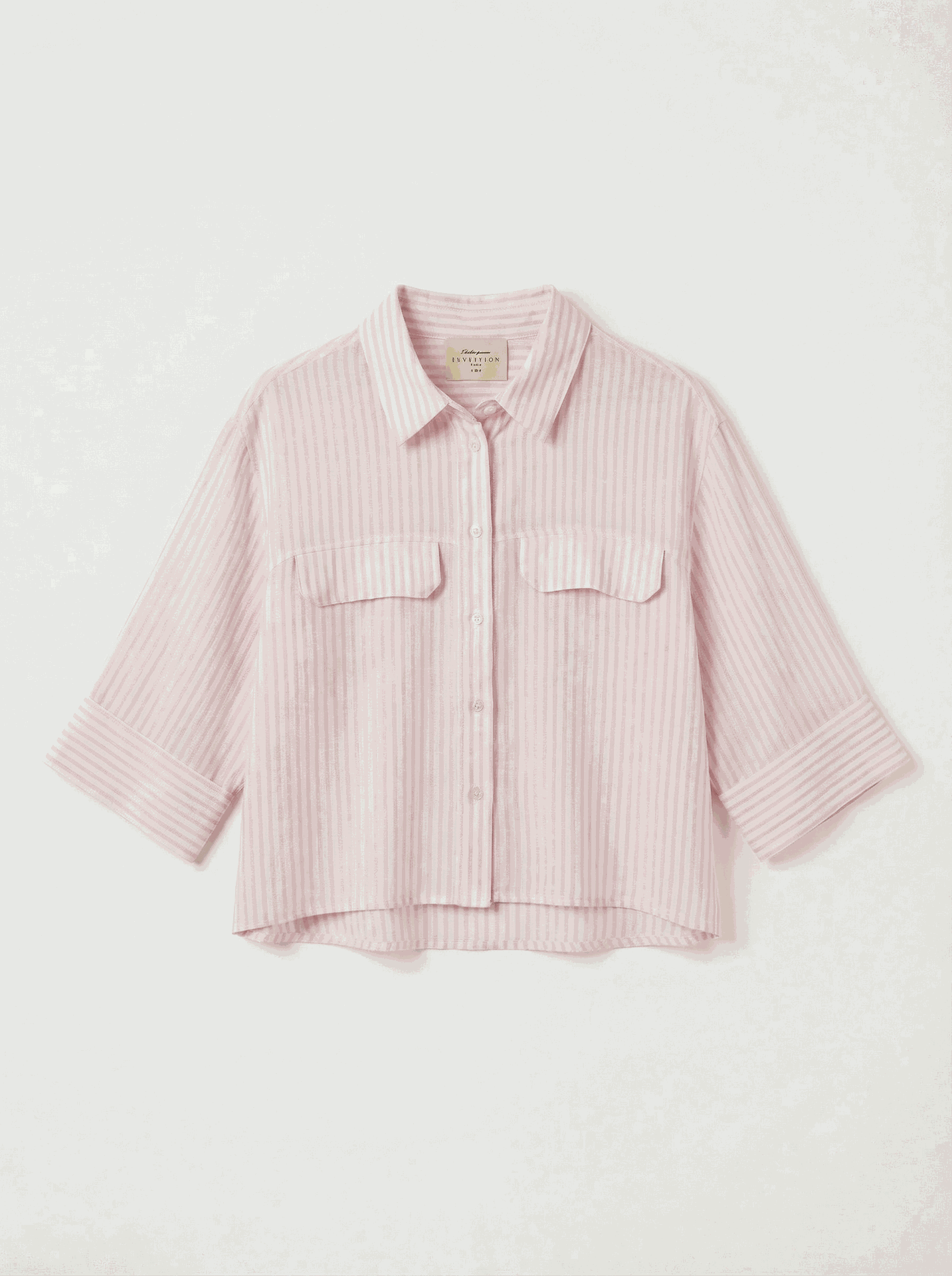 Chemise lignée avec manches 3/4 et poches – Rose