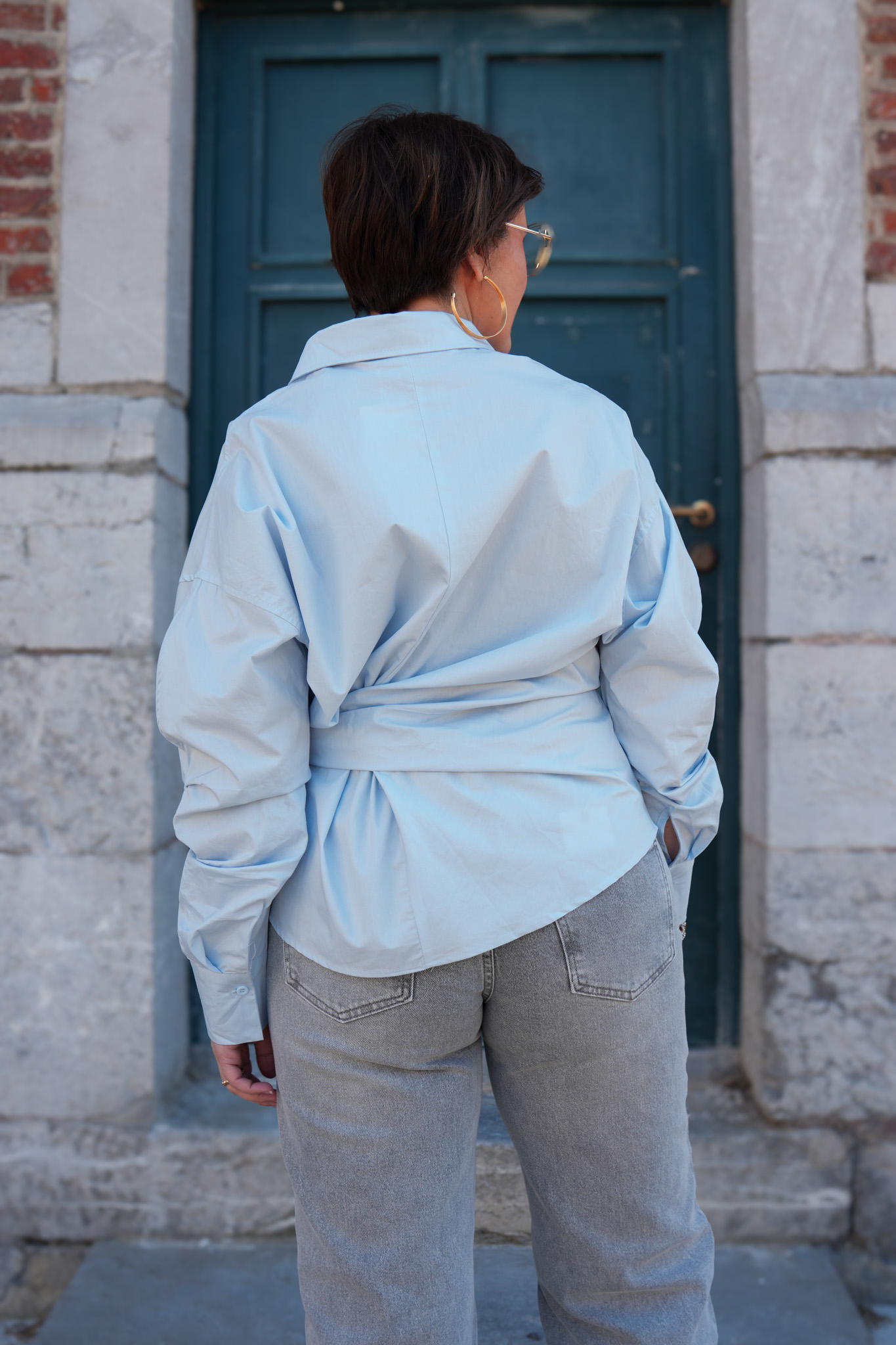 Chemiser uni en coton avec noeud sur le côté – Bleu