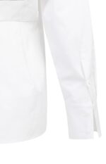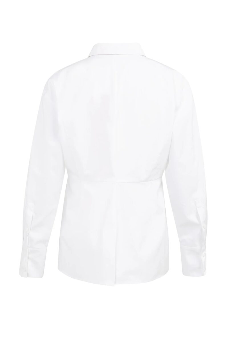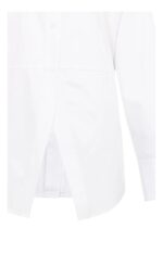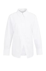 Ce chemisier élégant est fabriqué en popeline lisse et présente une silhouette A-line ample et féminine. Conçu avec un col classique, des manches longues avec poignets et un détail de fente à l’avant frappant. La ligne de couture subtile au haut de la poitrine ajoute une touche moderne à la silhouette. Une pièce intemporelle pour un look frais et sophistiqué. Le modèle mesure 175 cm et porte une taille 36.