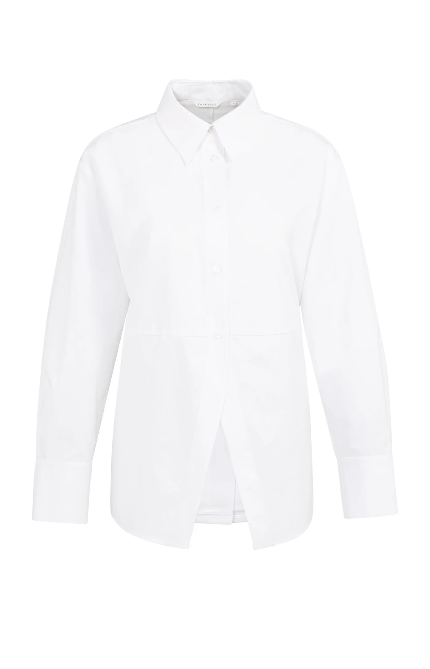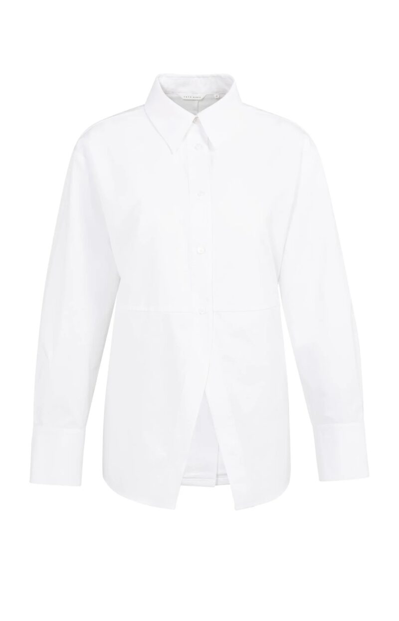 Chemisier en popeline A-line avec détail fendu sur le devant – YAYA – Blanc