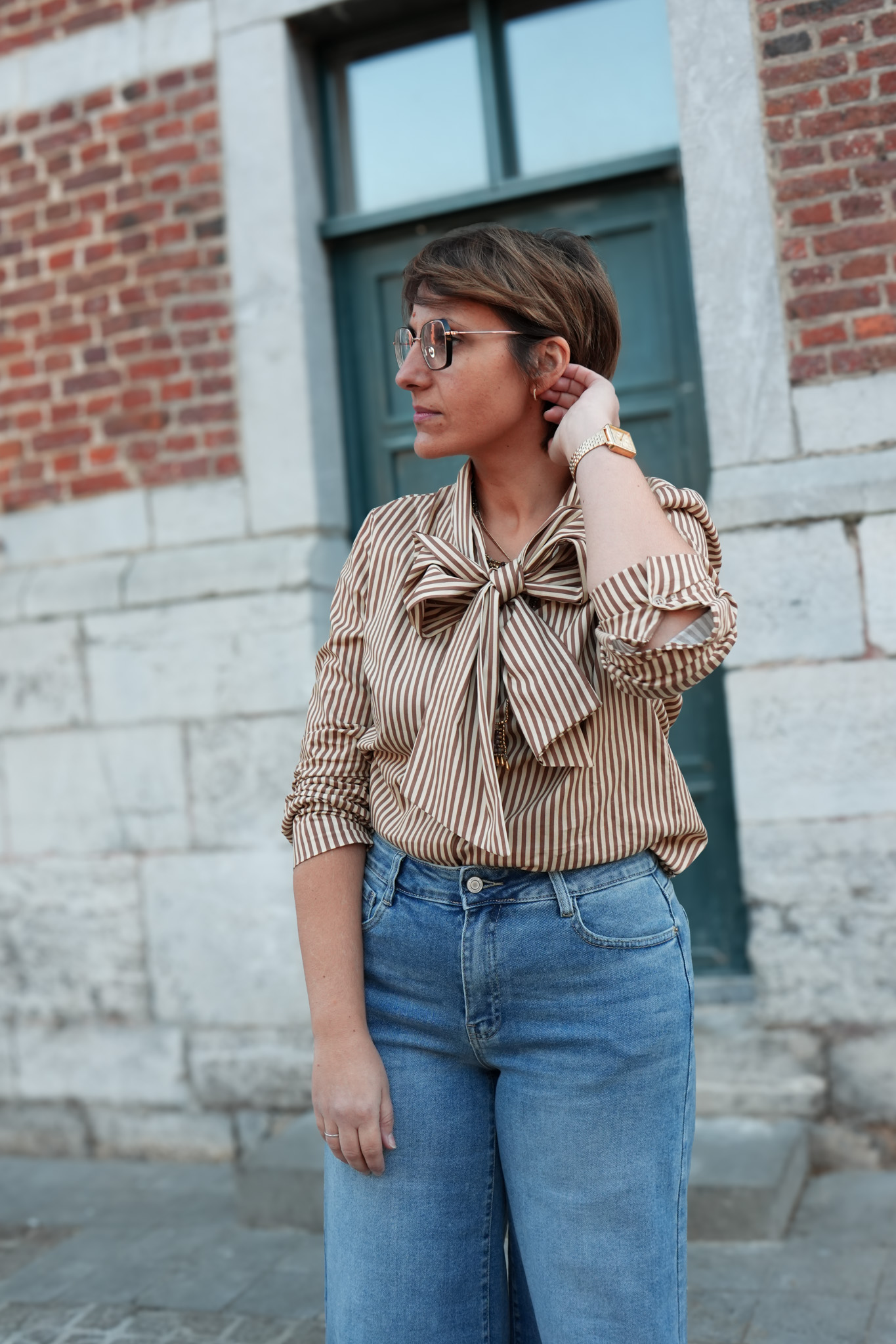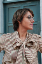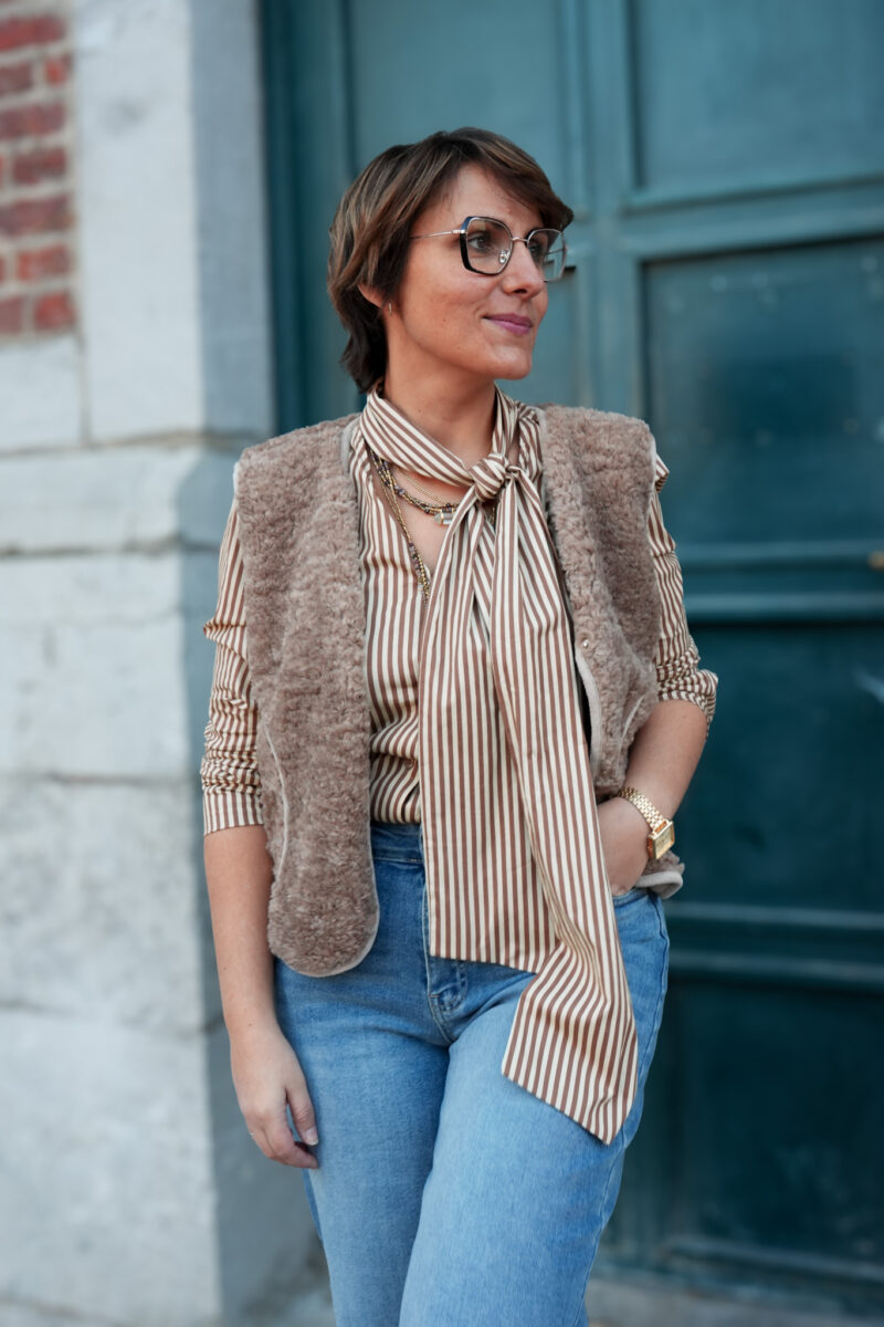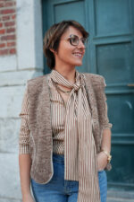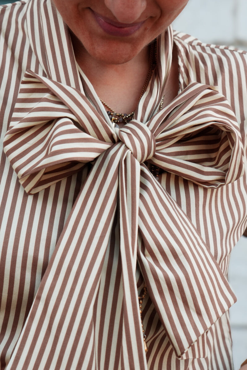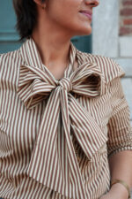 Chemisier ligné avec col lavallière – camel
