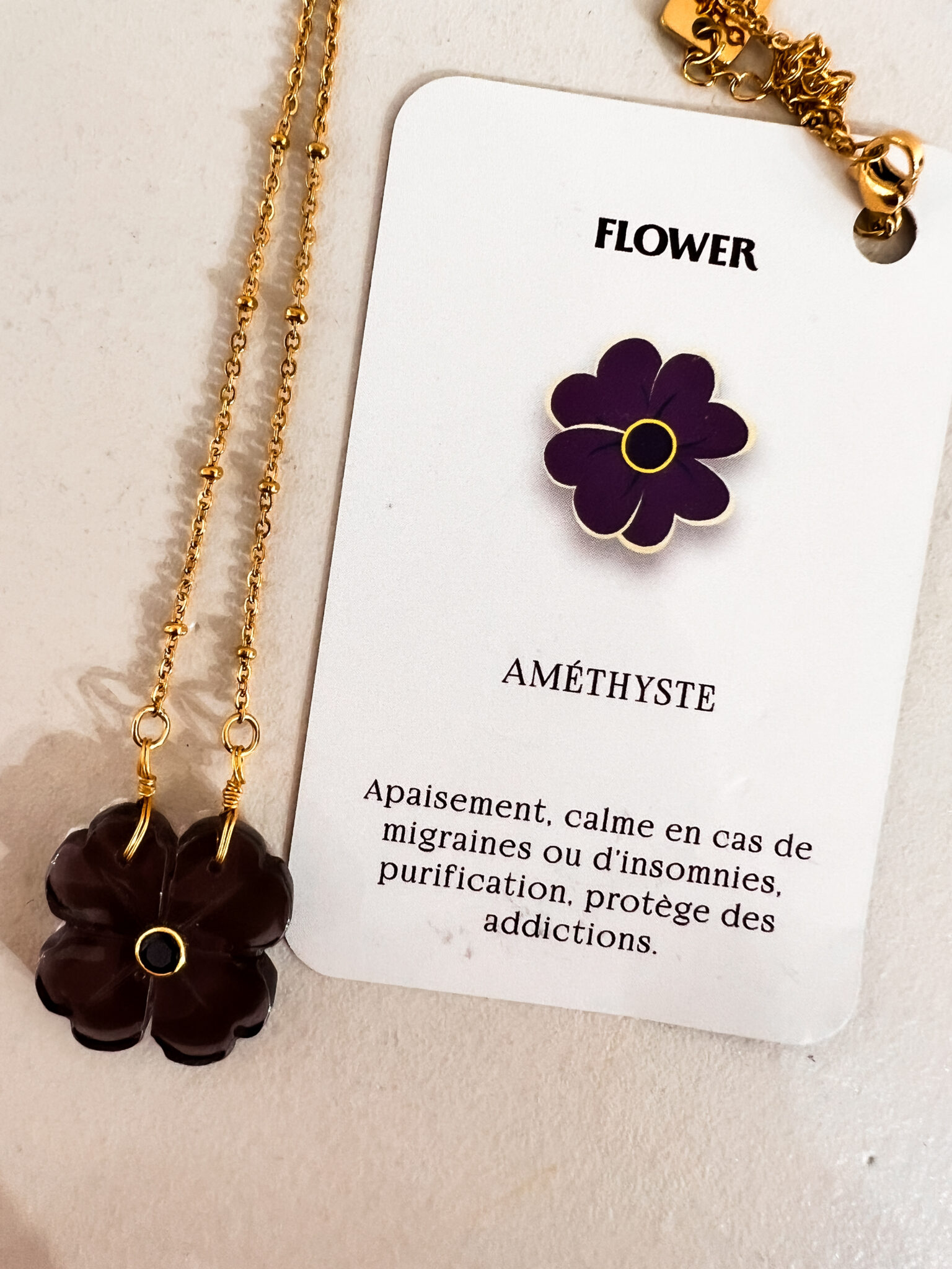 Collier avec pendentif et pierres semi-précieuses – Le monde est stone – FLOWER – Violet améthyste
