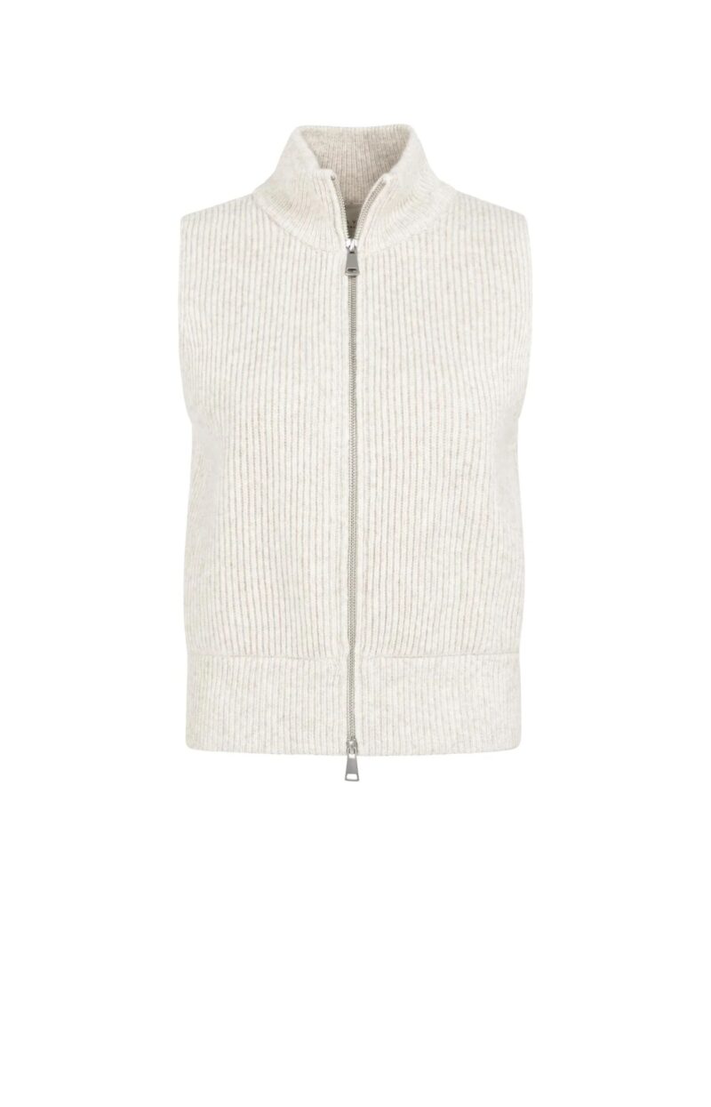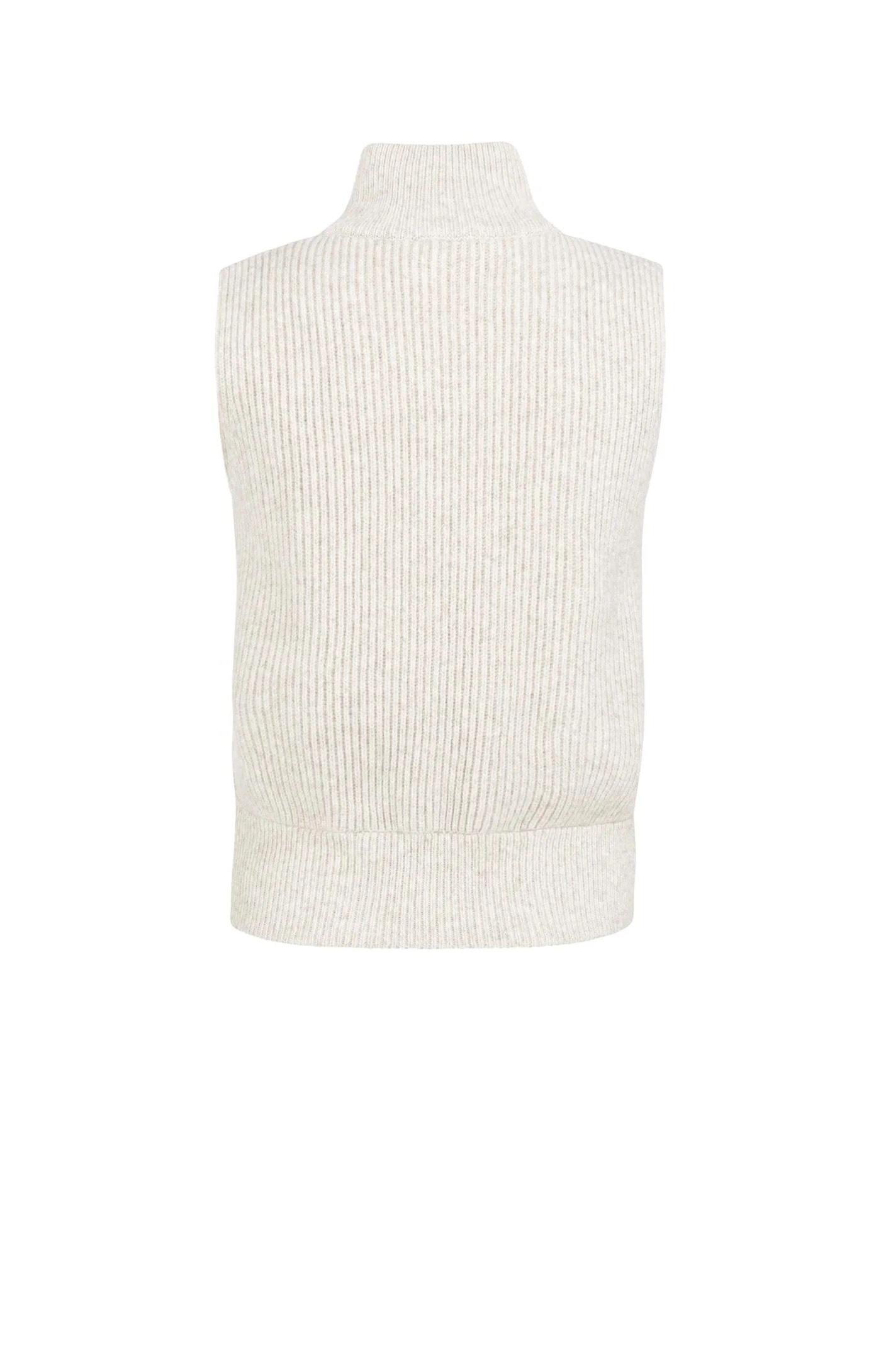 Gilet sans manches en tricot côtelé avec col haut et fermeture éclair – YAYA – Heather Grey