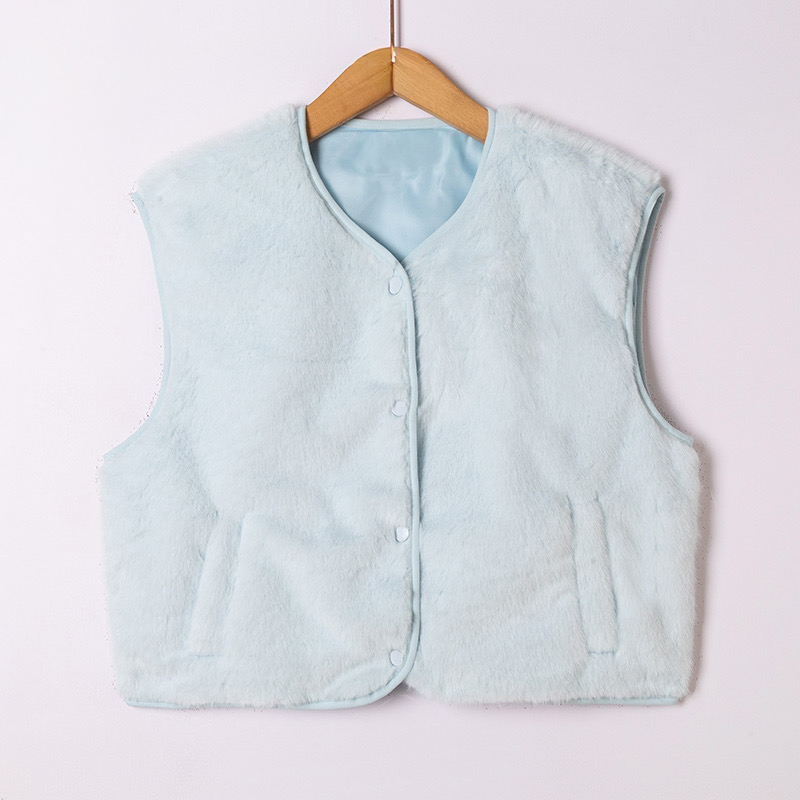 Gilet sans manches fourrure synthétique – Fred – Bleu ciel