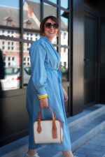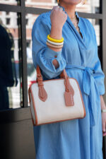 Sa grande poche intérieure en cuir structure l’espace, tandis que les garnitures façon ceinture renforcent la tenue du sac. Les poignées ajustables et la fermeture zippée en font un compagnon fiable, pensé pour accompagner une journée bien remplie.