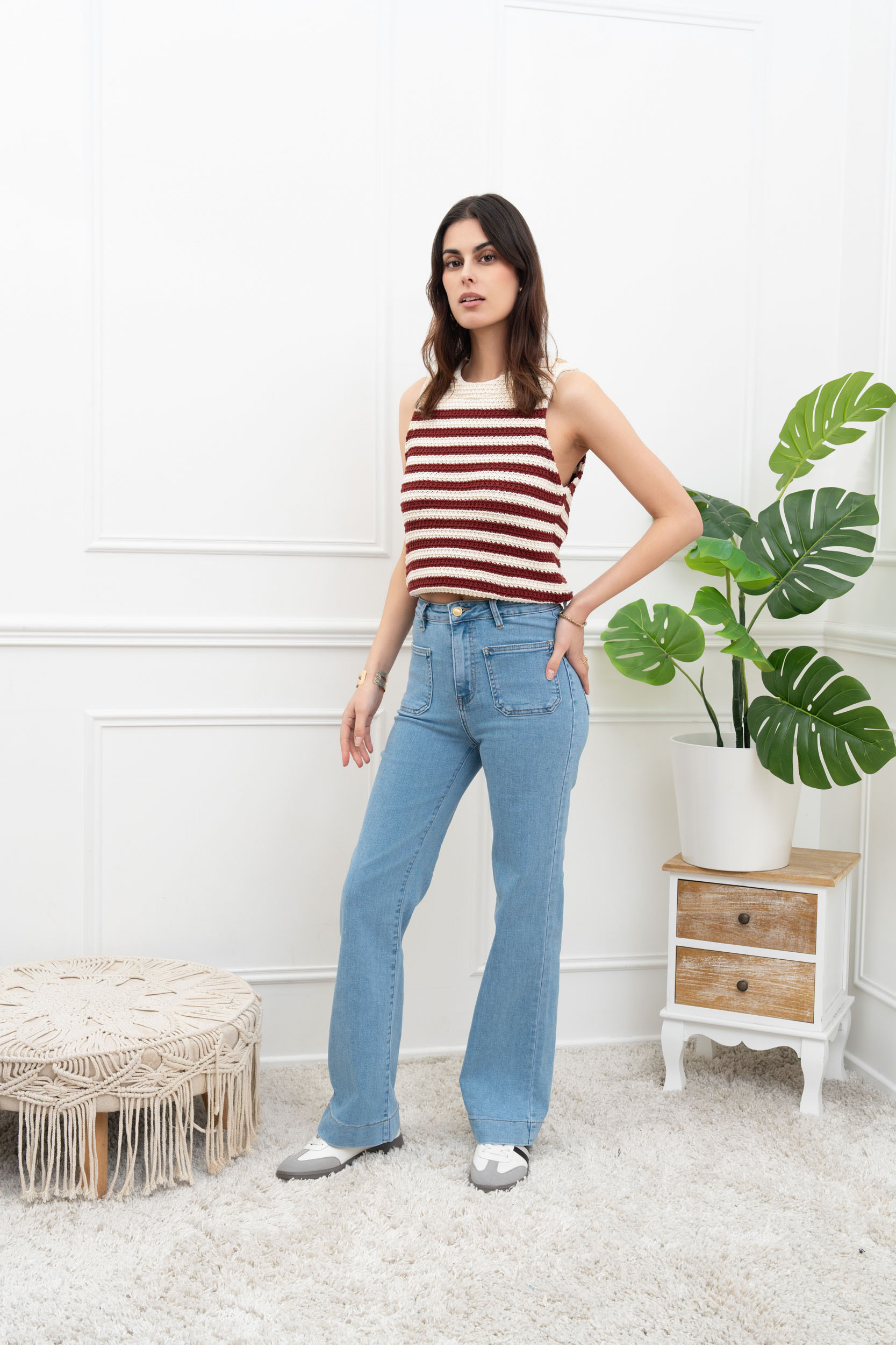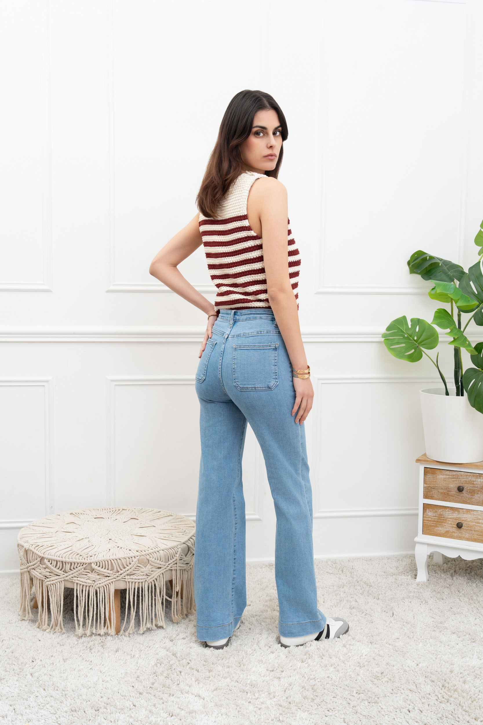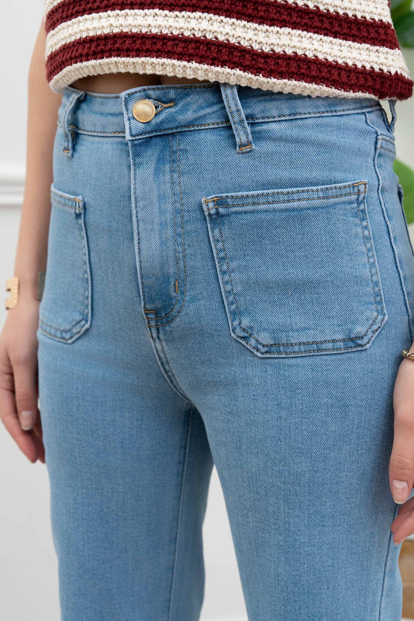 Jeans droit avec poches appliquées – Loris – bleu clair