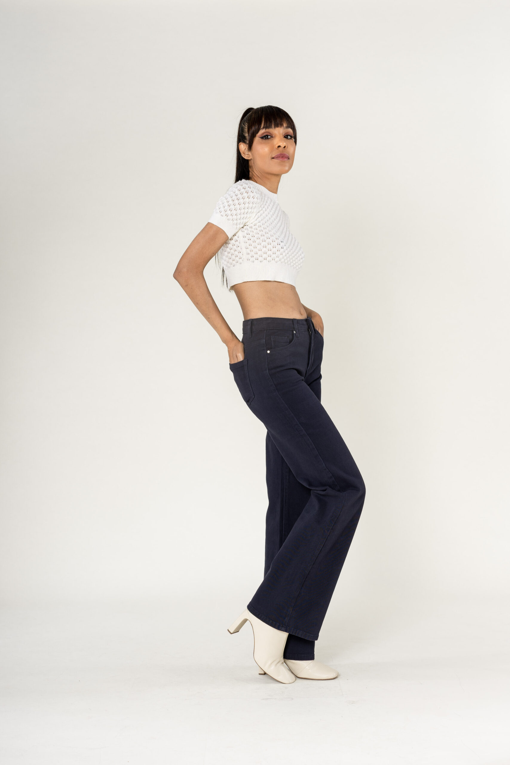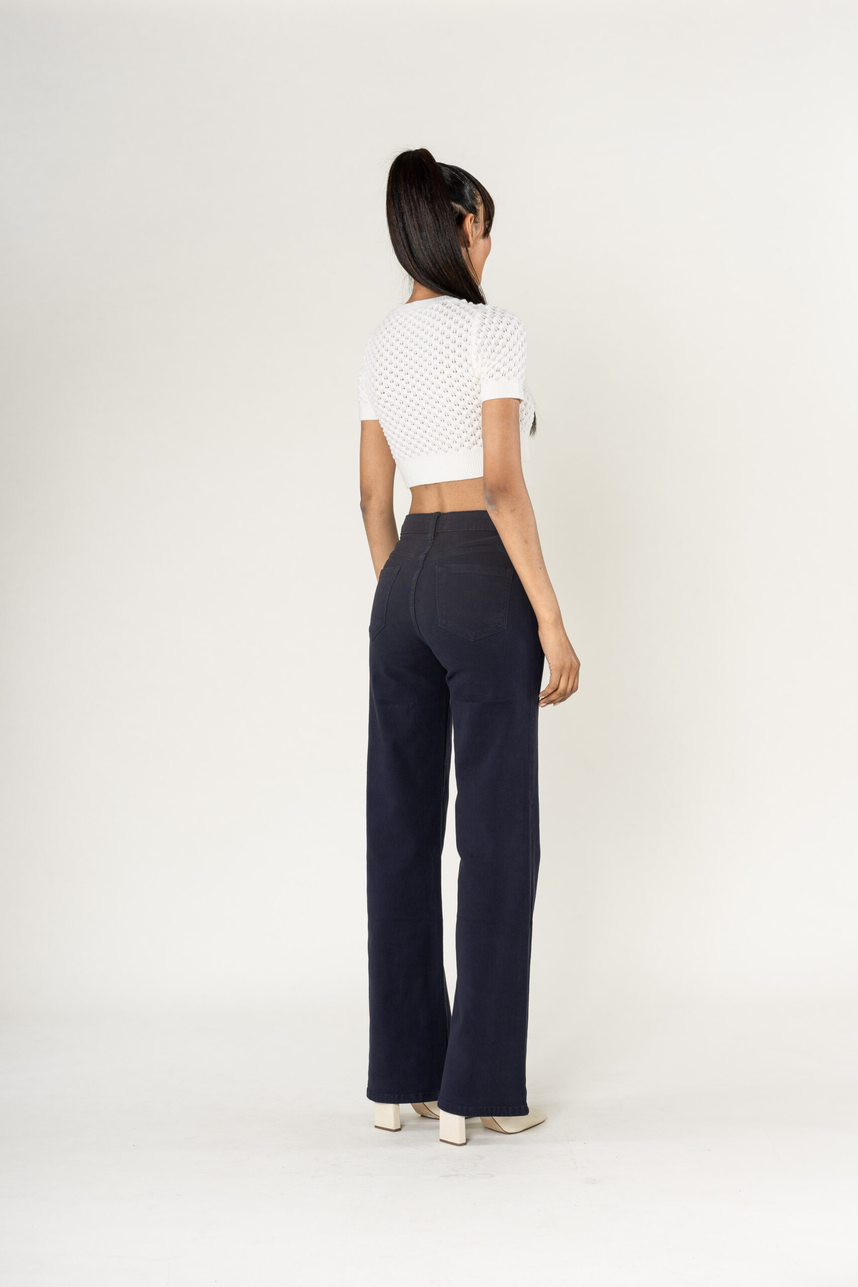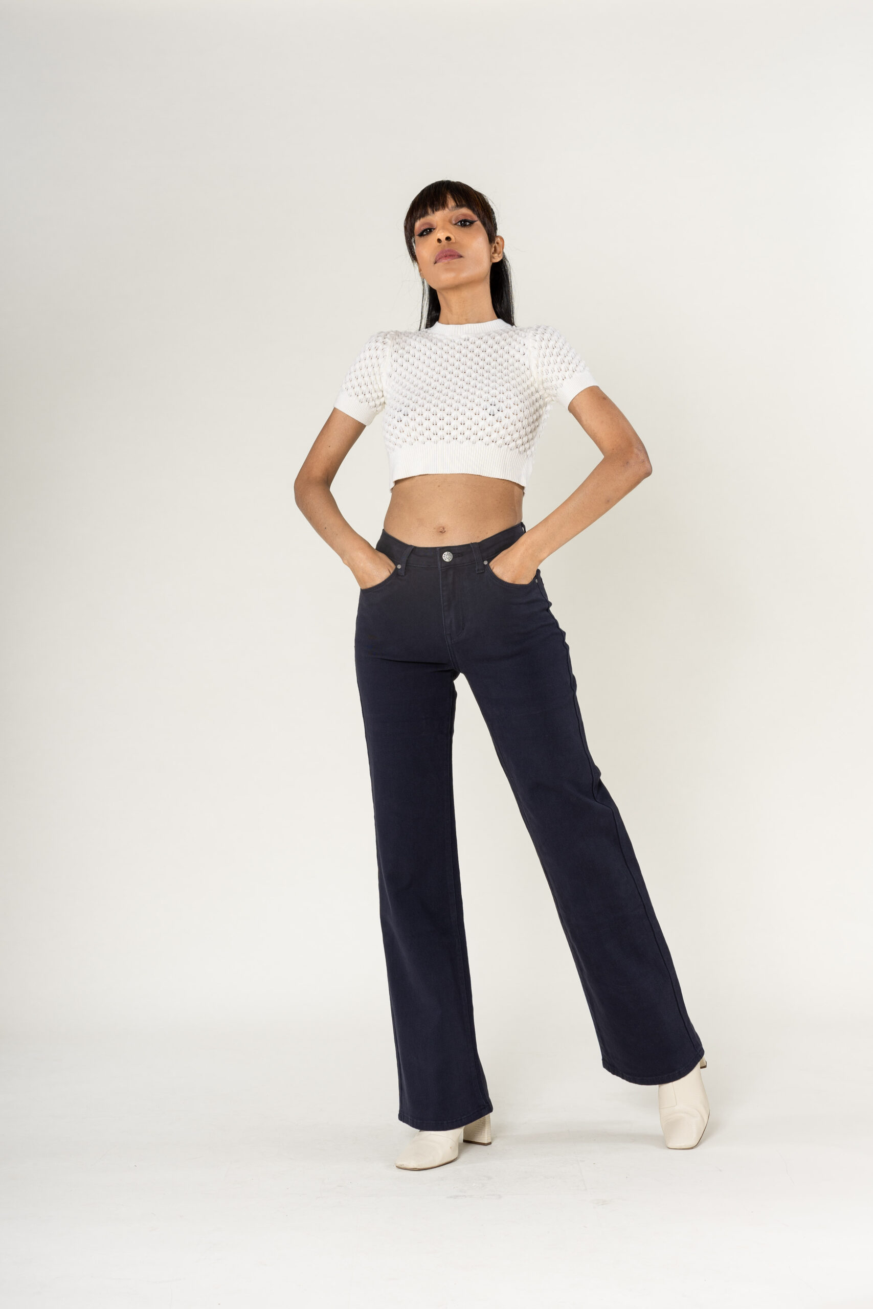 Jeans évasé uni stretch pour être stylée et tendance sans négliger le confort.
