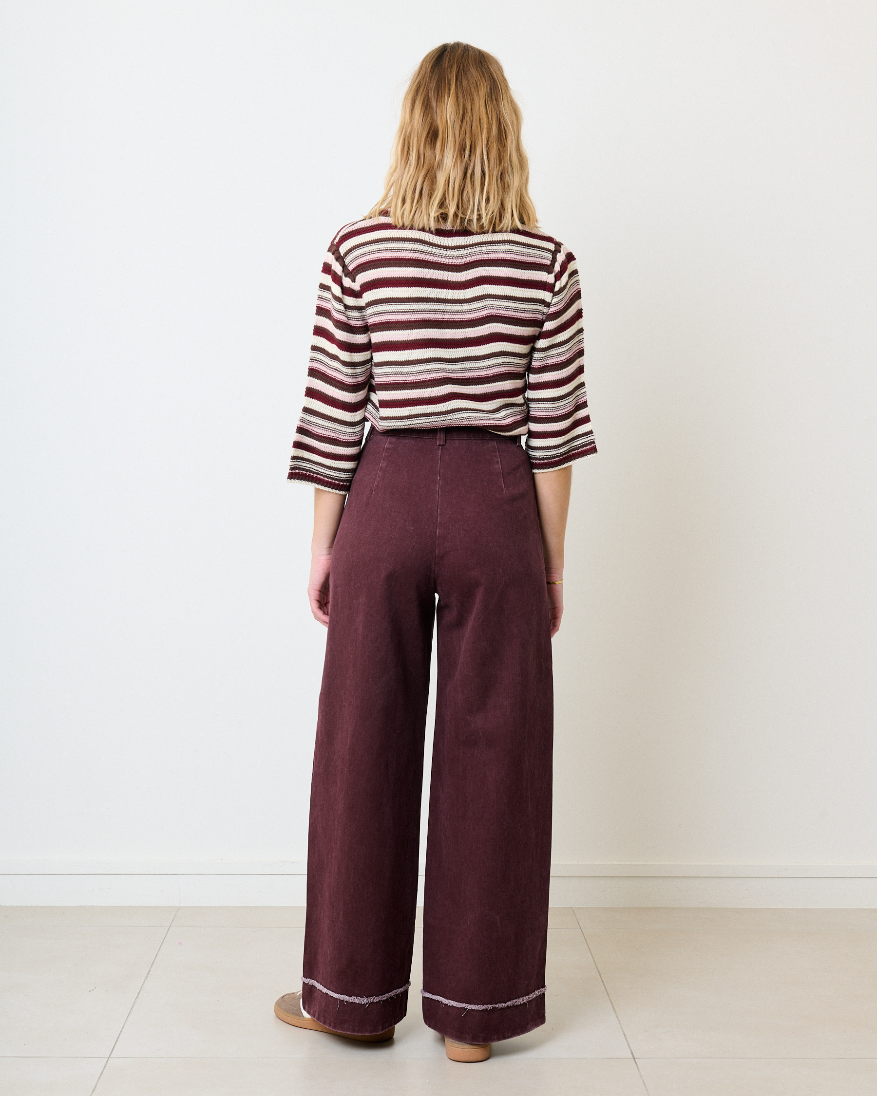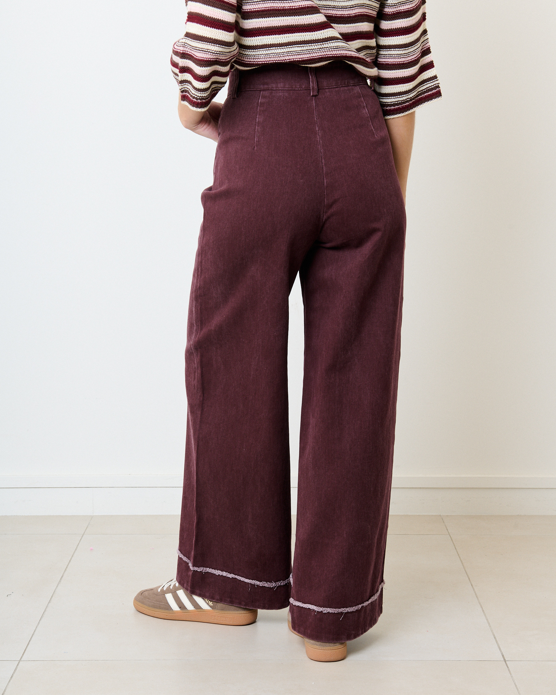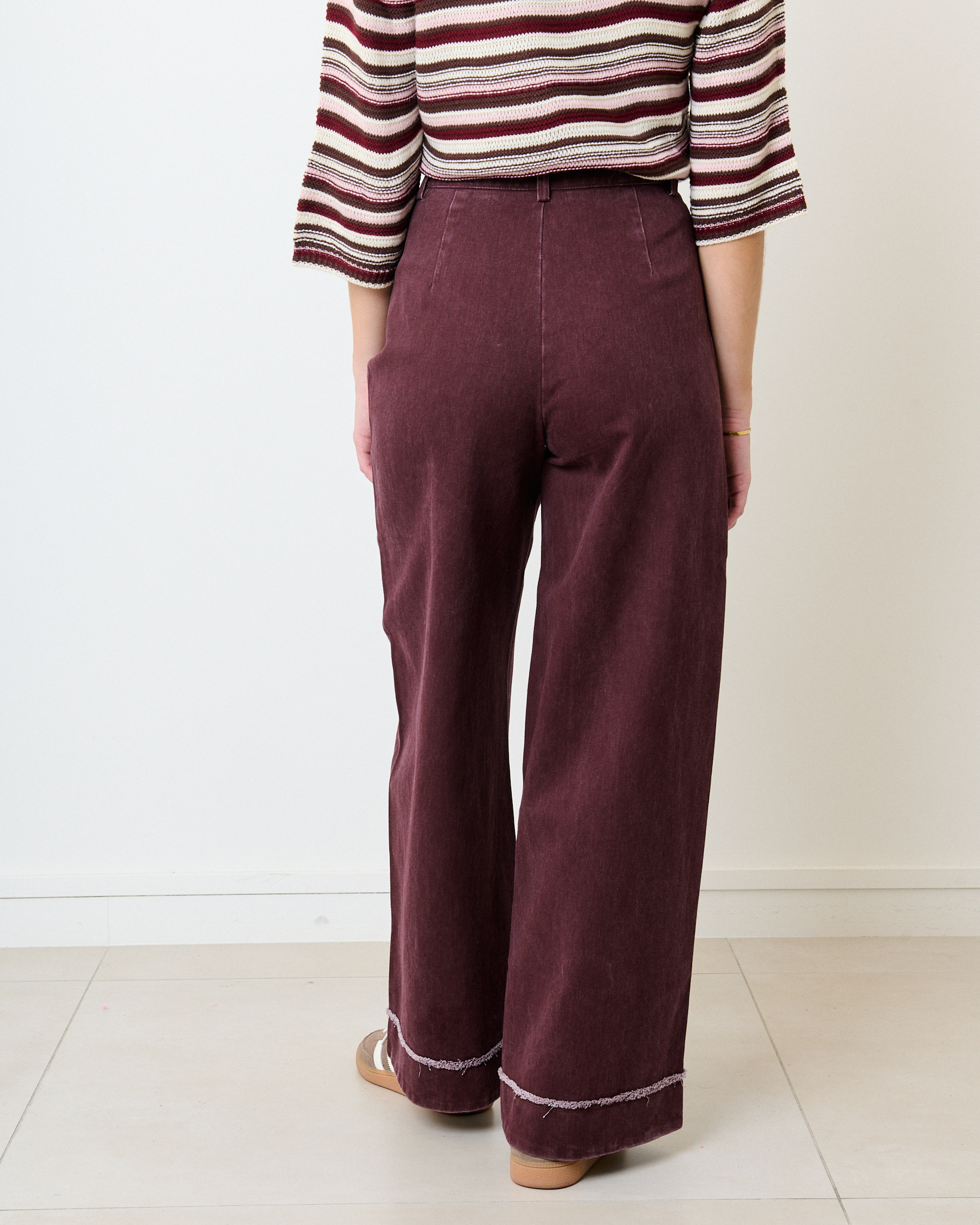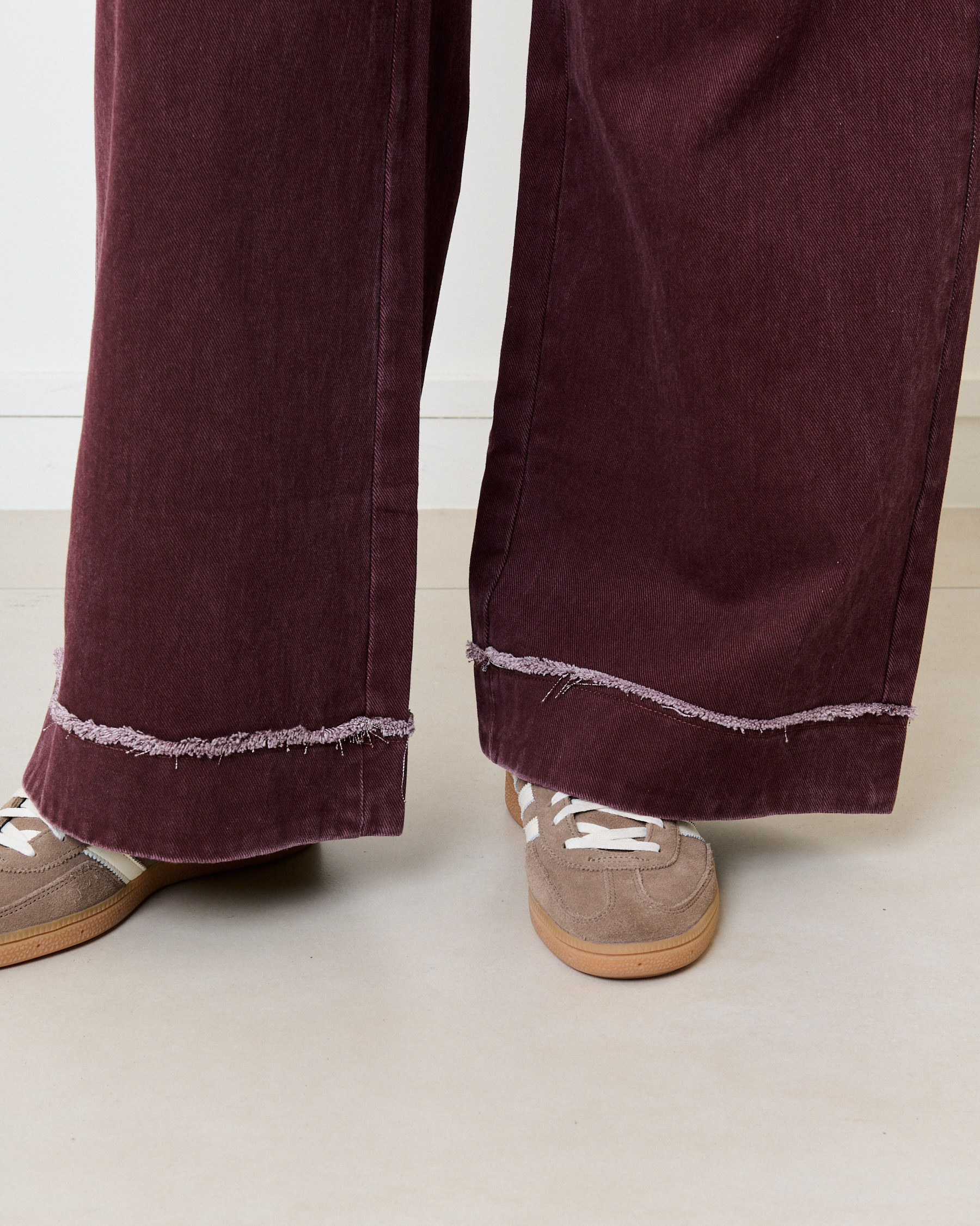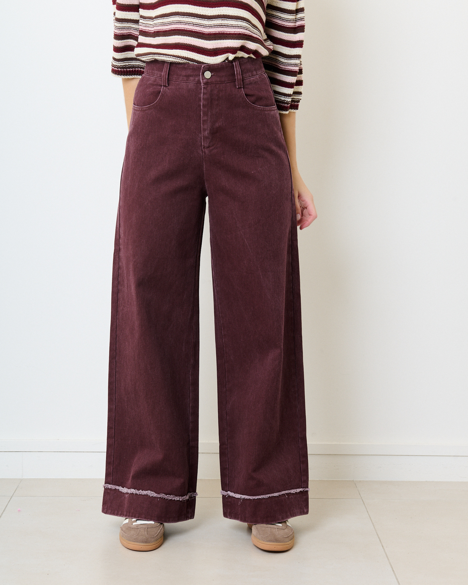 Jeans large tailleur détail effiloché – bordeaux