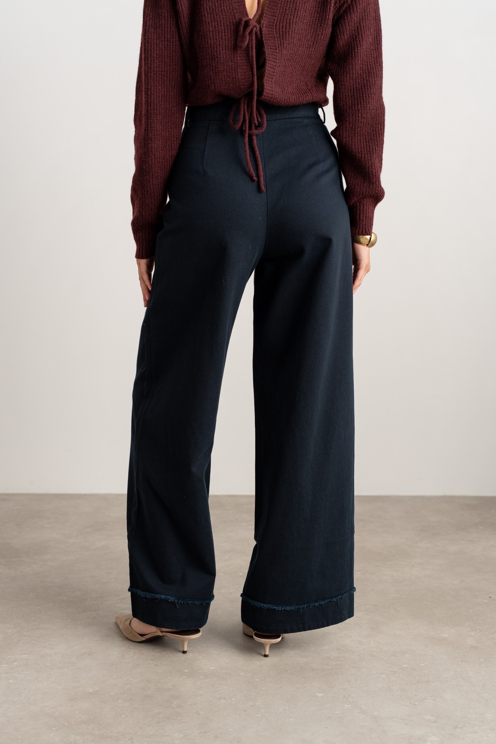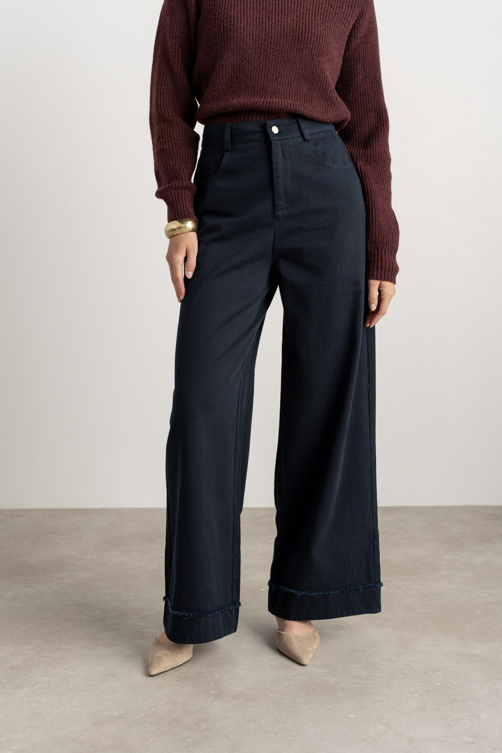 Jeans large tailleur détail effiloché – marine