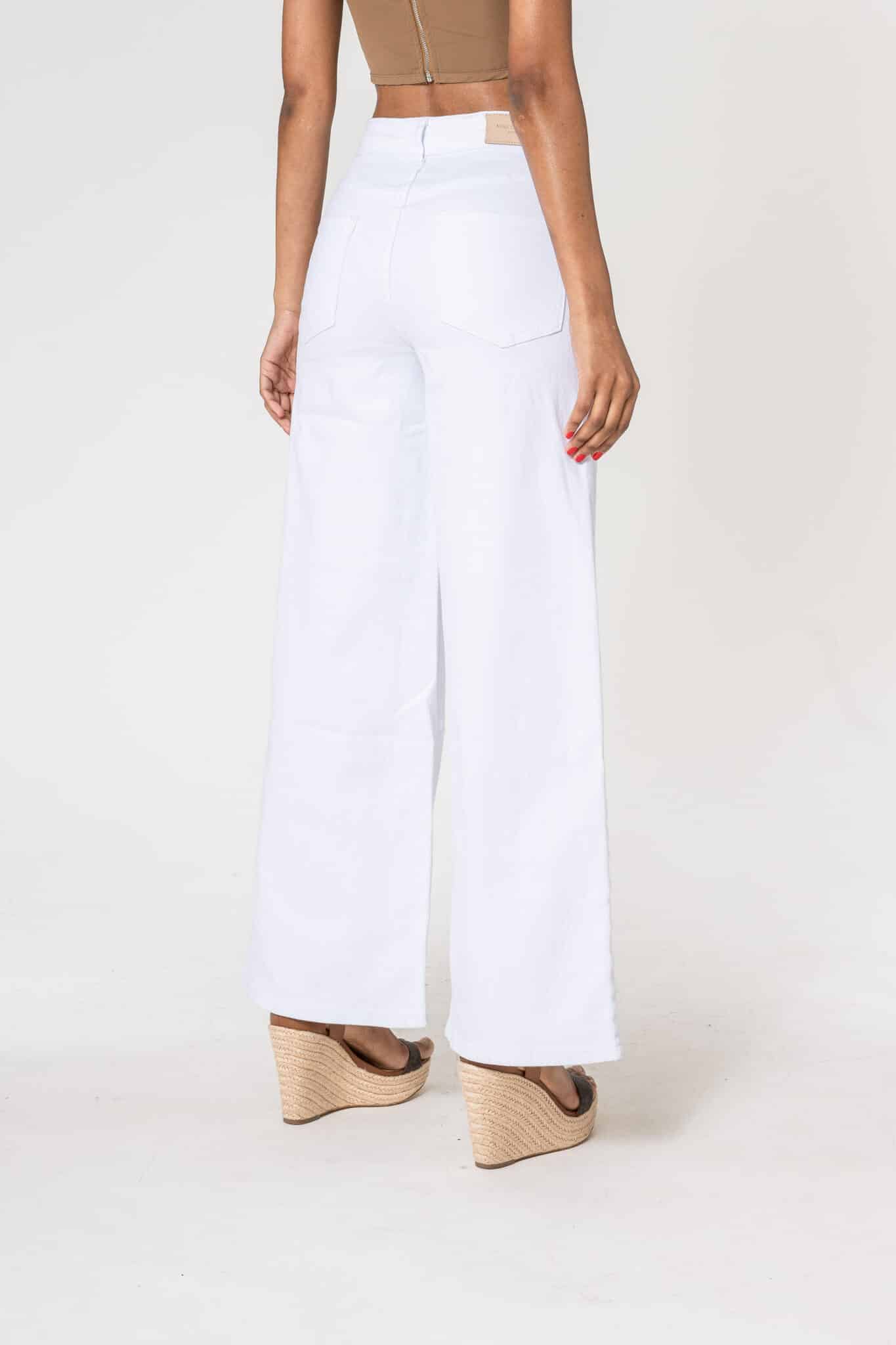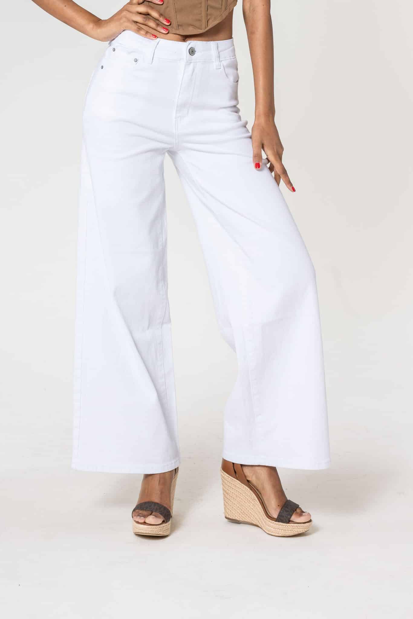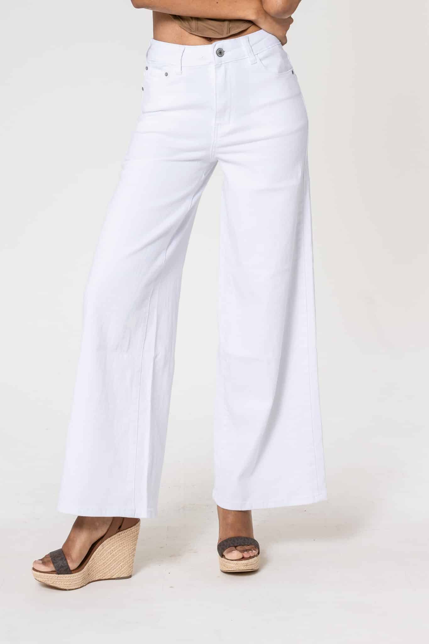 Jeans wide leg uni taille haute – Nathalie – Blanc