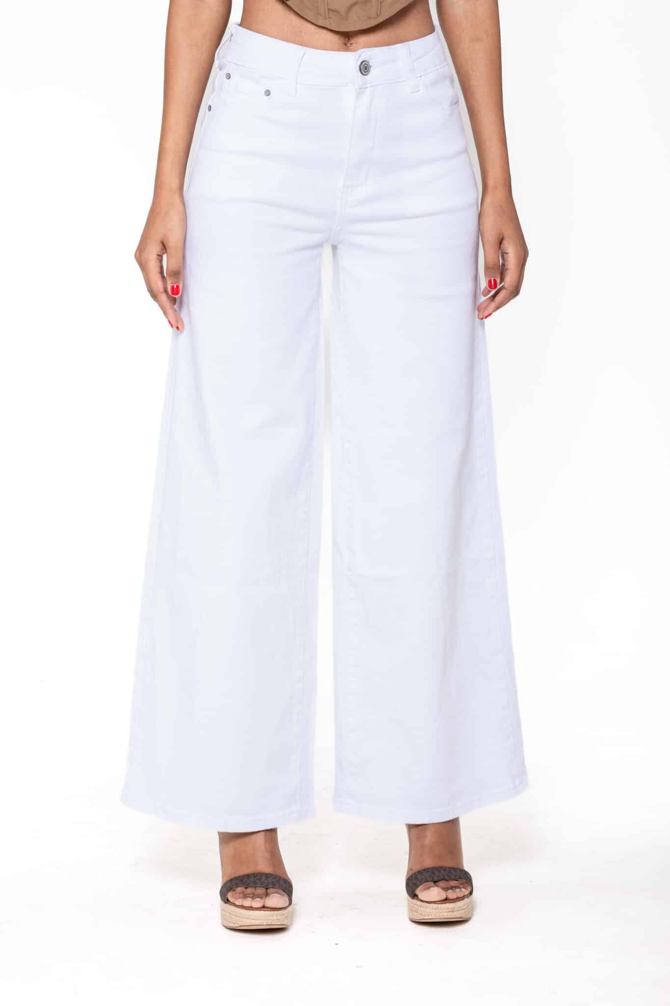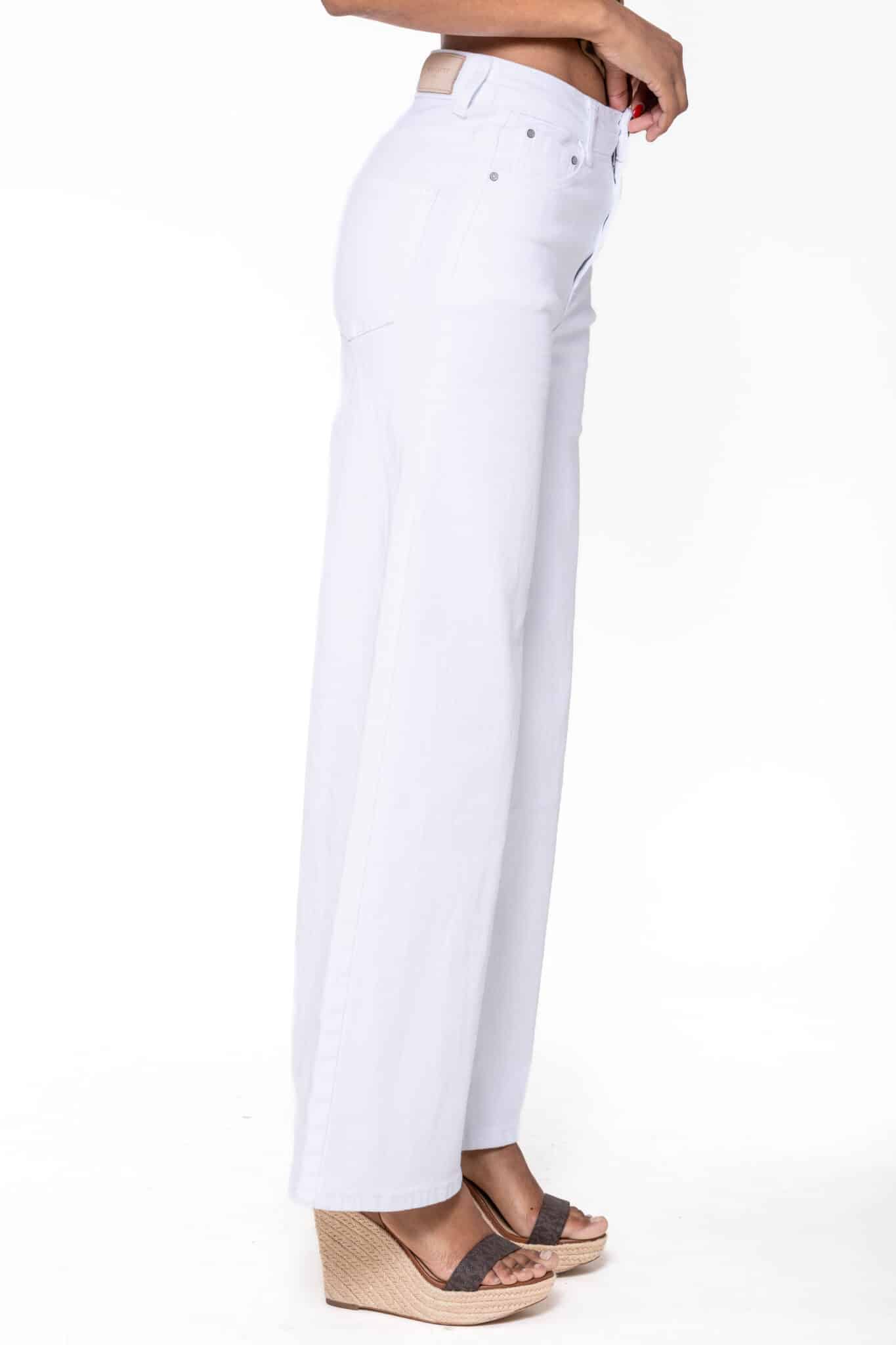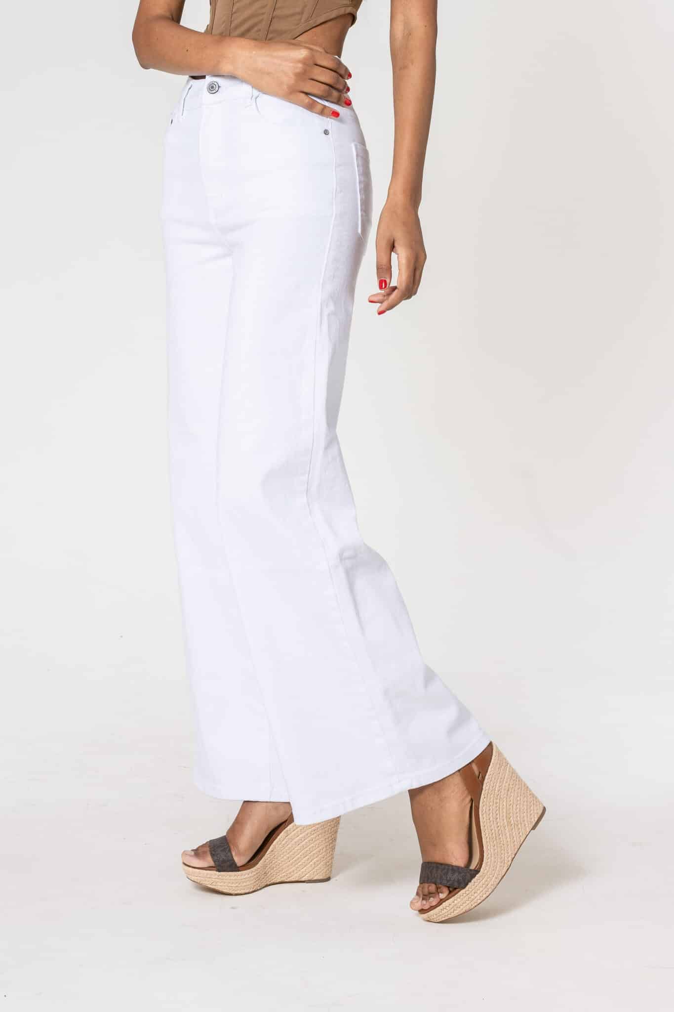 Jeans wide leg uni taille haute – Nathalie – Blanc