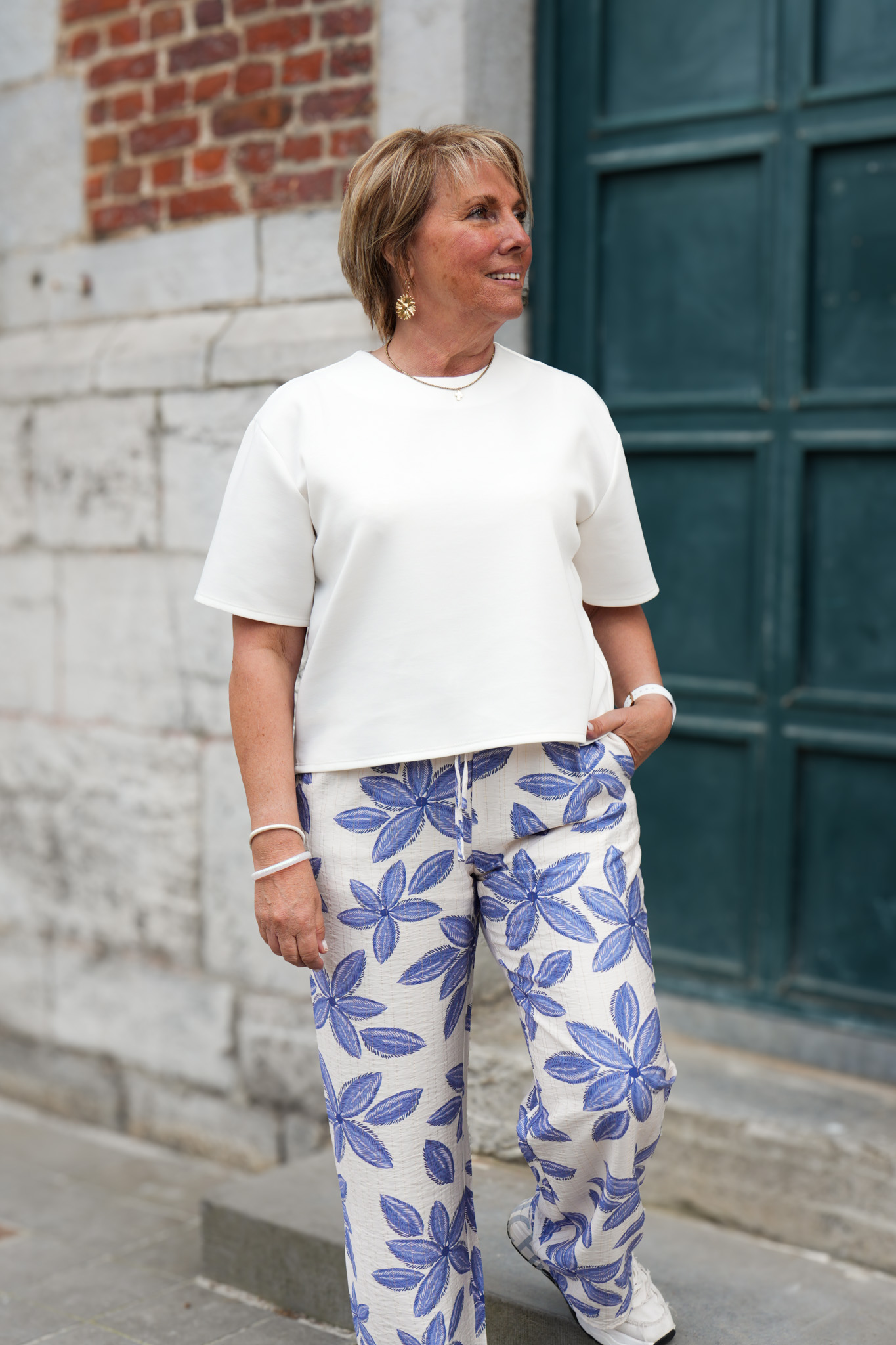 Pantalon fluide et ample à motifs – Flore – Bleu