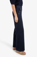 Pantalon taille haute, coupe large bouton en finition – YAYA – marine
