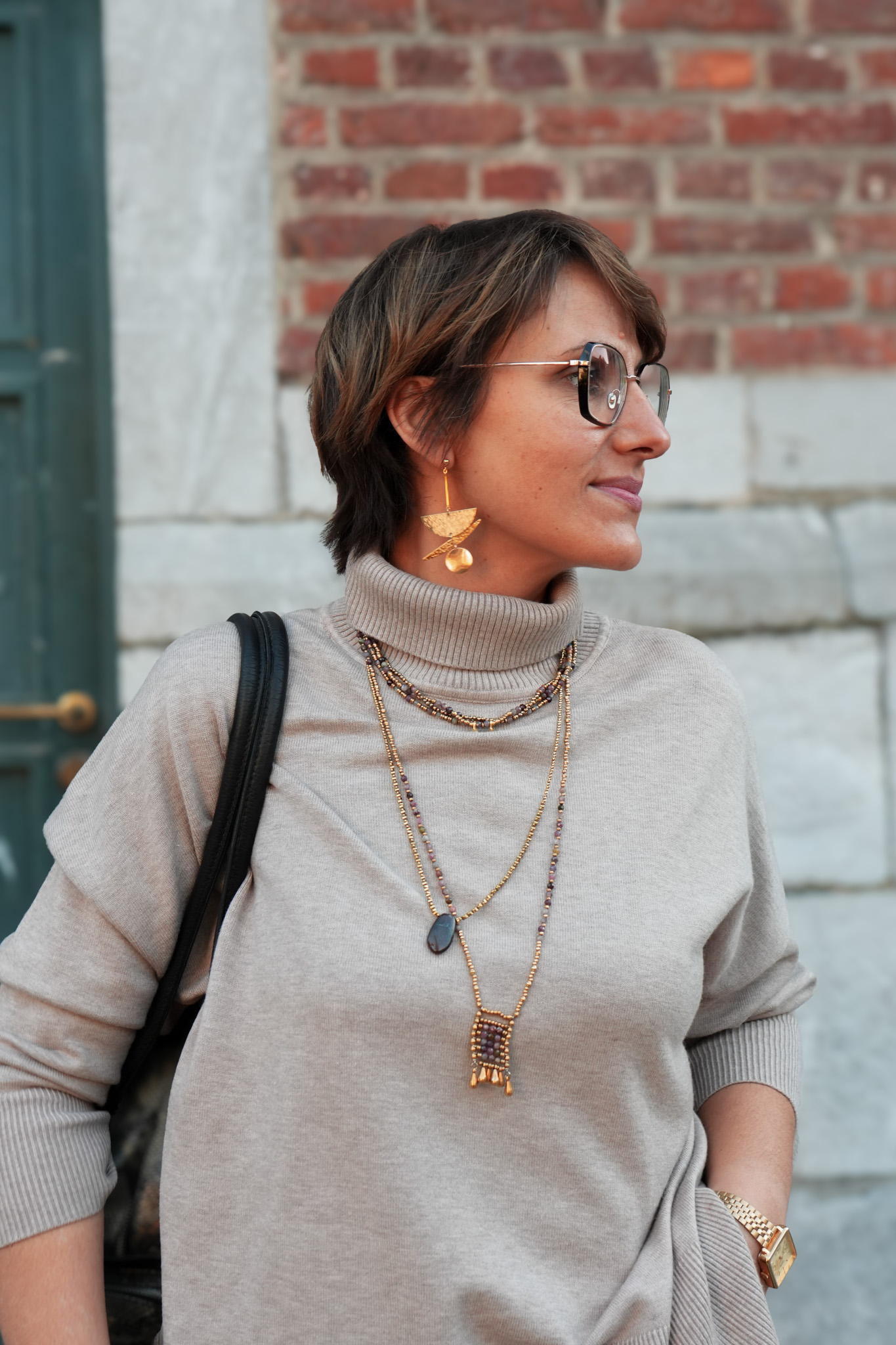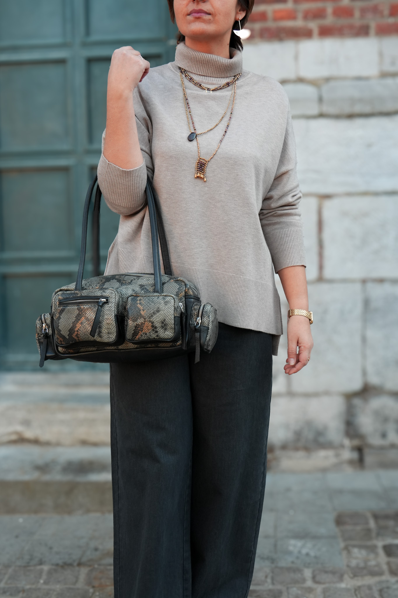 Pull en maille – Col montant – Taupe