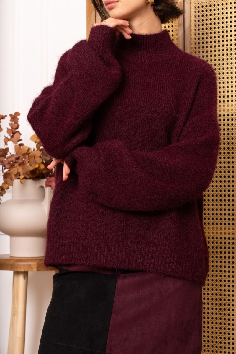 Pull en mailles uni col montant – Tina – burgundy