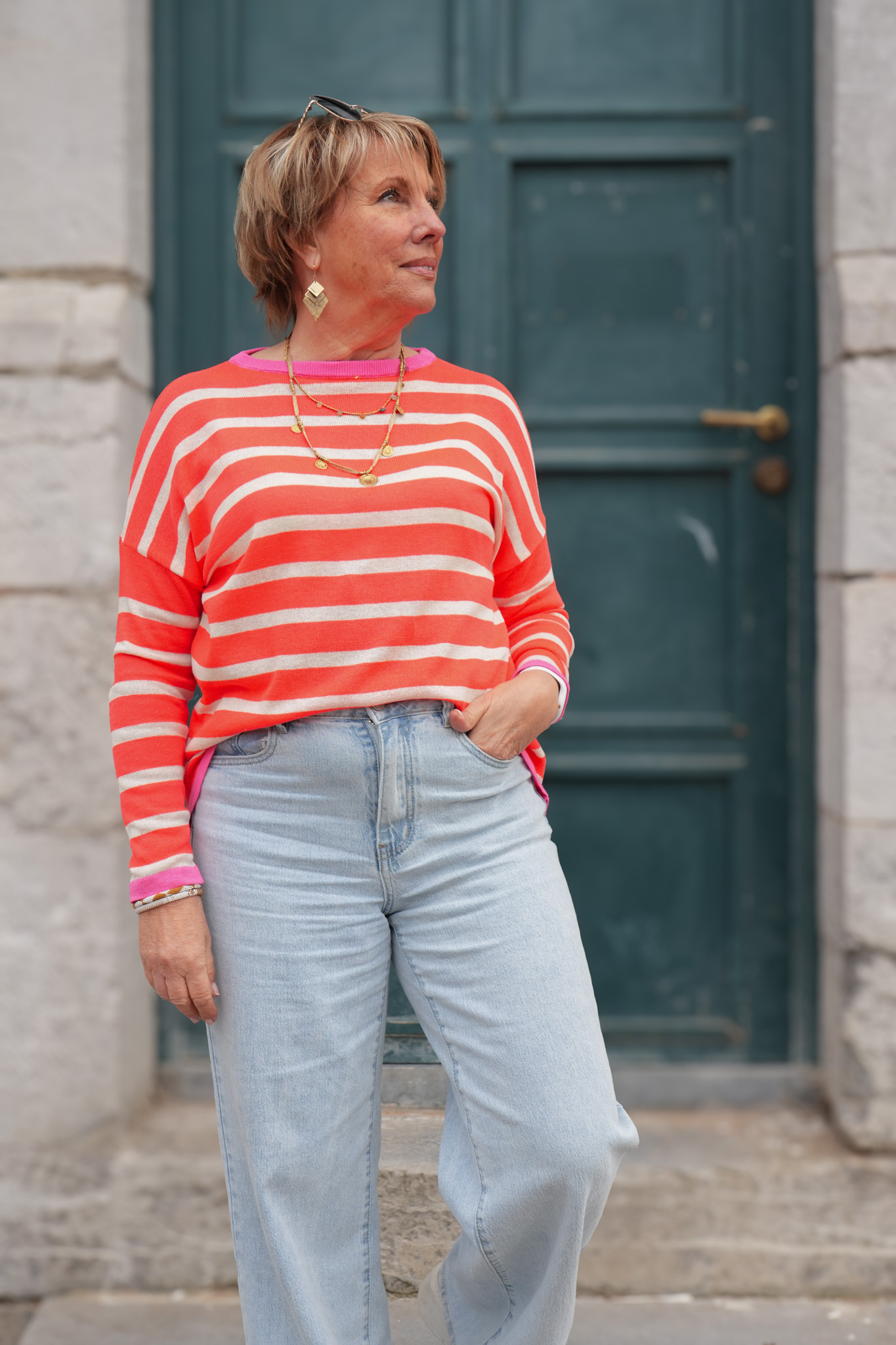 Pull fines mailles rayé – Lisa – Corail