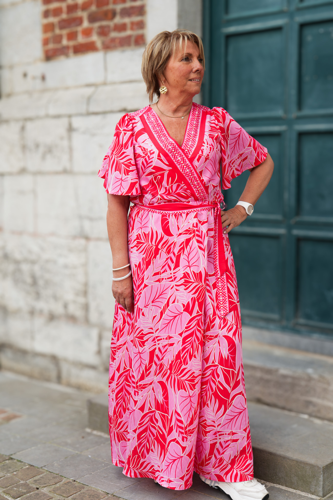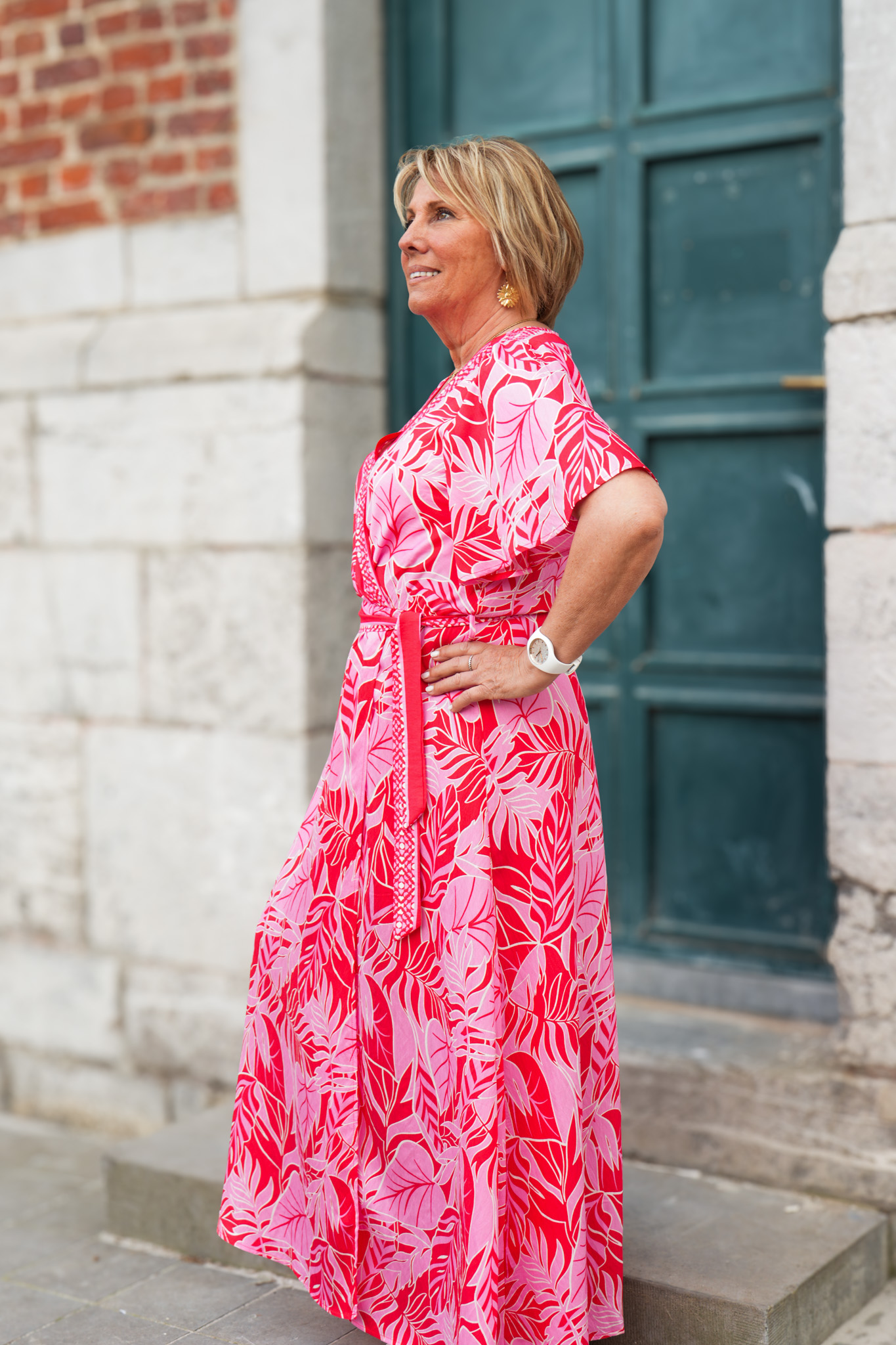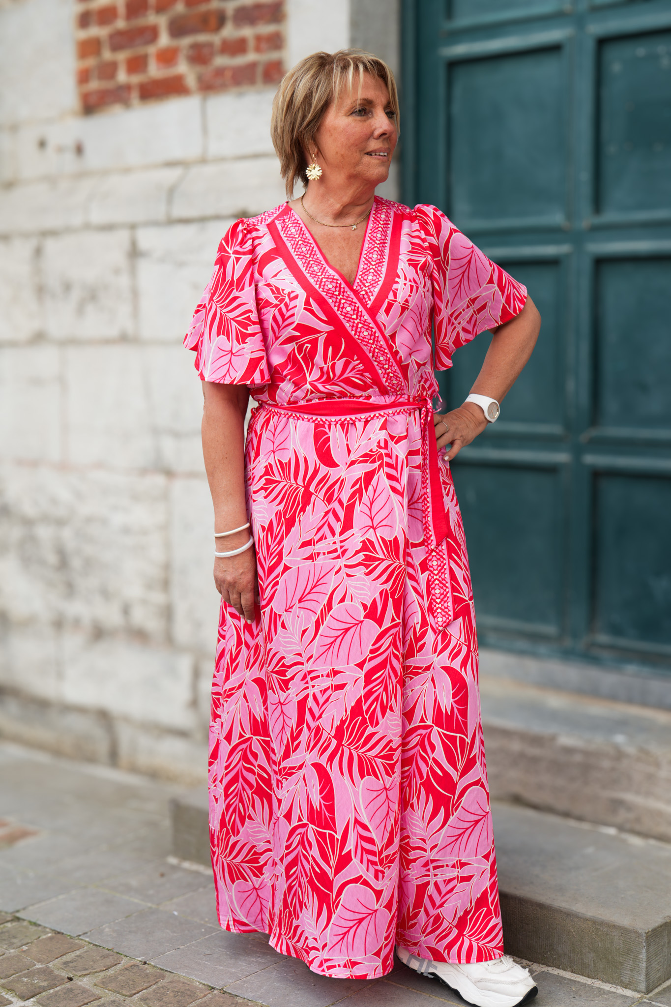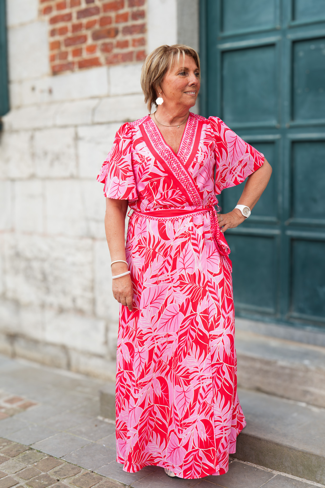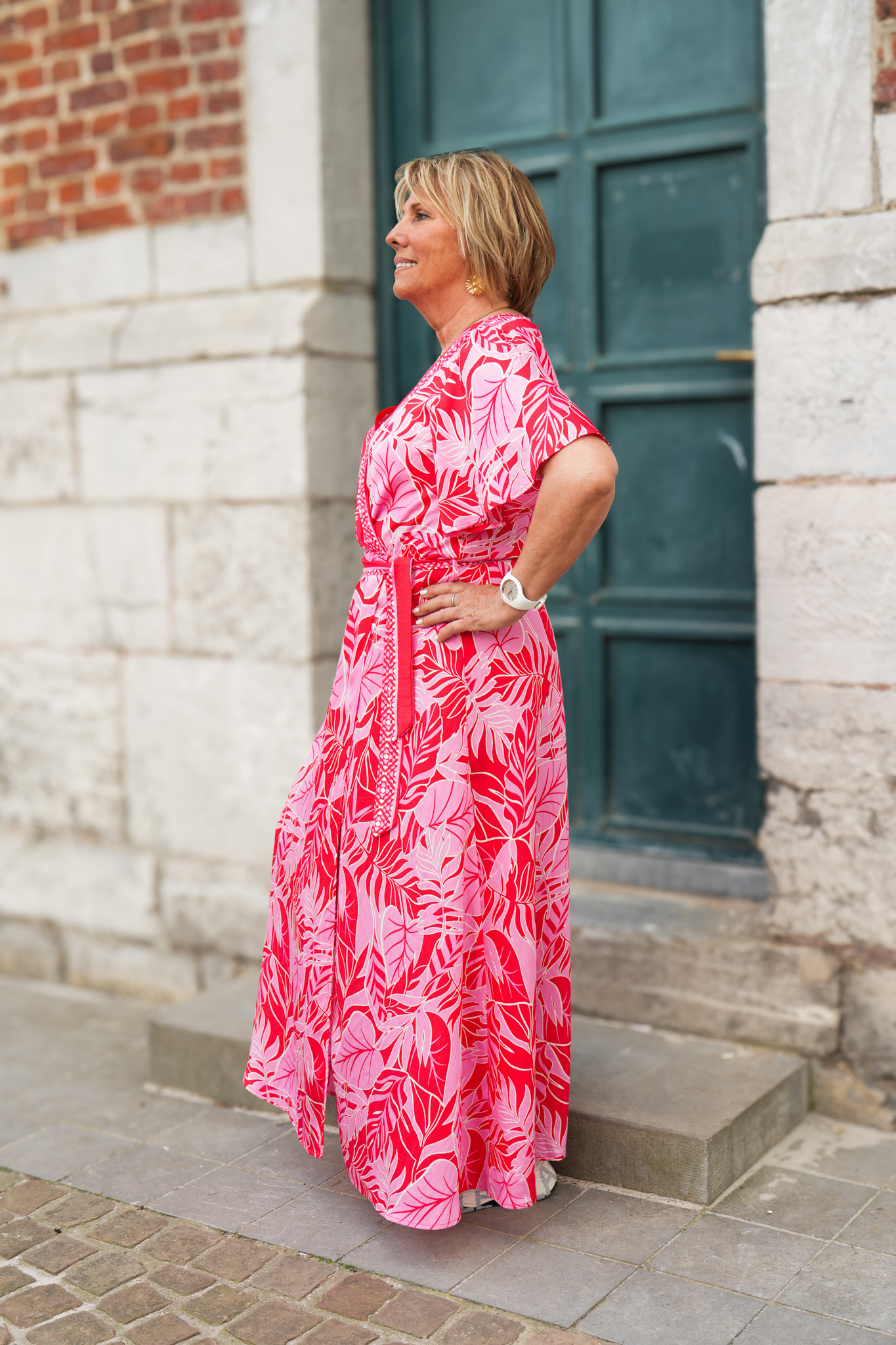 Robe kimono à motifs – Fuchsia
