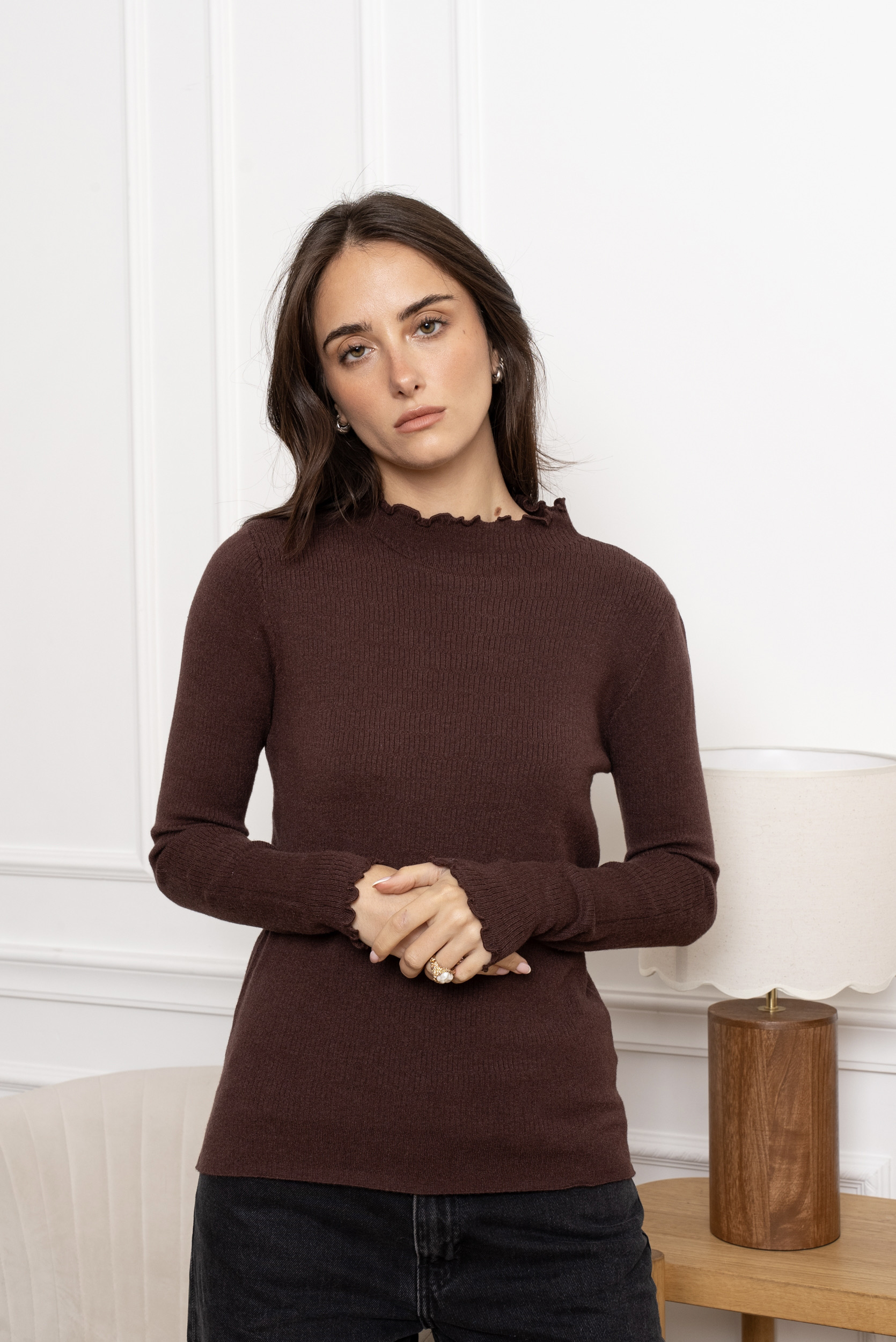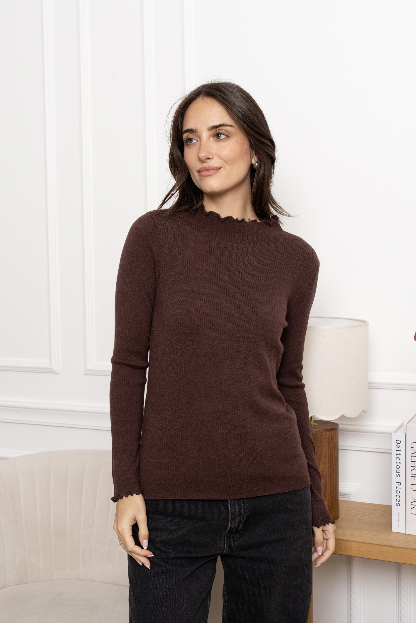 Sous pull manches longues col montant – Alma – Choco
