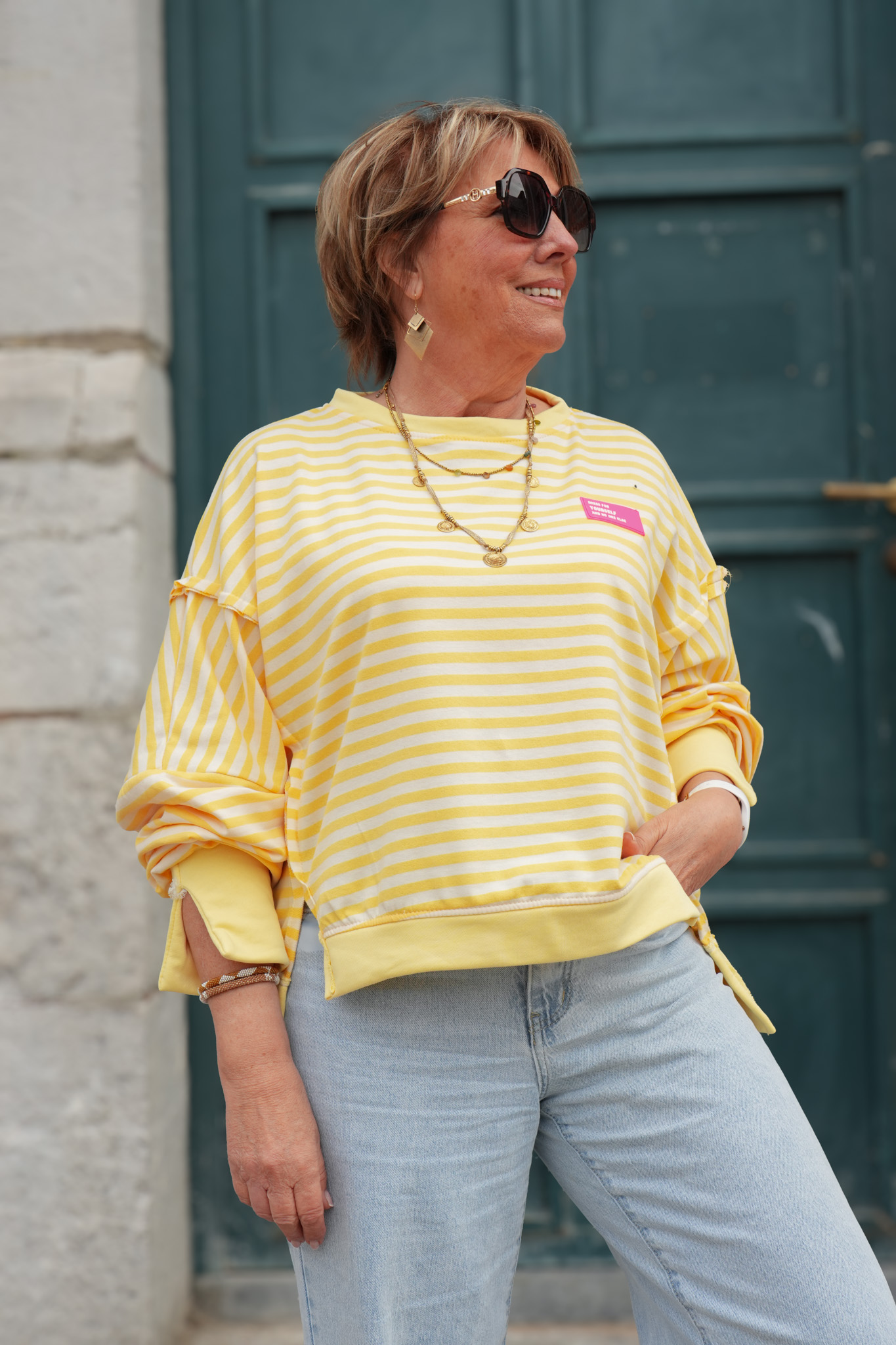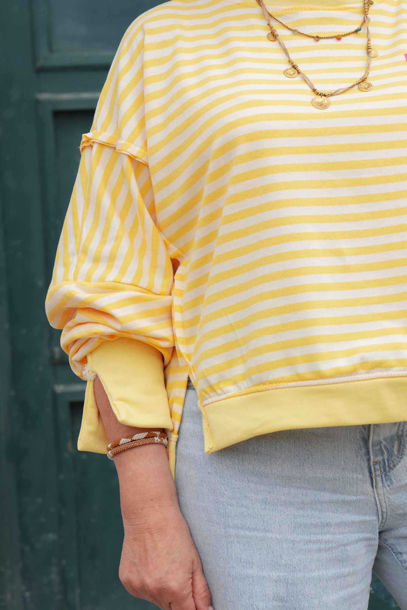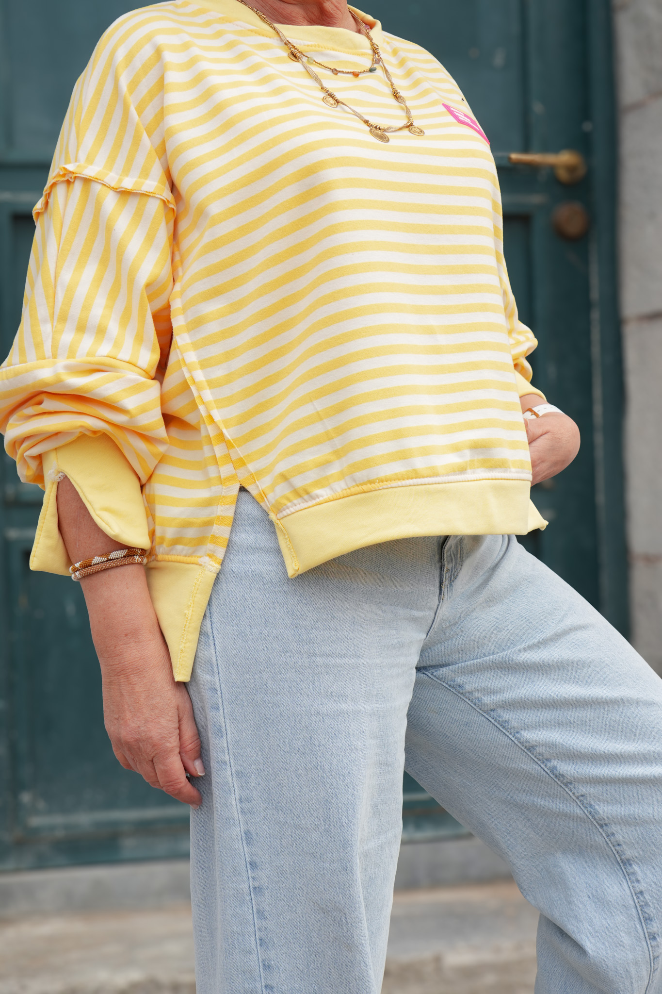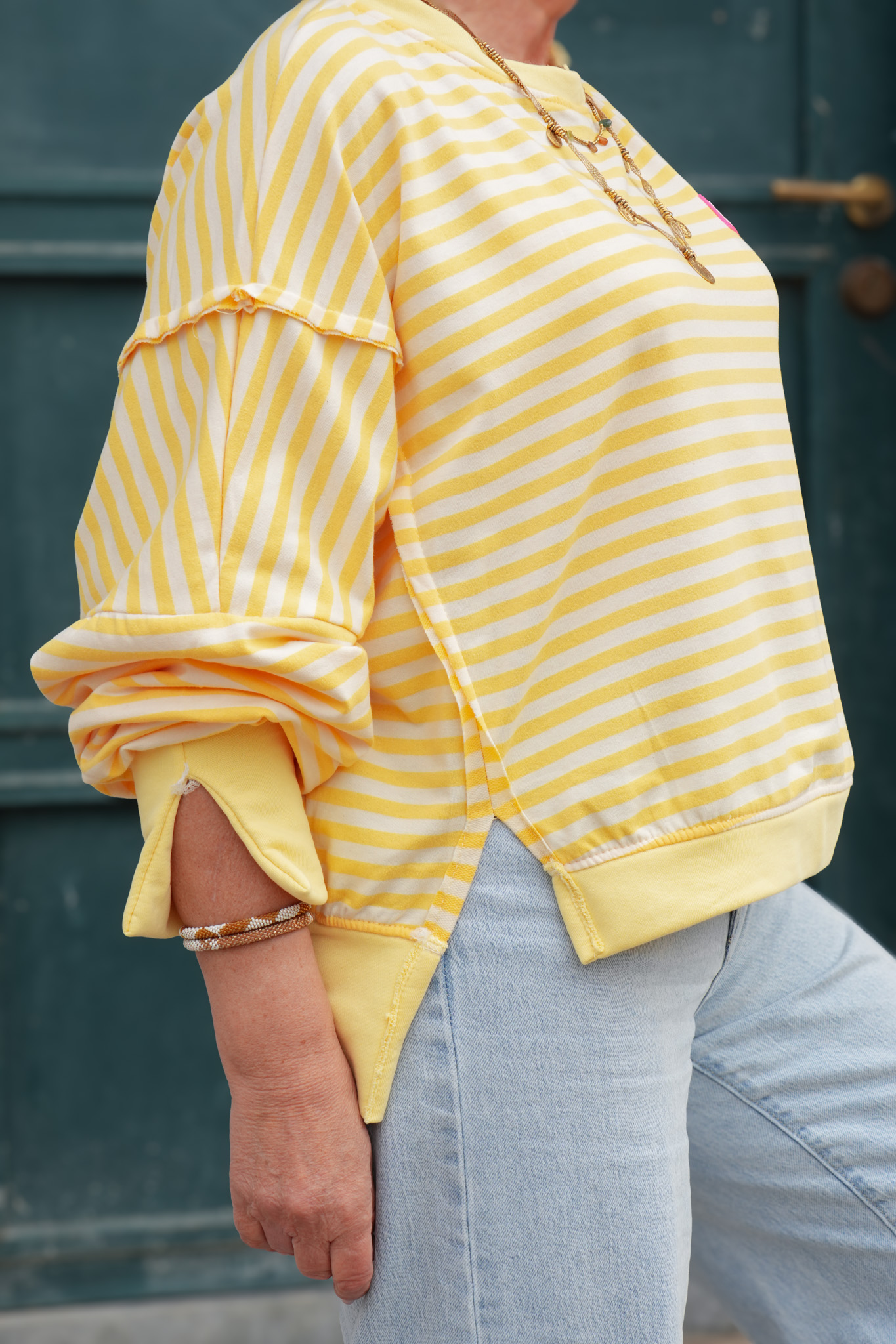 Sweat rayures avec patch – YOURSELF – jaune et blanc