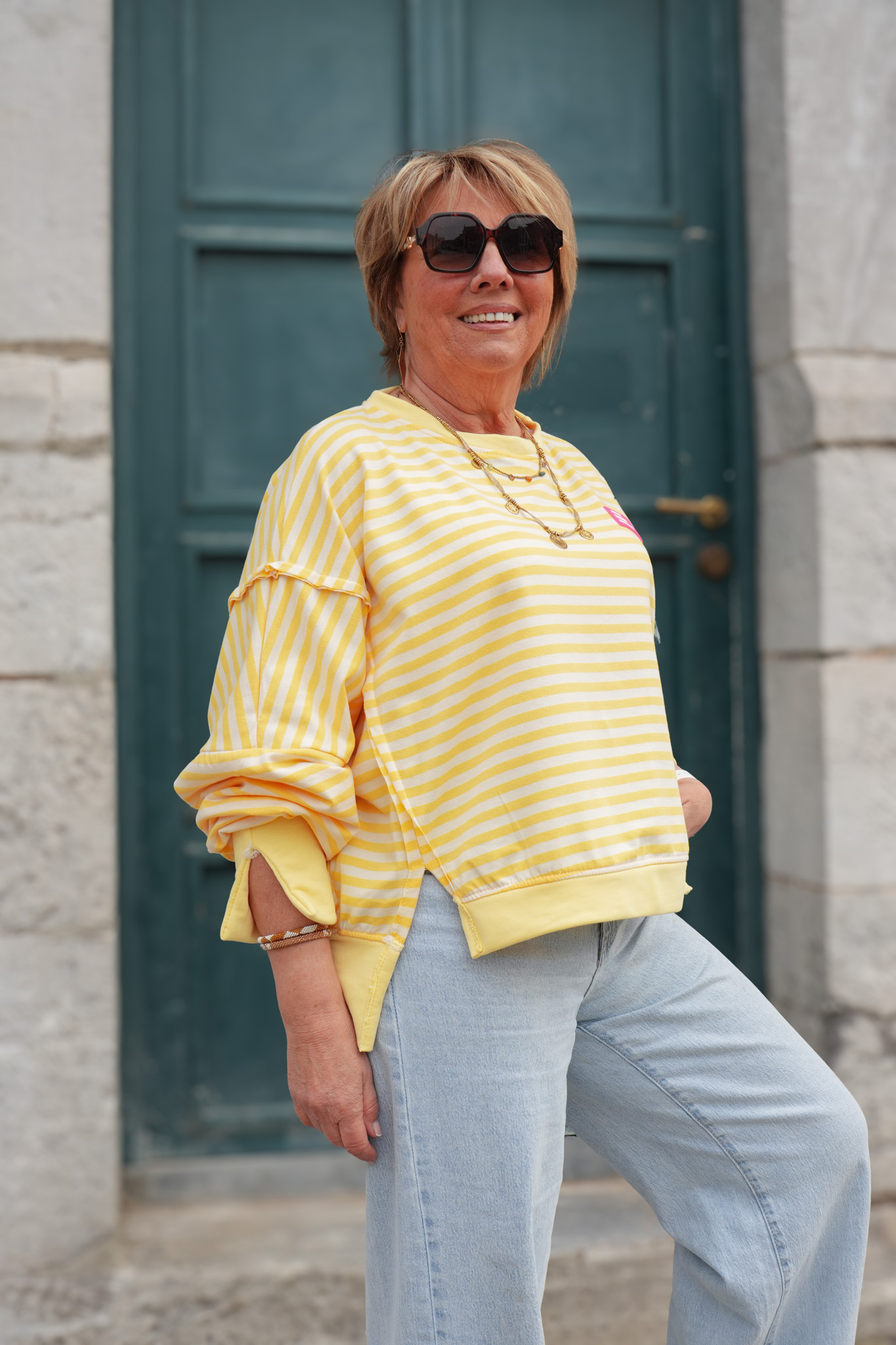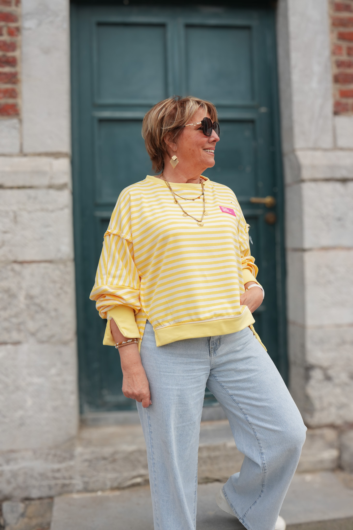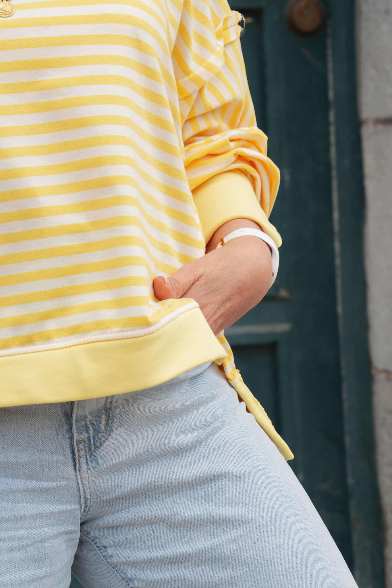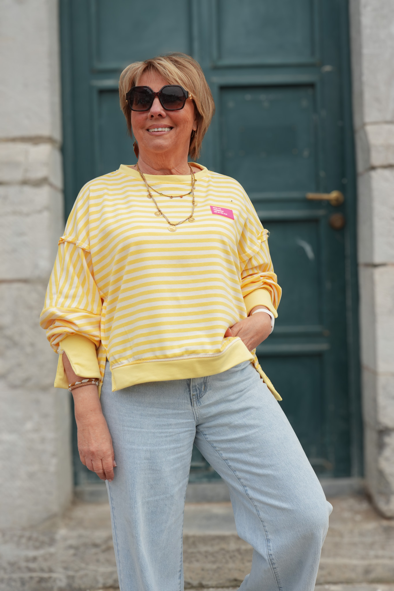 Sweat rayures avec patch – YOURSELF – jaune et blanc