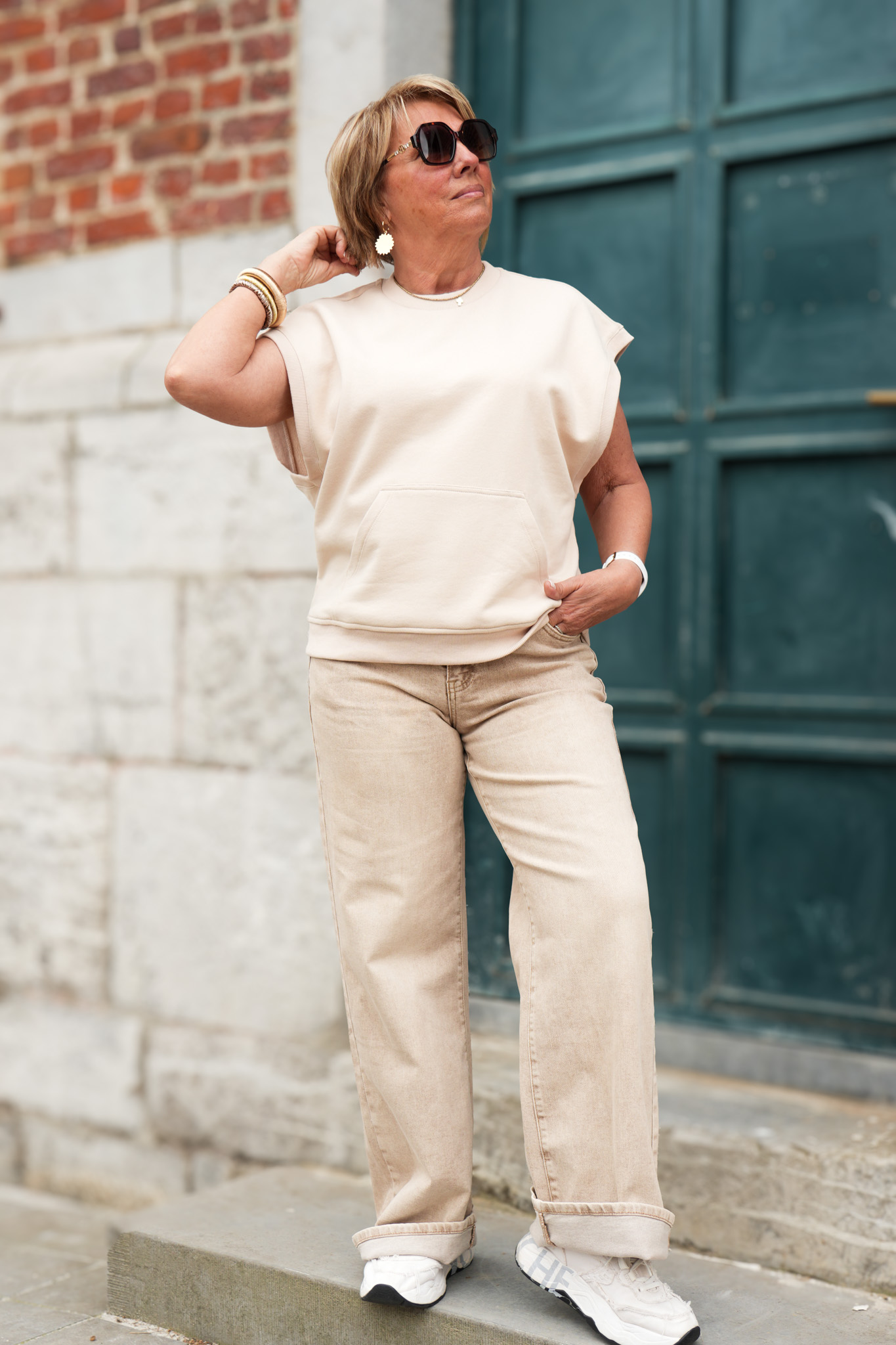 Sweat sans manches – Coupe large avec col rond – Beige