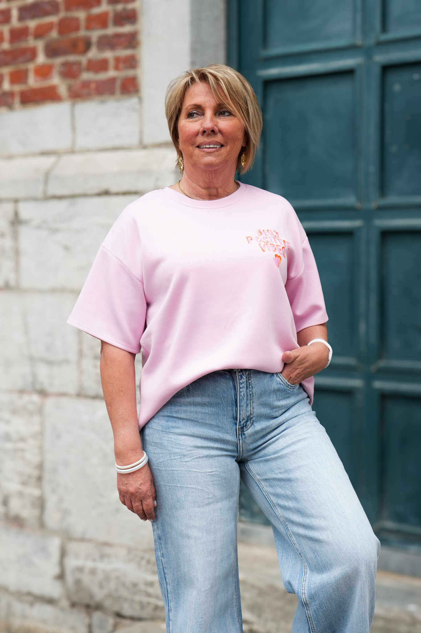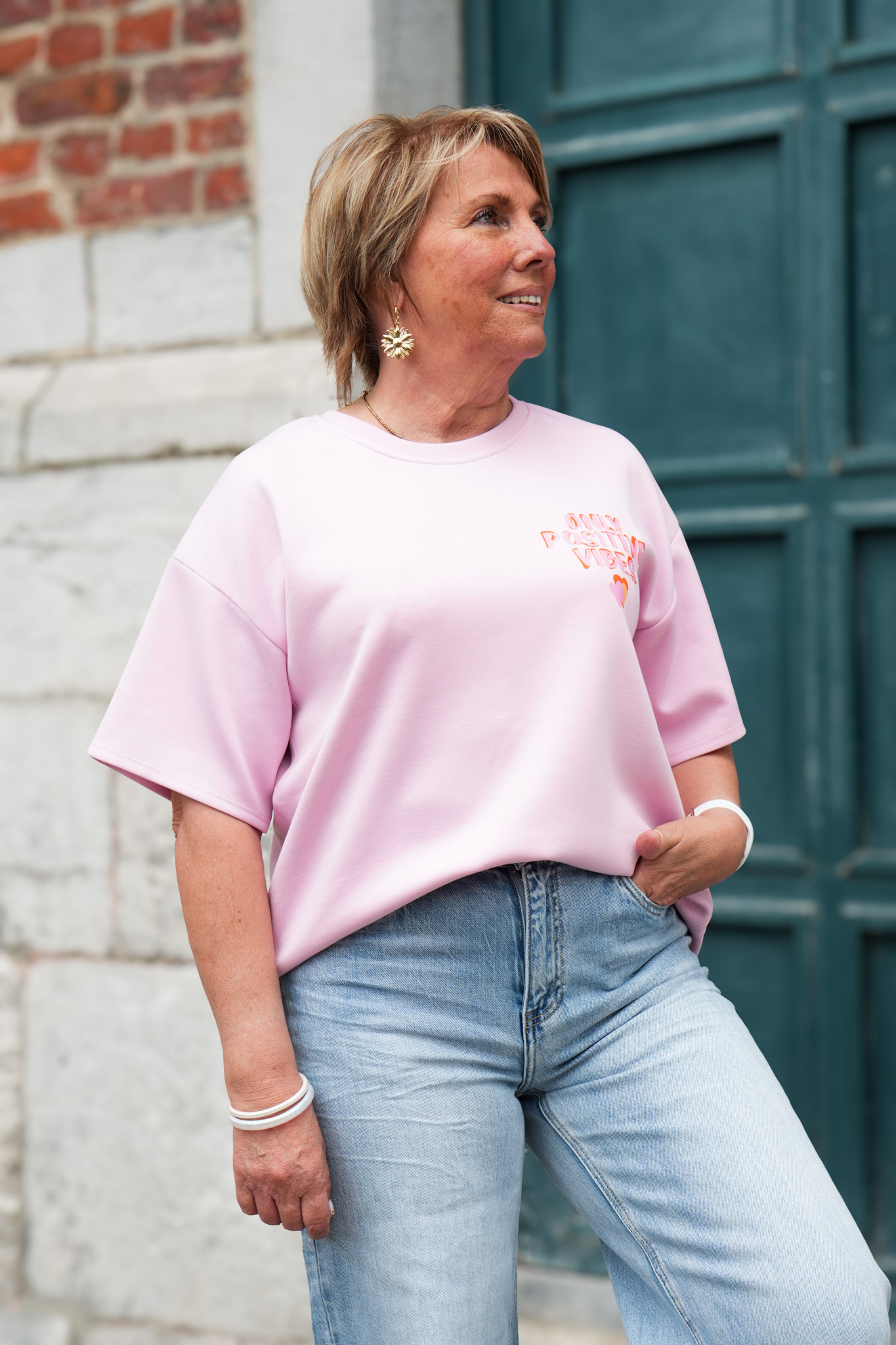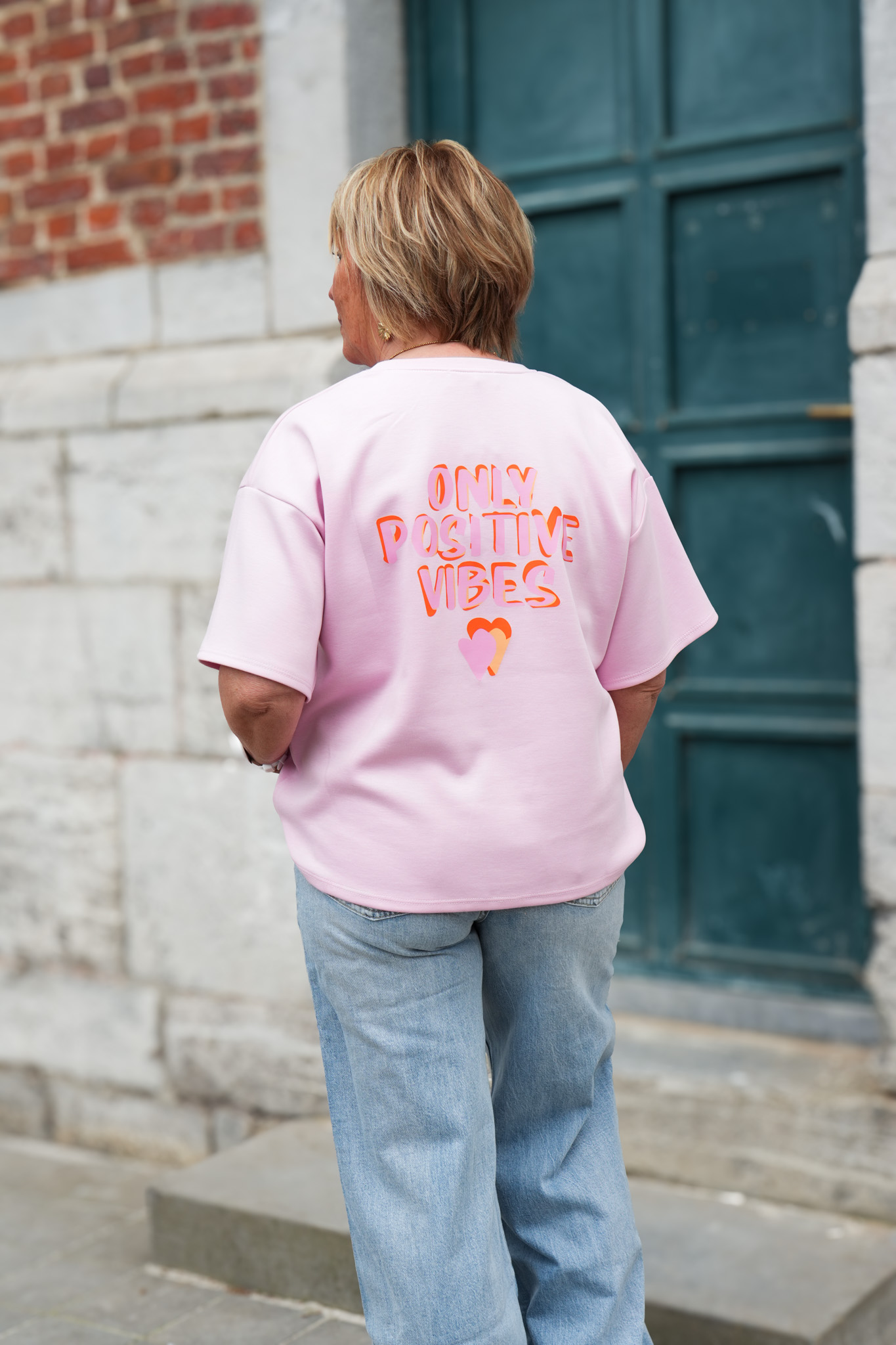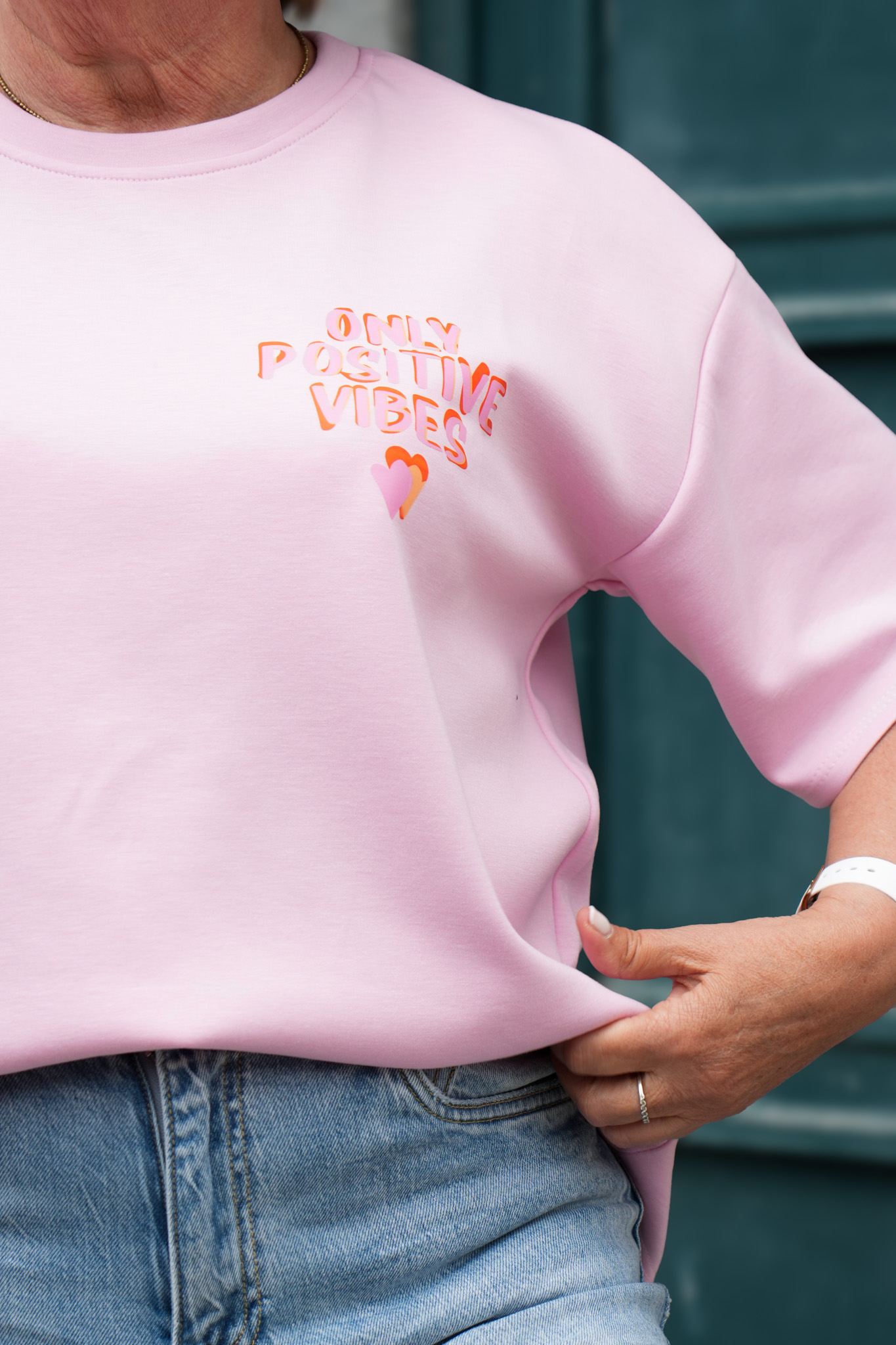 T-shirt imprimé – Only positive vibes – Rose