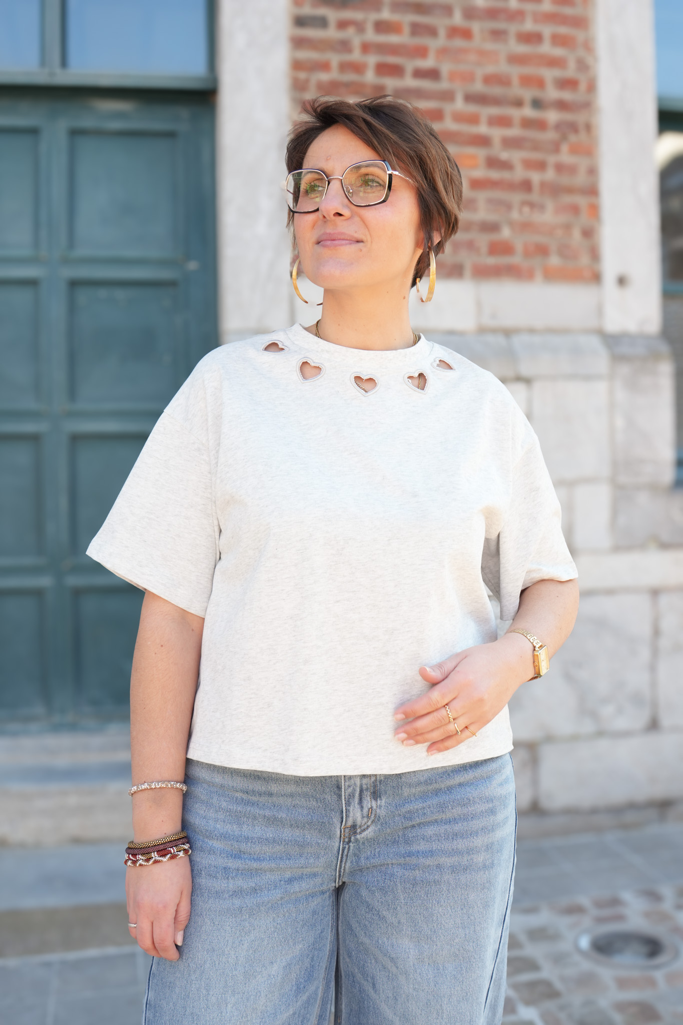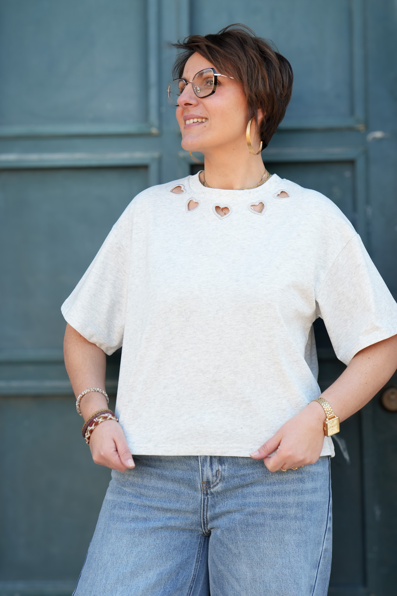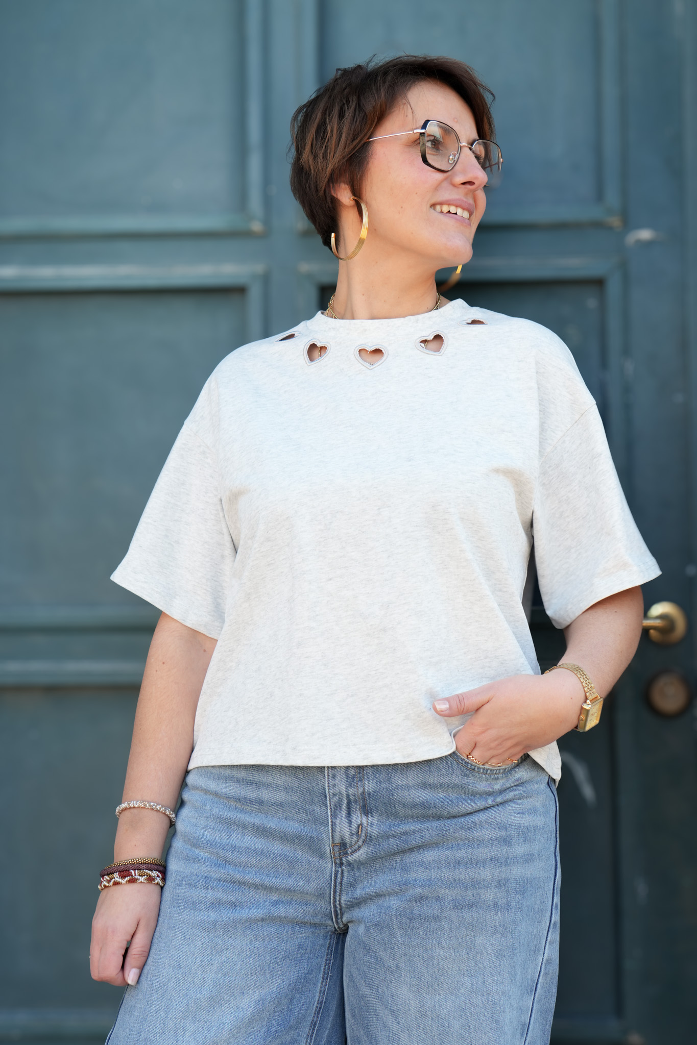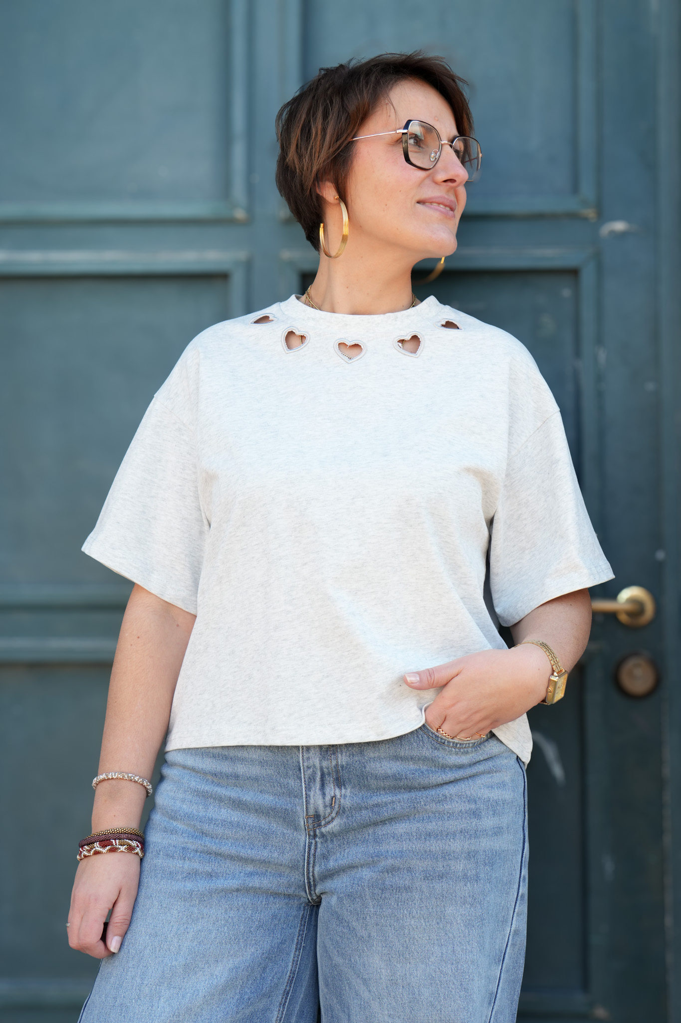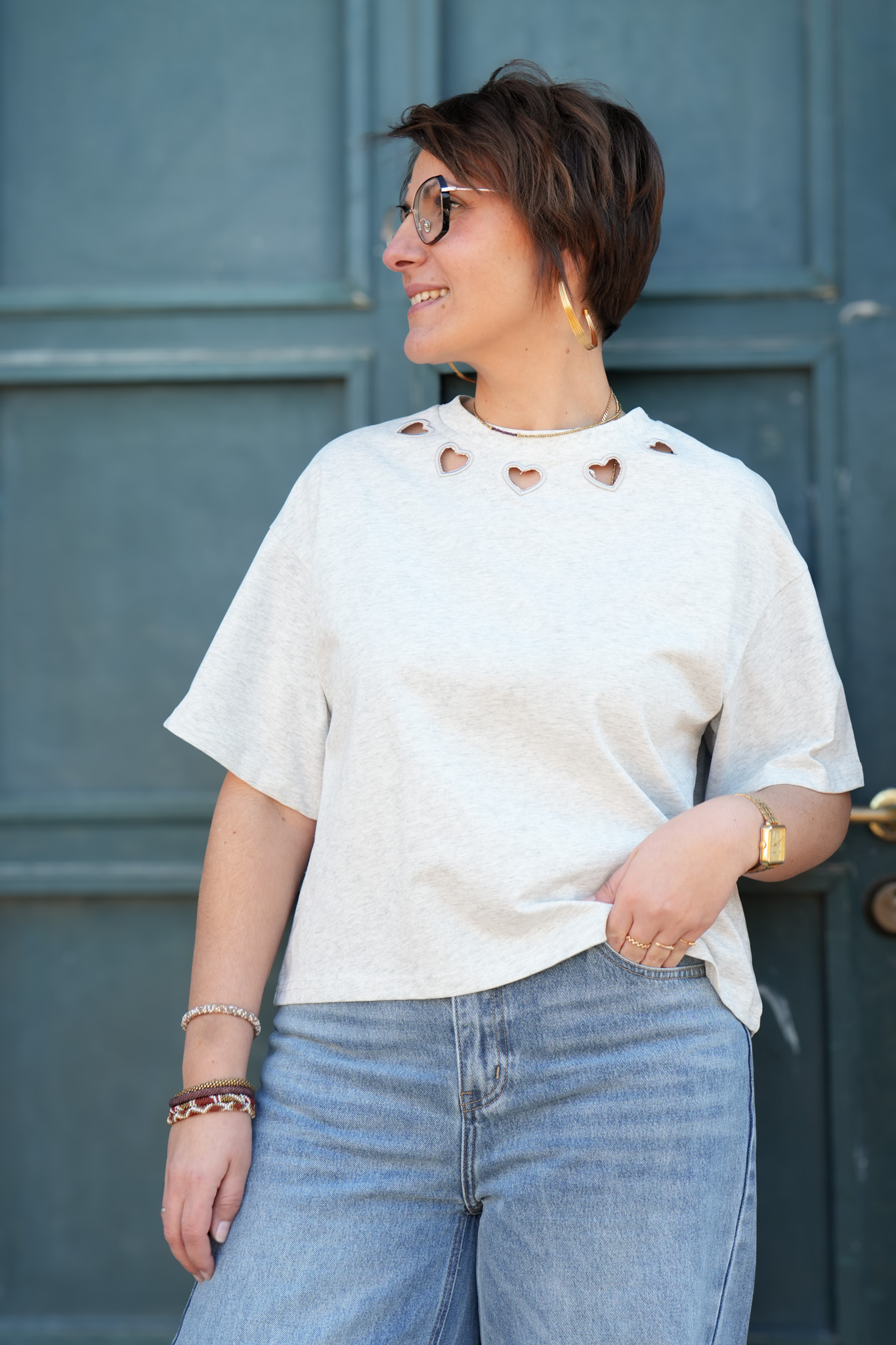 T-shirt uni délavé détail au col – Coeur – gris chiné