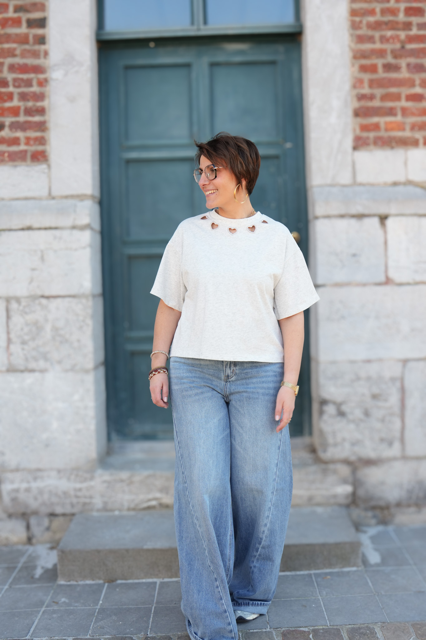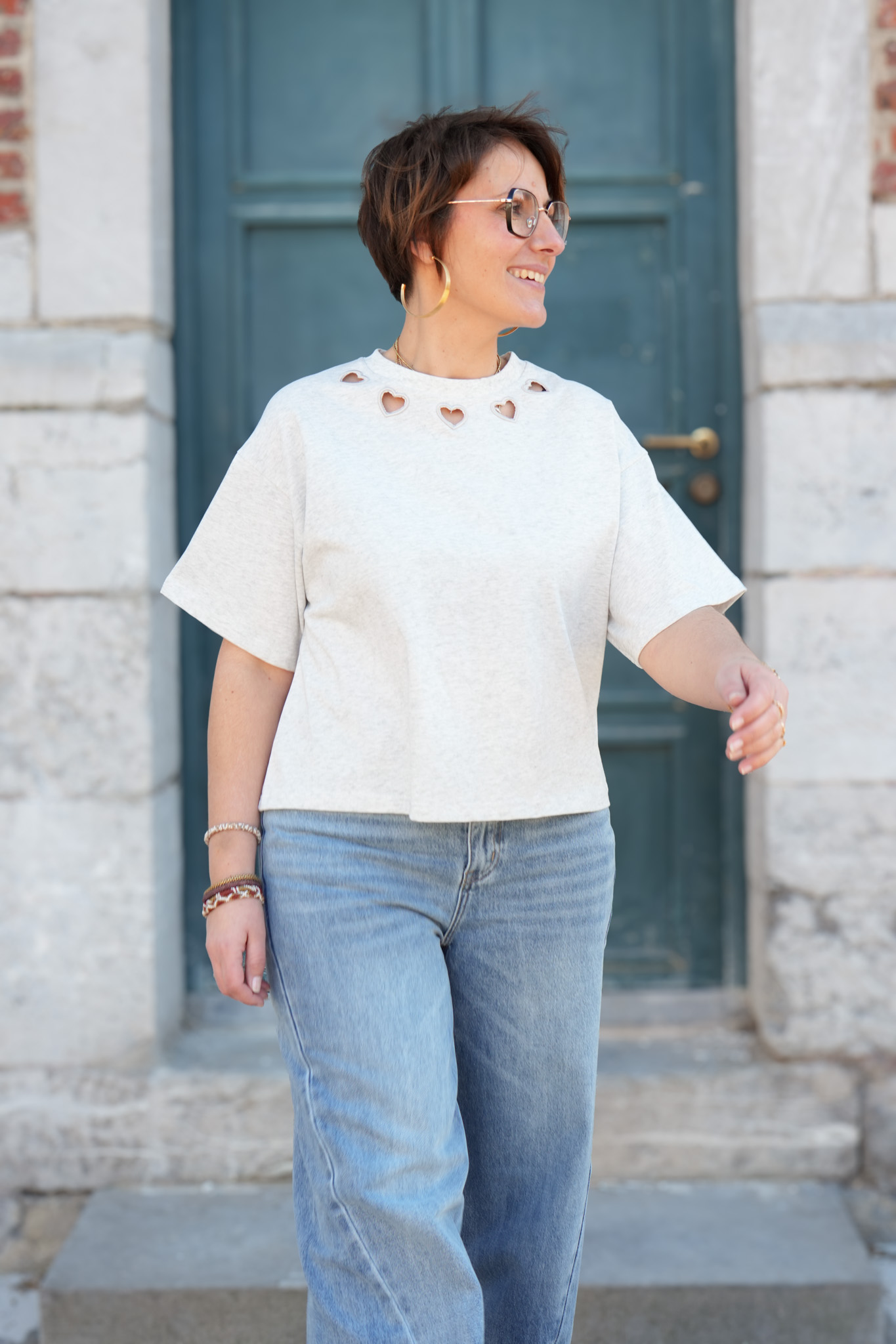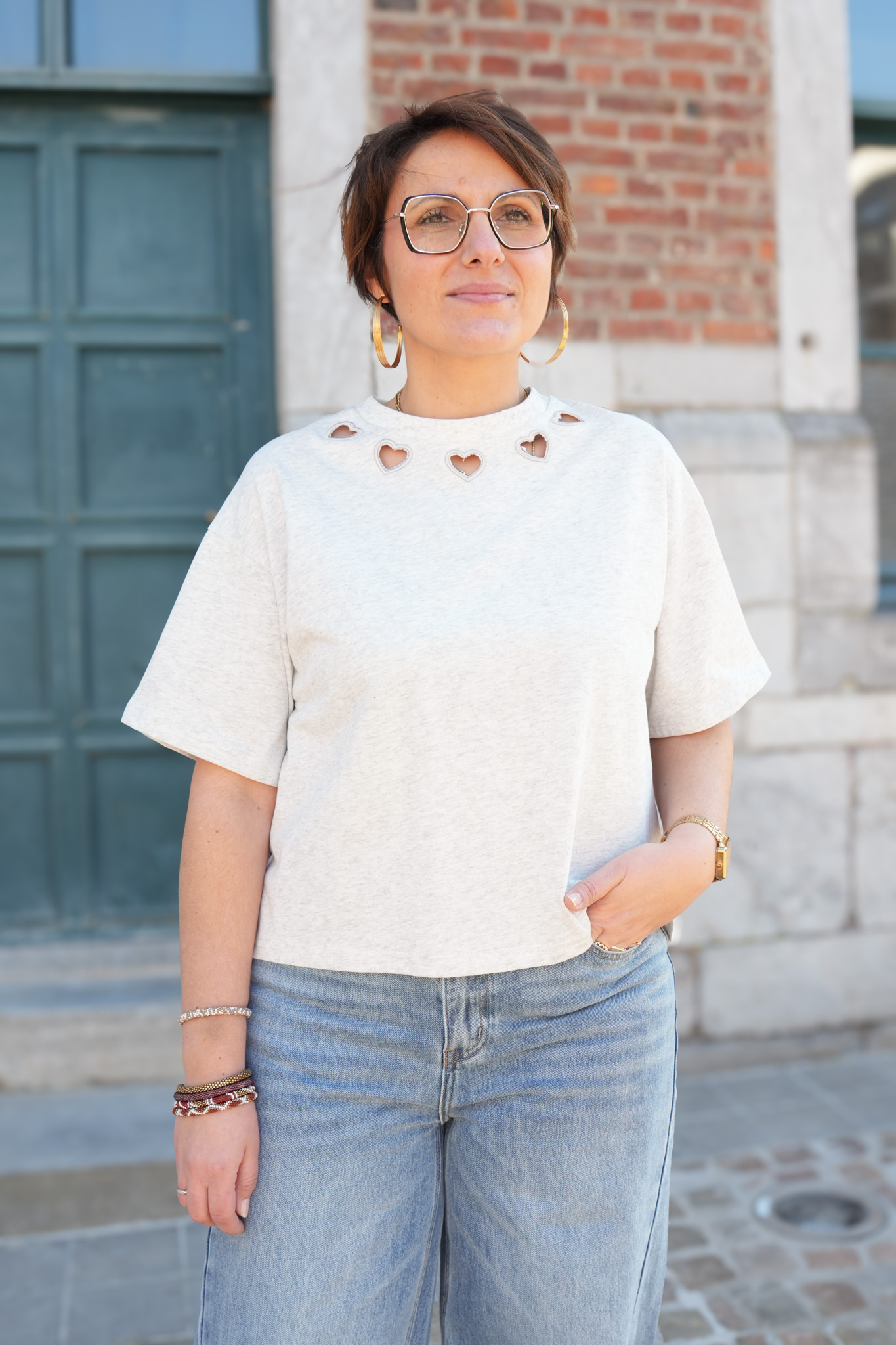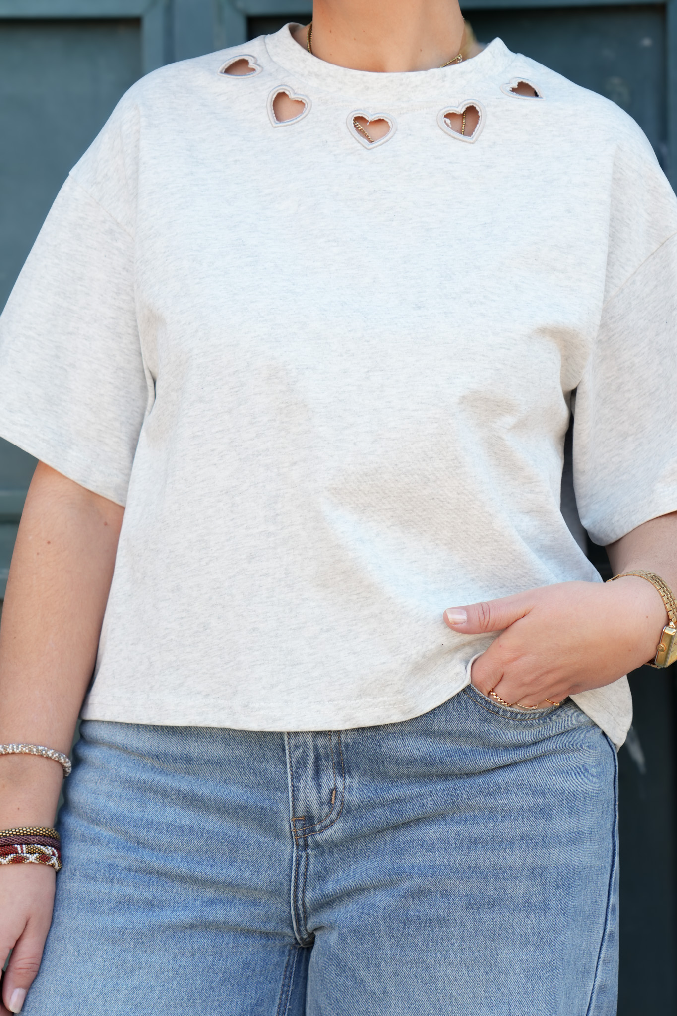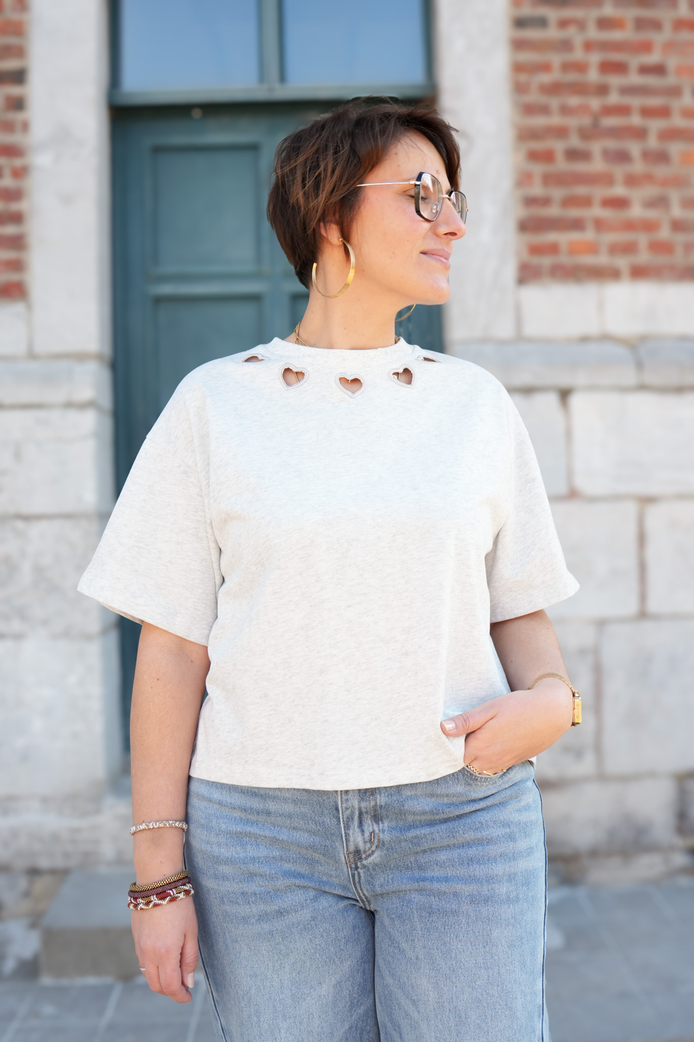 T-shirt uni délavé détail au col – Coeur – gris chiné