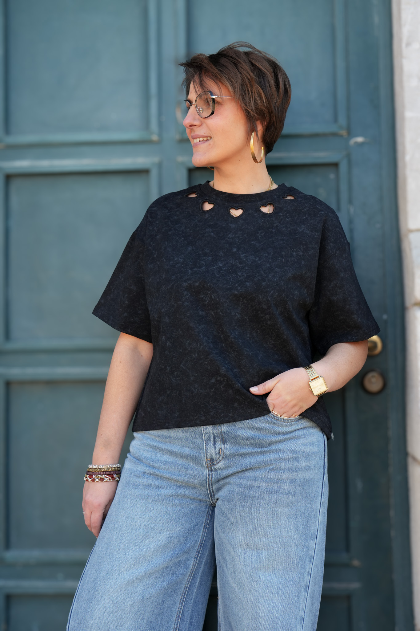 - Détail au col : coeur brodé découpés
