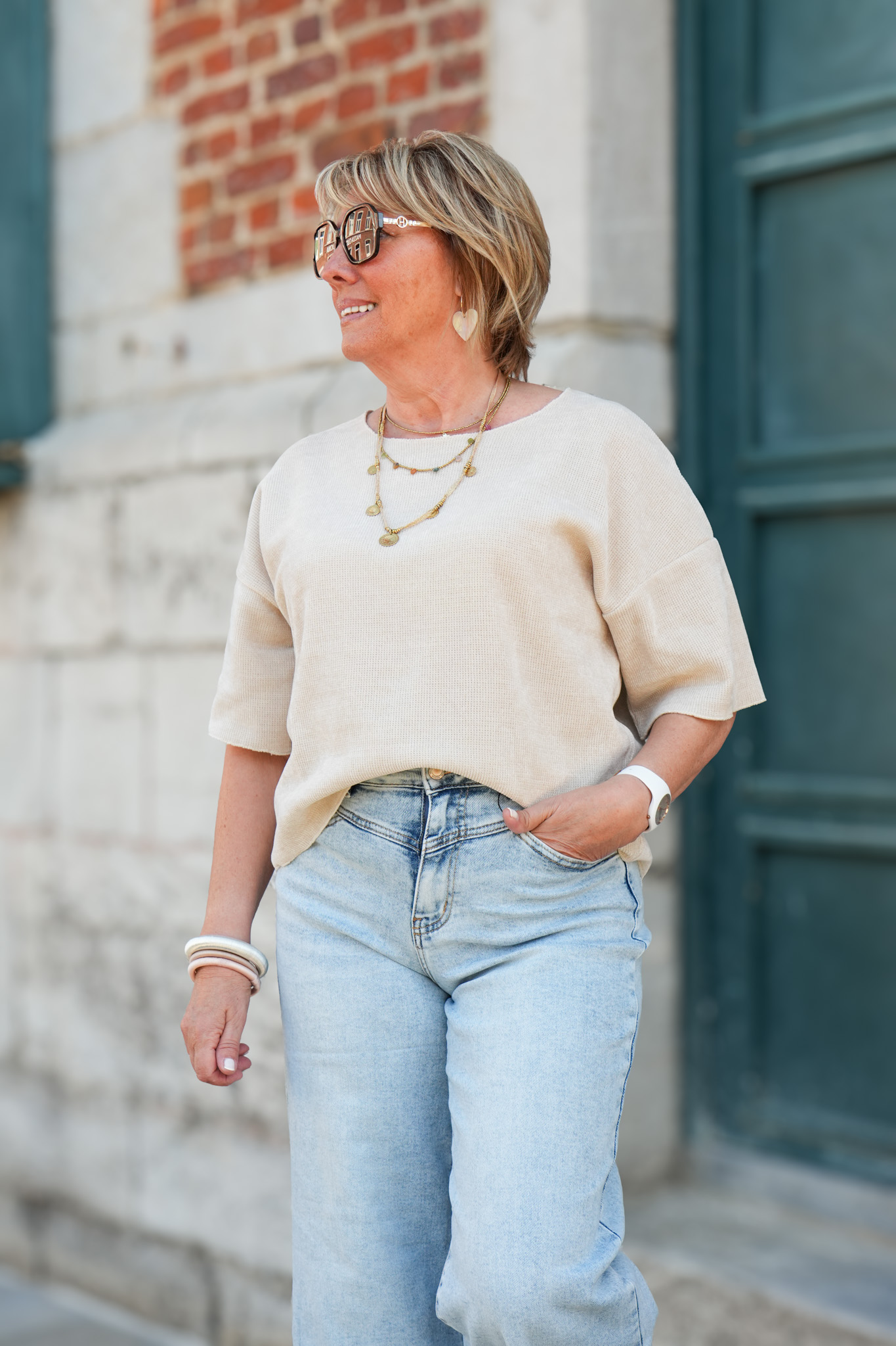 T-shirt uni doux col bateau – Romy – sable