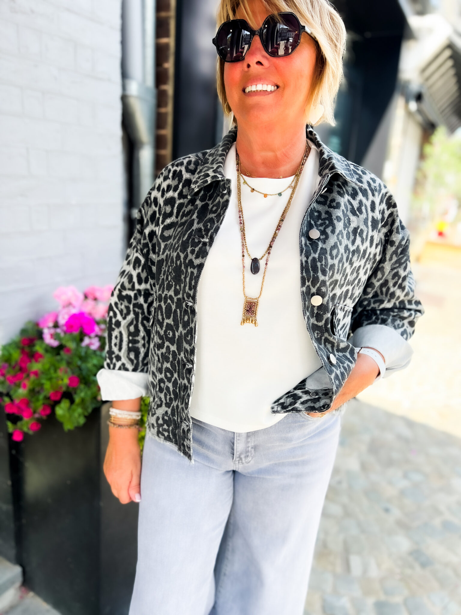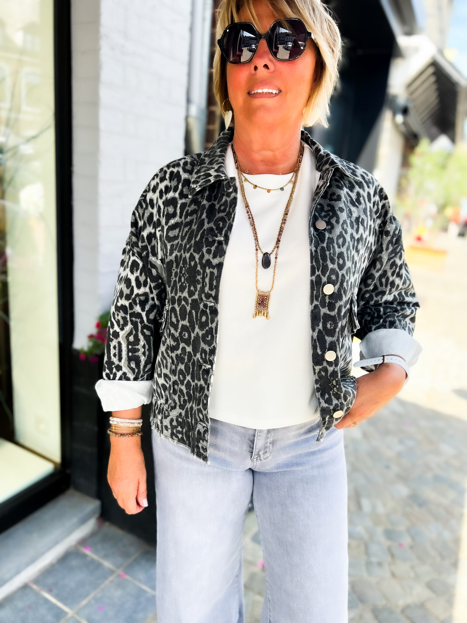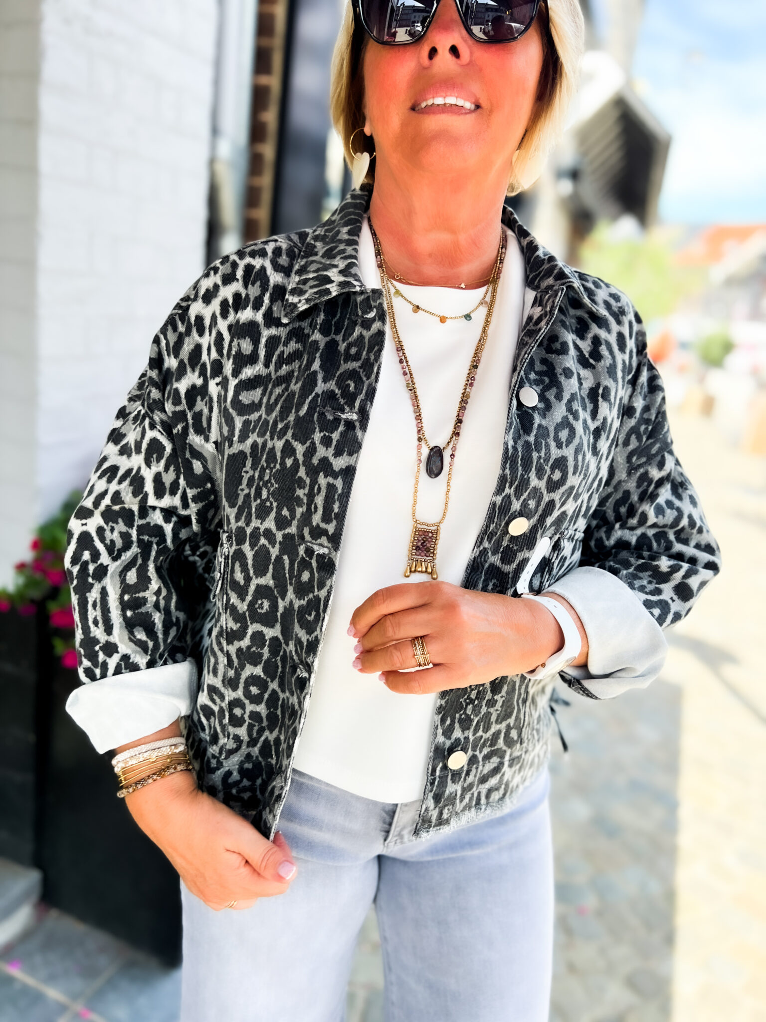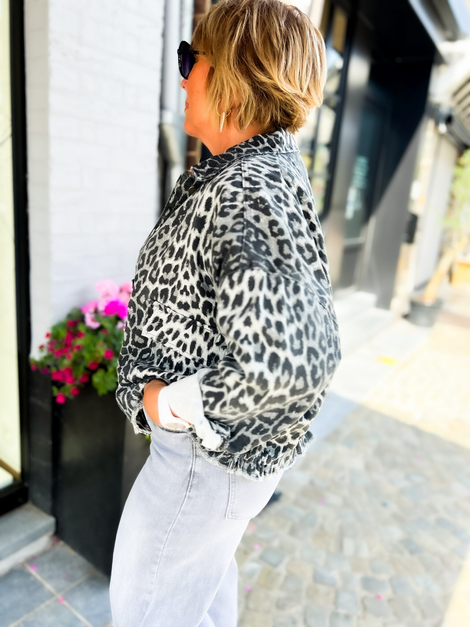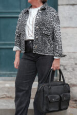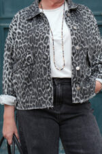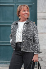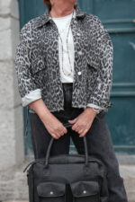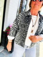 Veste en jeans oversized – Zoé – léopard gris