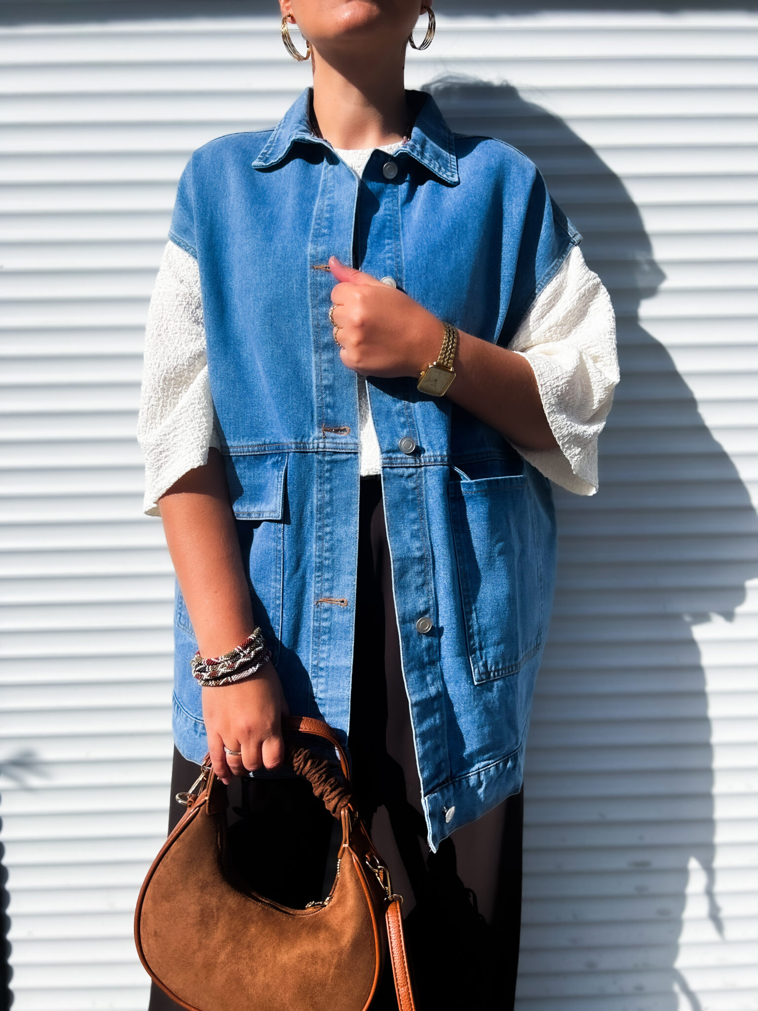 Veste sans manches en jeans coupe ample – Anna – bleu