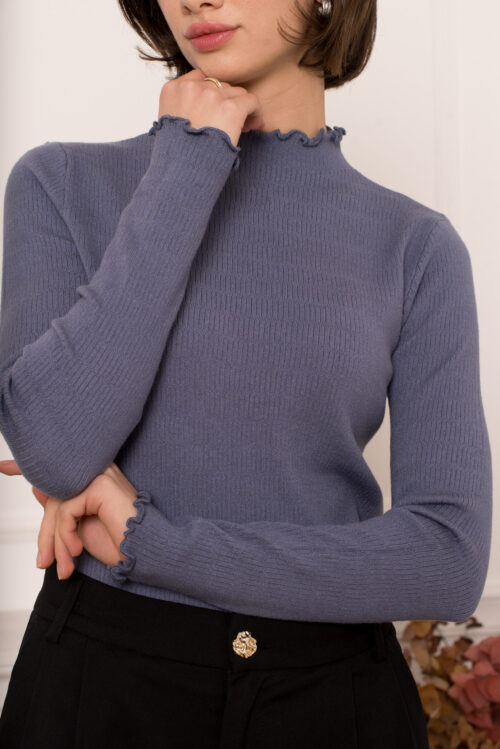 Sous pull manches longues col montant – Alma – Bleu